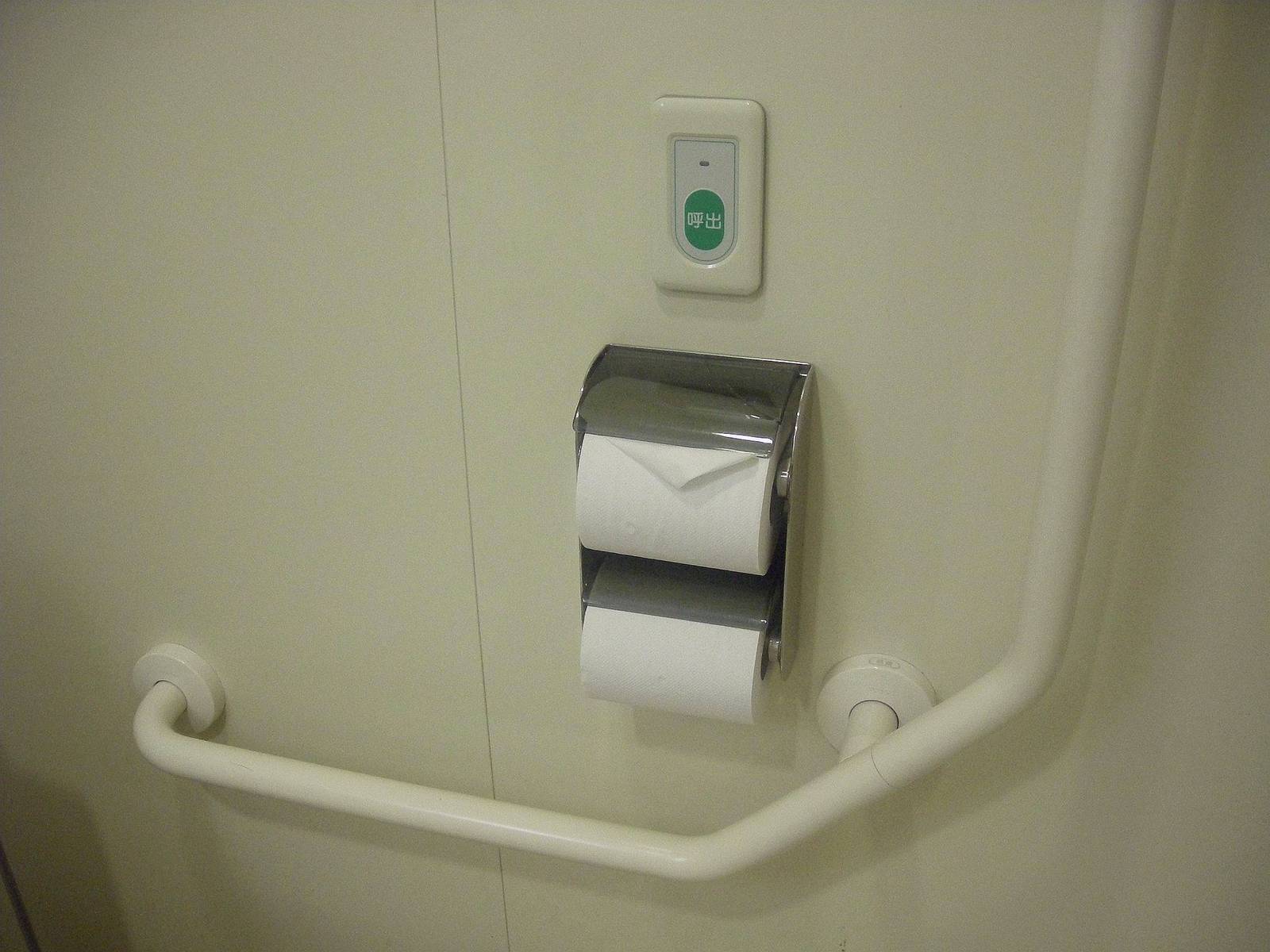 非常ベルが便座から手が届く範囲にある