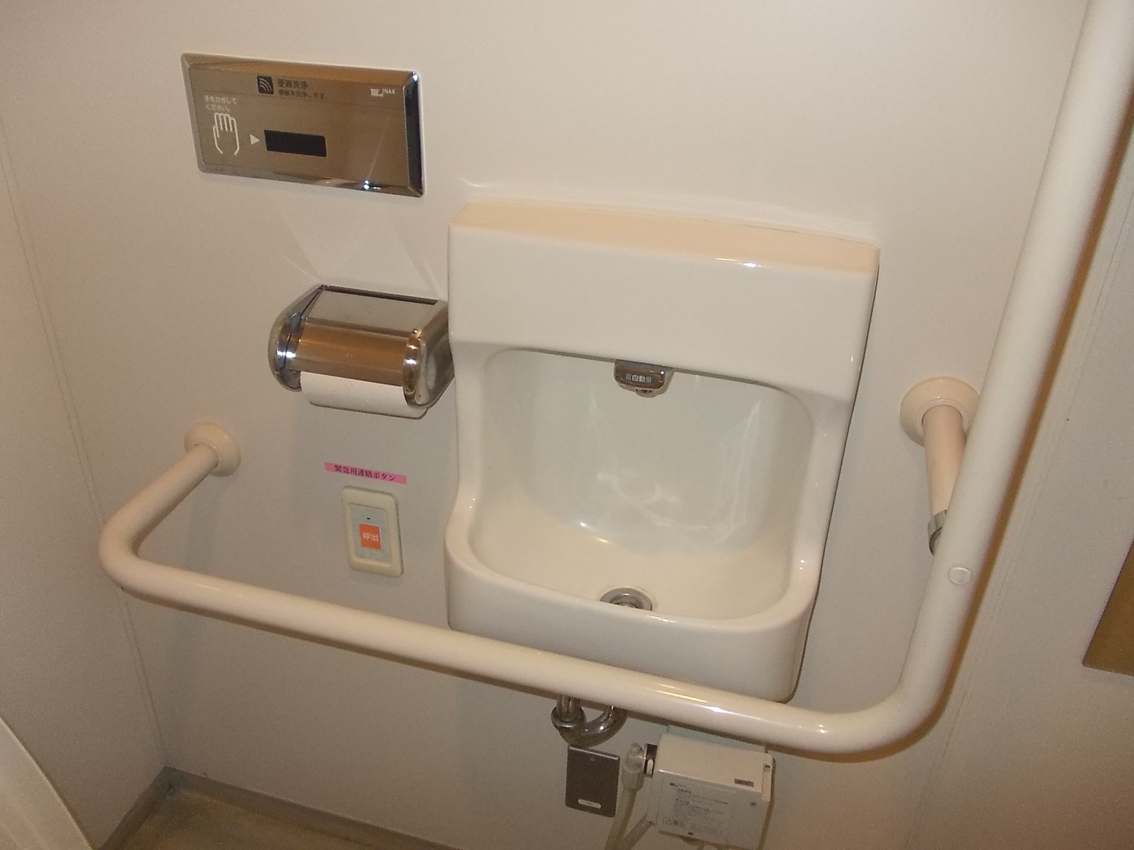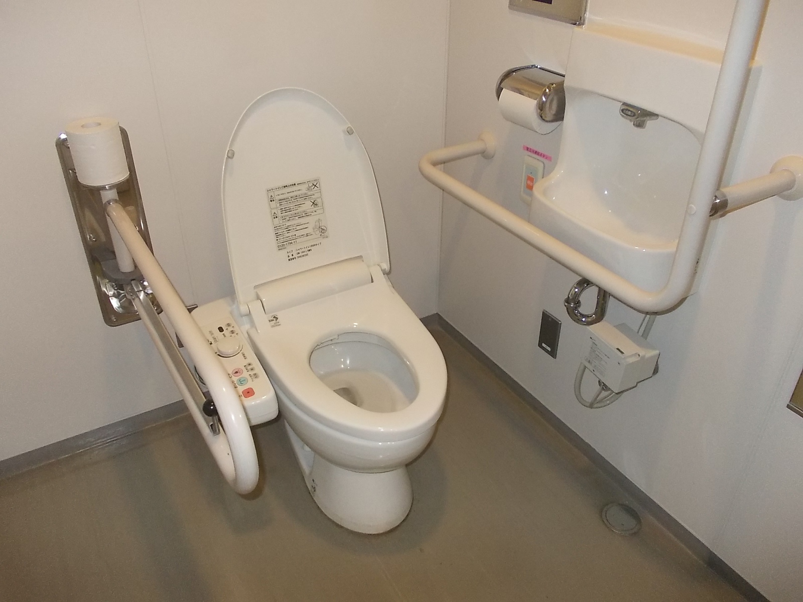 非常ベルが便座から手が届く範囲にあるバリアフリートイレ