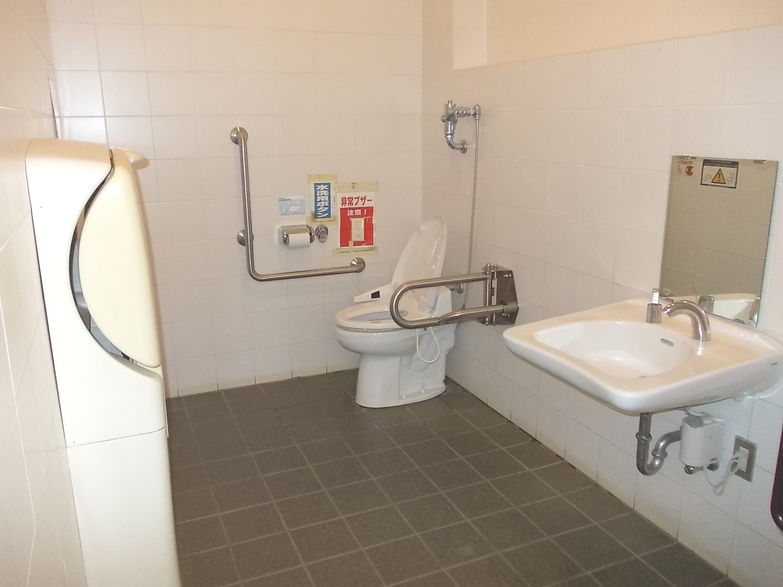 トイレがある出入口の幅:90cm以上トイレ内の通路幅:90cm以上トイレ内の段差がない手すり付小便器がある洋式便器がある男女共用車いすトイレがある出入口の幅:80cm以上右手に壁がある右手すりが固定である左手すりが可動である非常ベルがある非常ベルが便座から手が届く範囲にあるベビーベッドがある