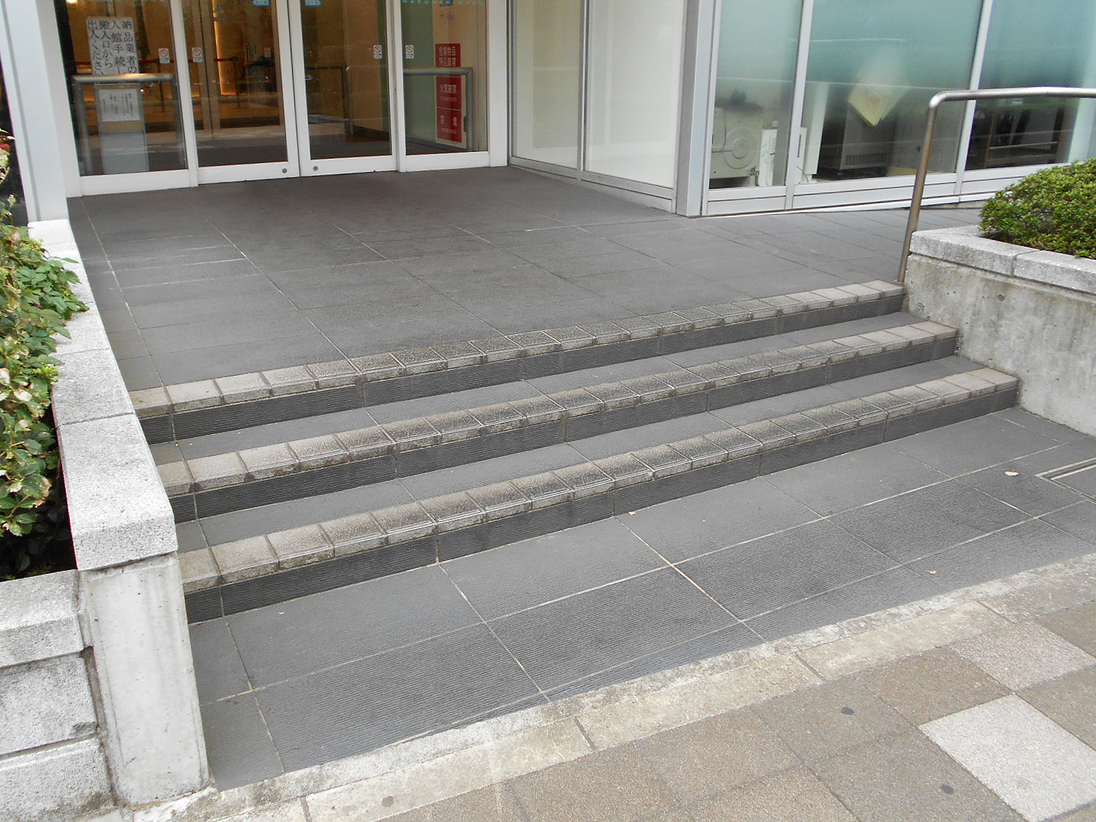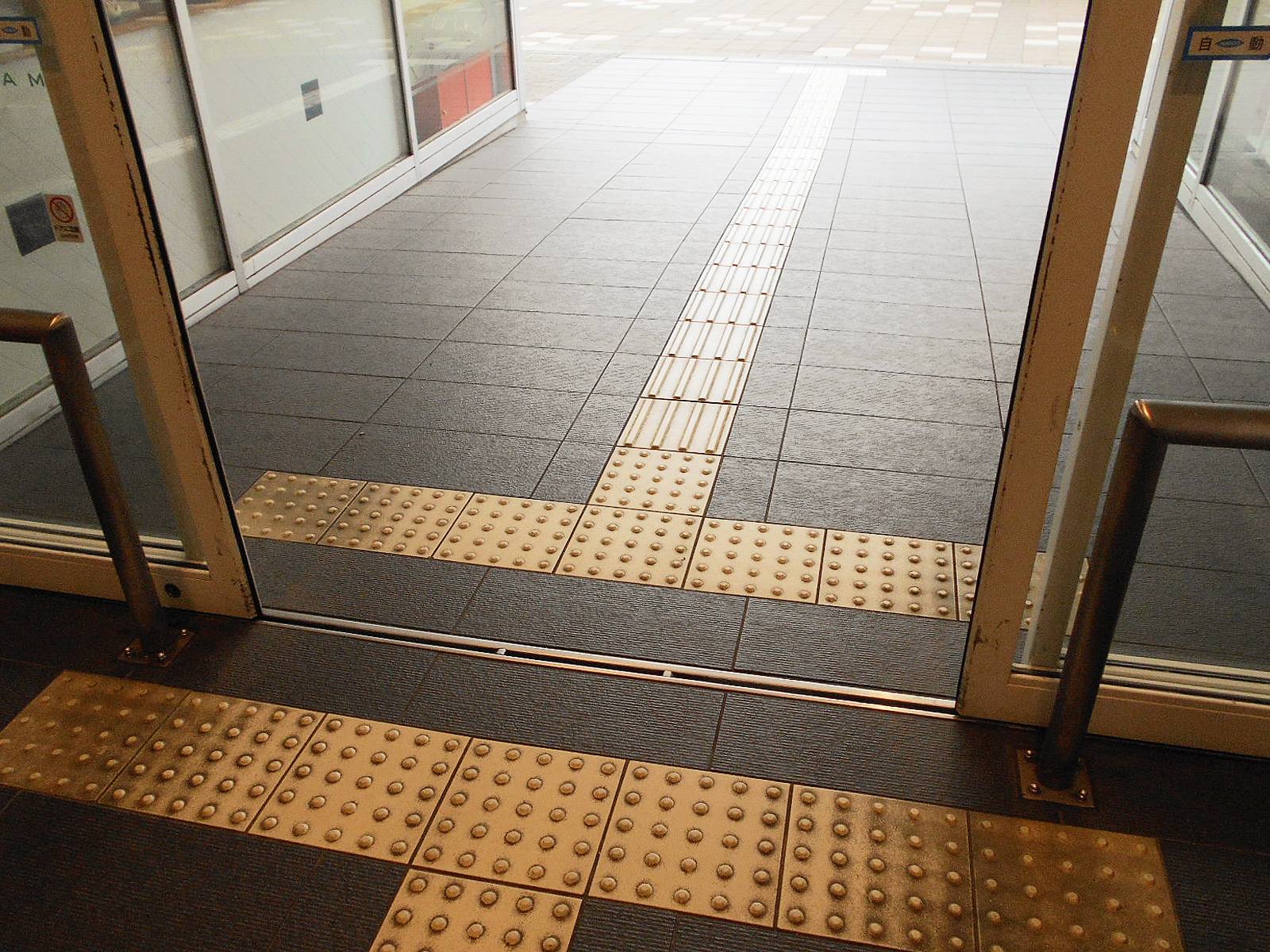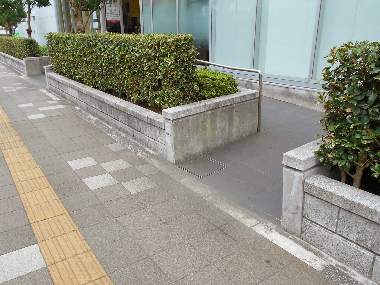 歩道から出入口までに視覚障害者誘導用ブロックがある