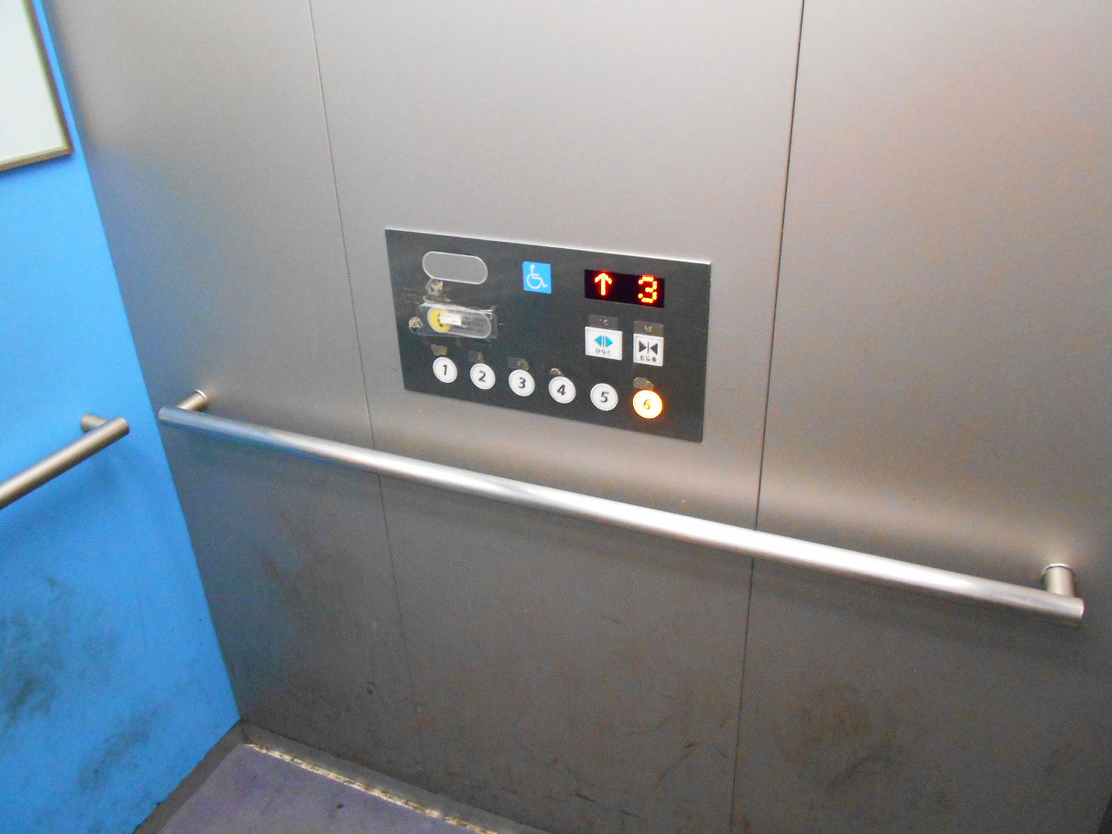 障害者対応エレベーターに手すりがある