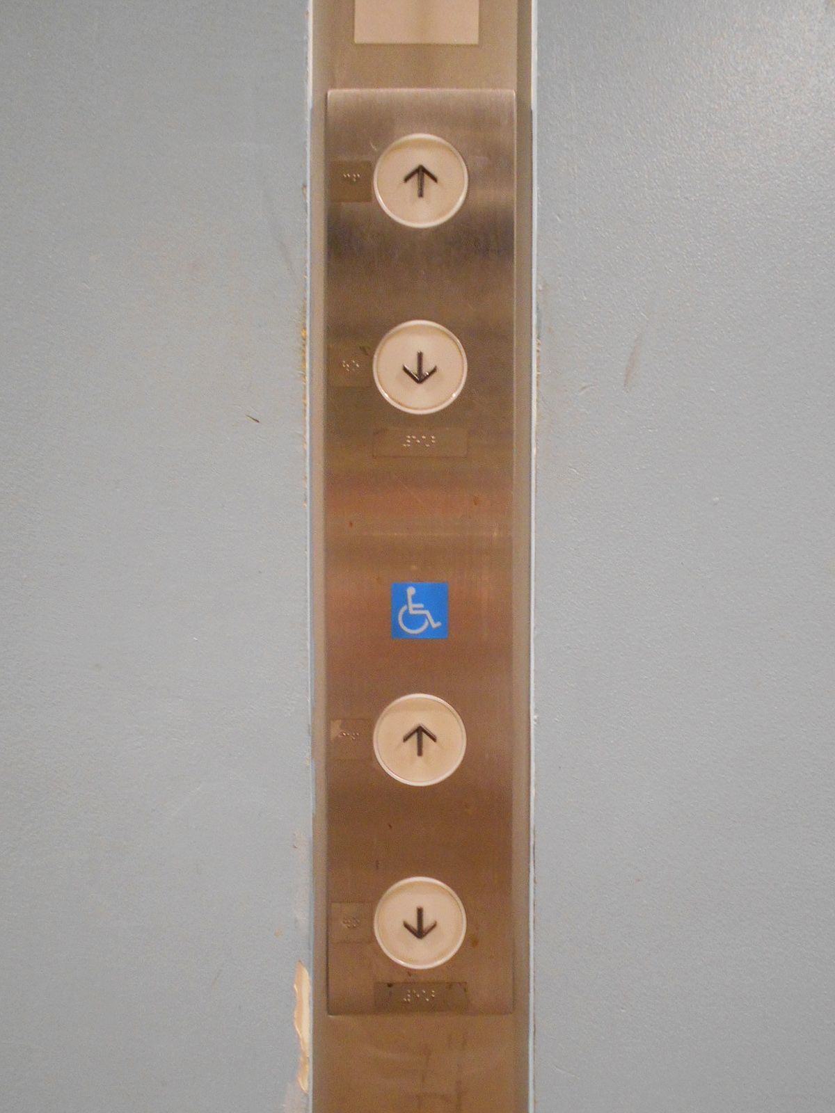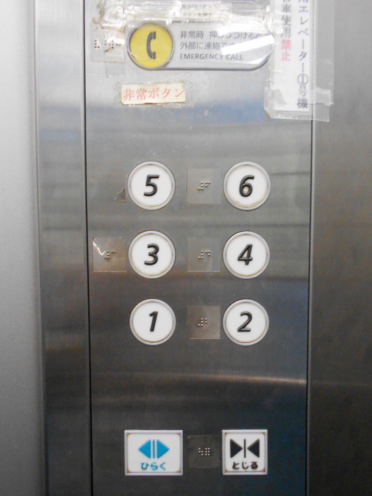 障害者対応エレベーターに点字表示ボタンがある