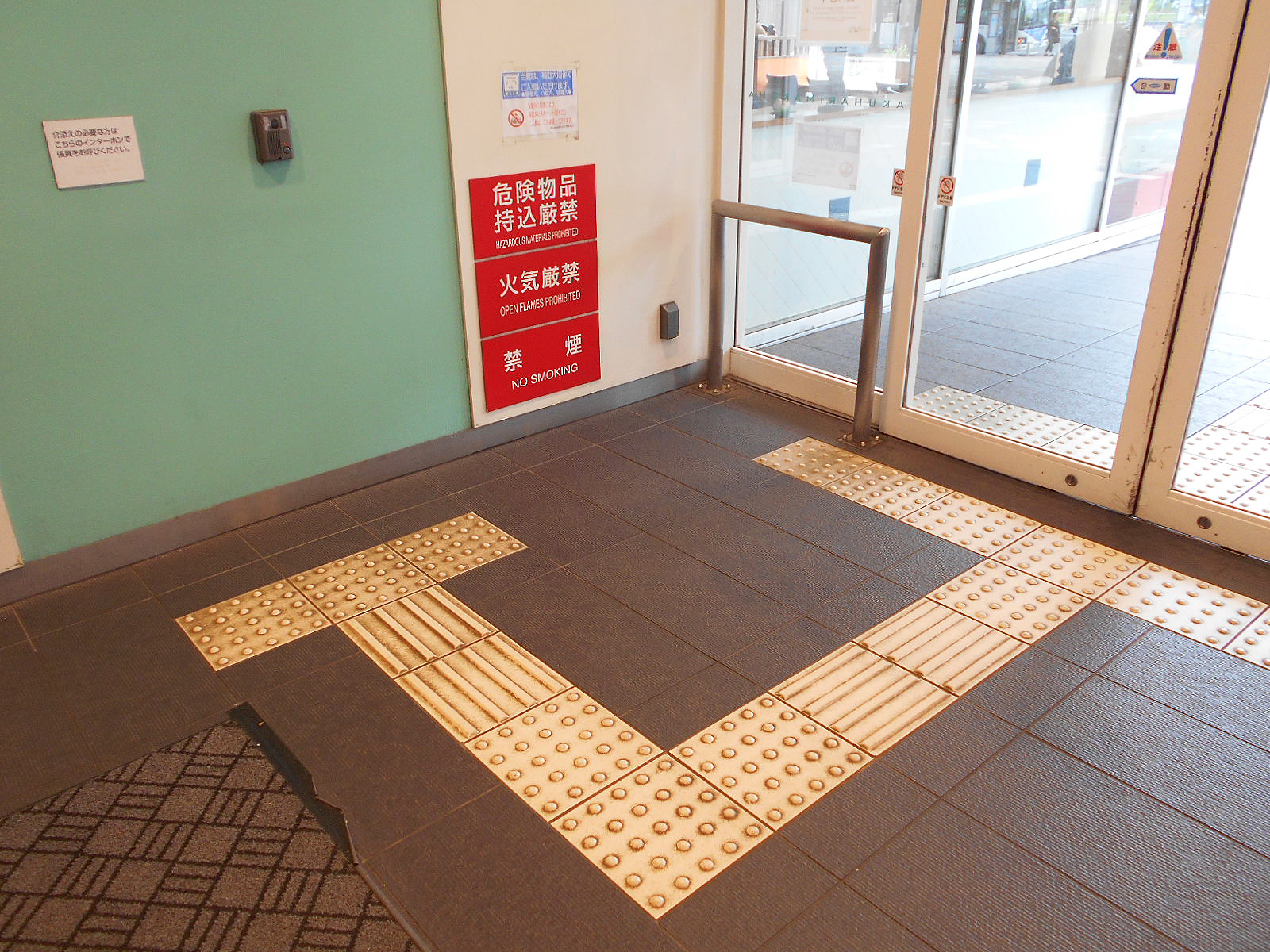 - 呼出用ブザーまで誘導用点字ブロックあり