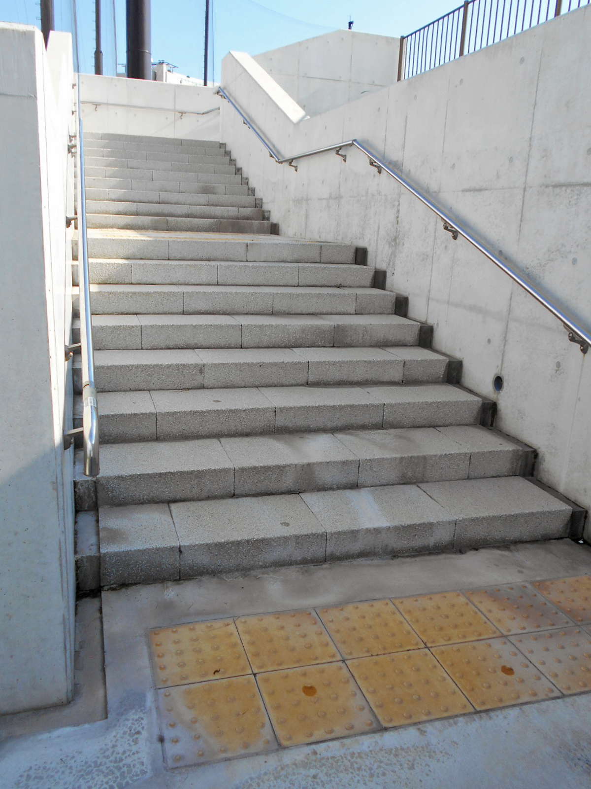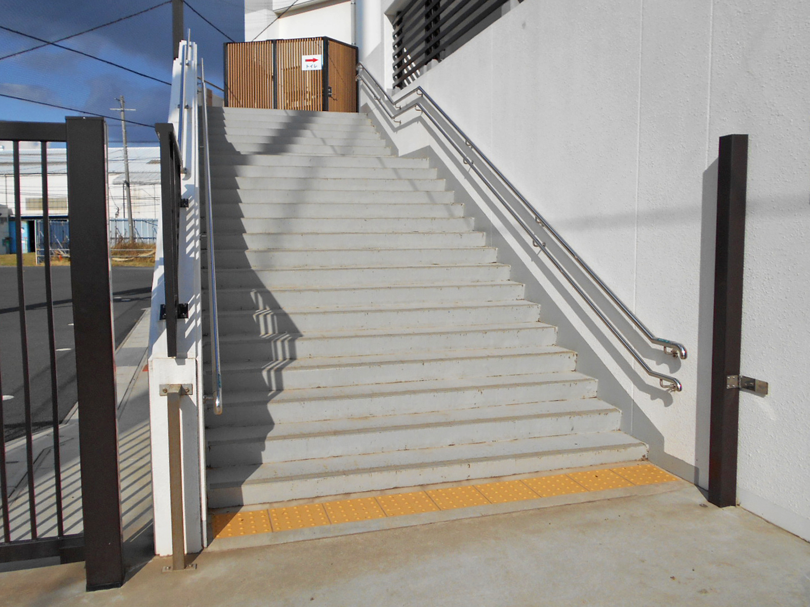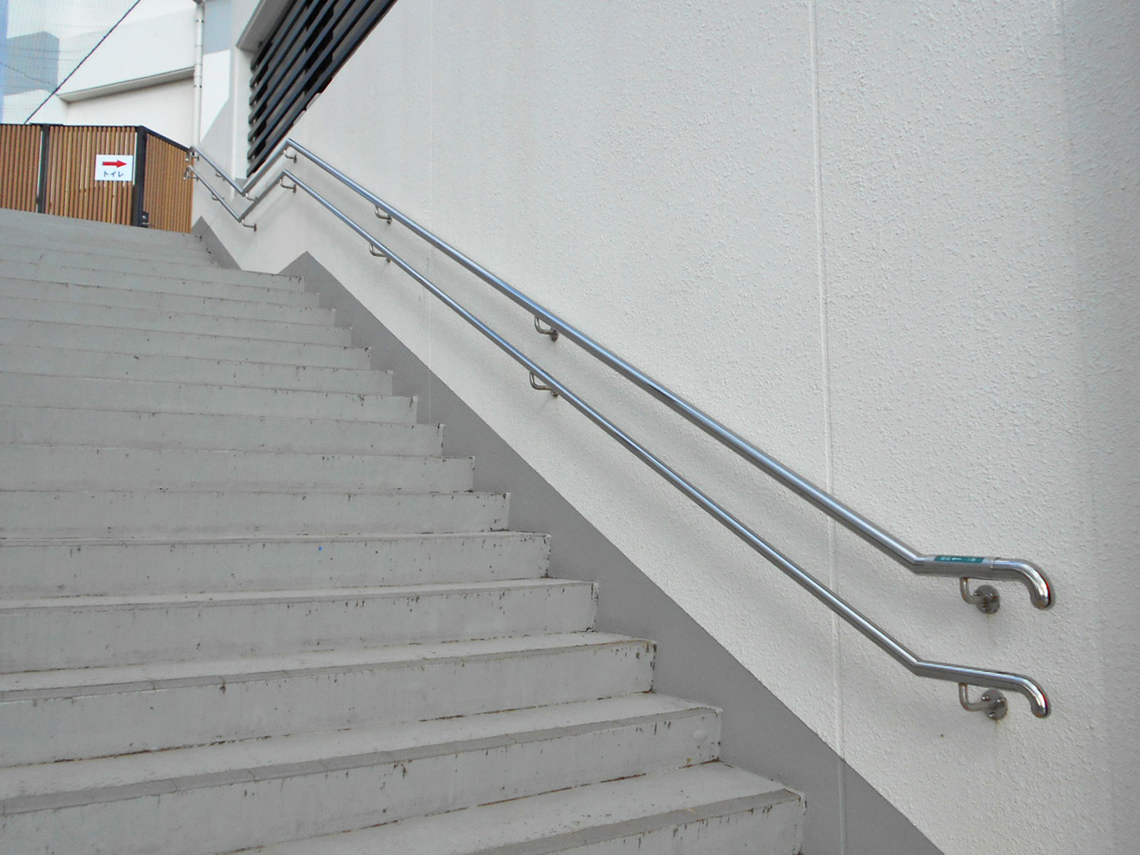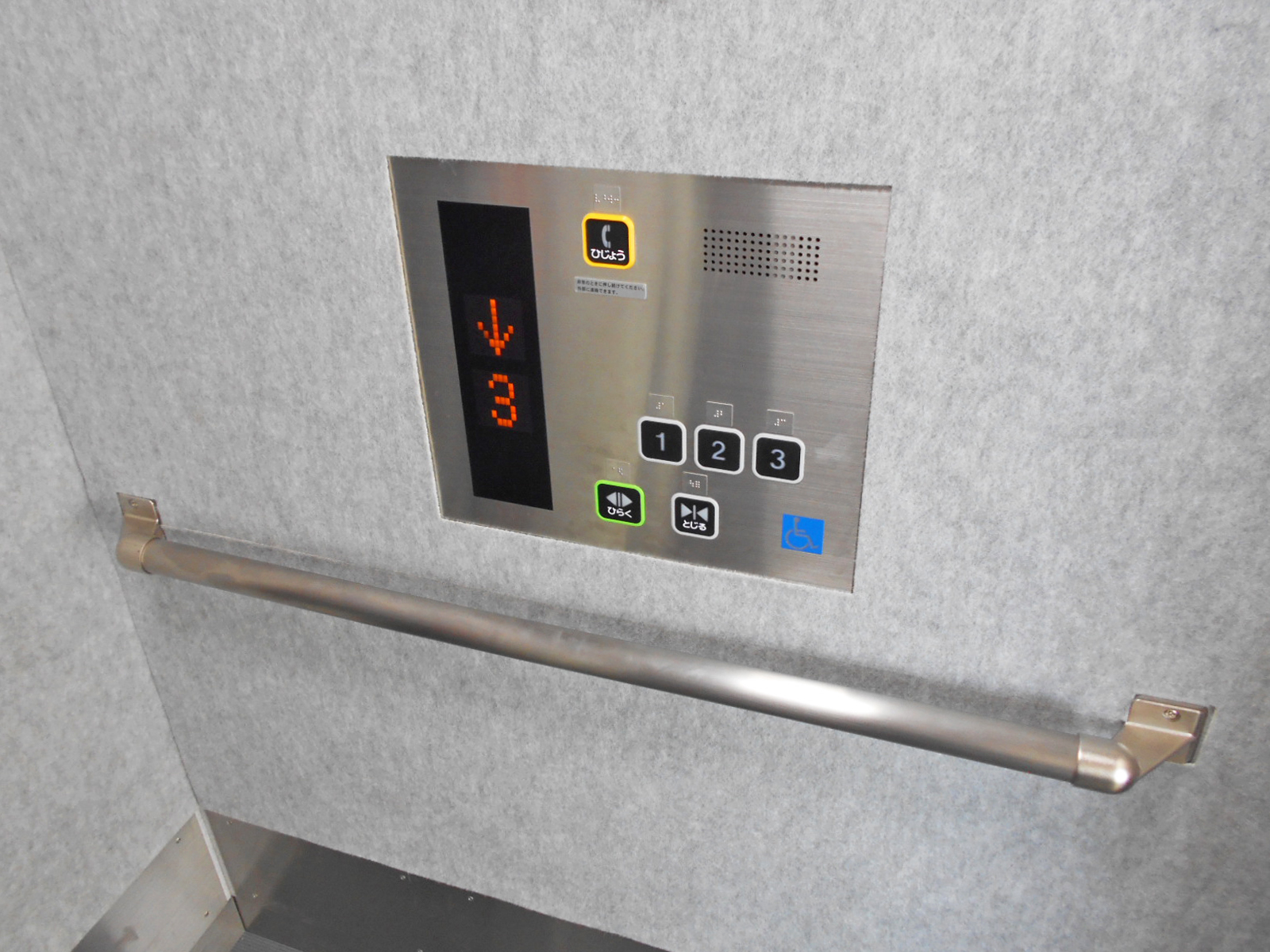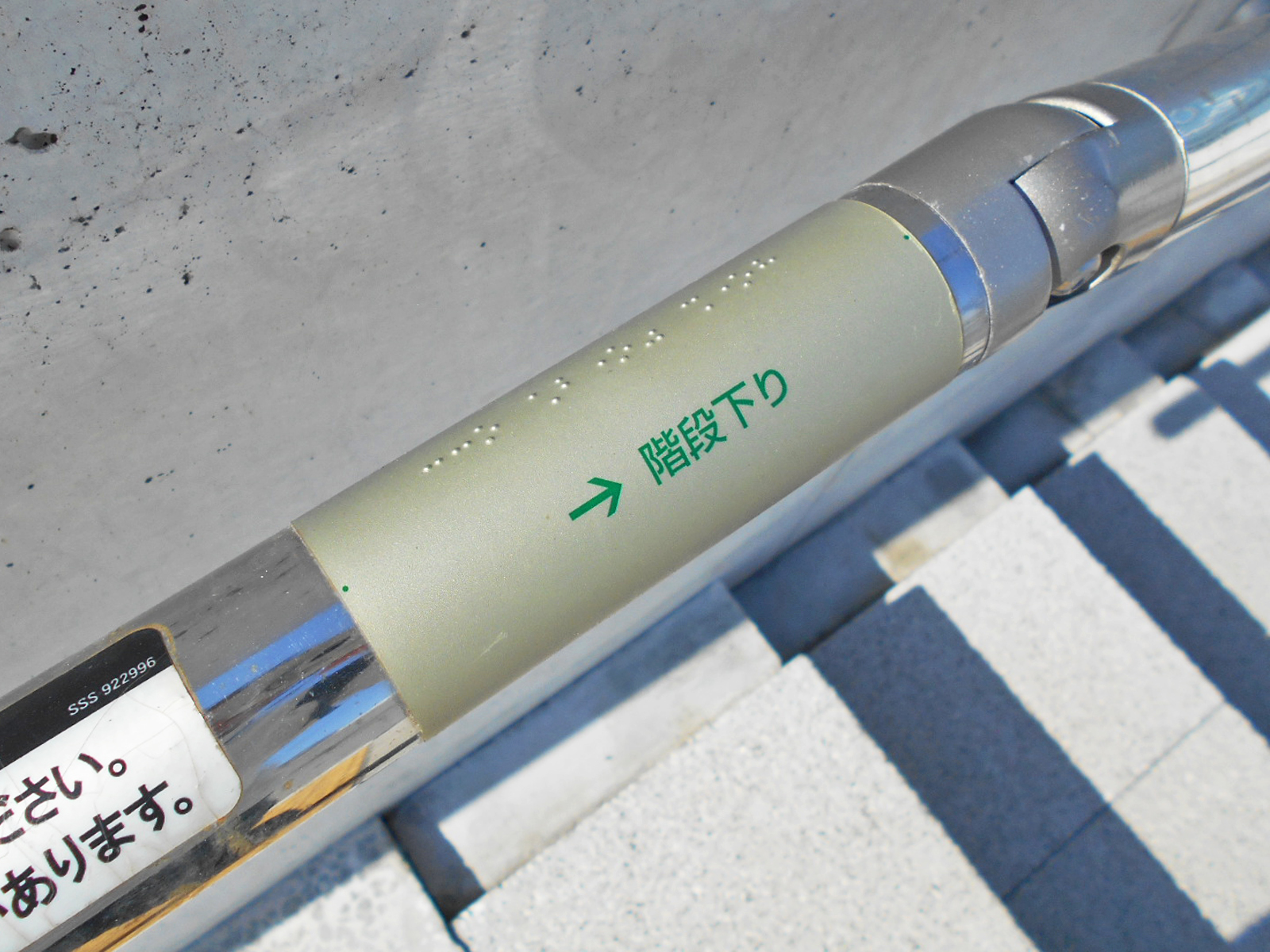 階段の手すりに点字表示がある - 障害者対応エレベーターの詳細