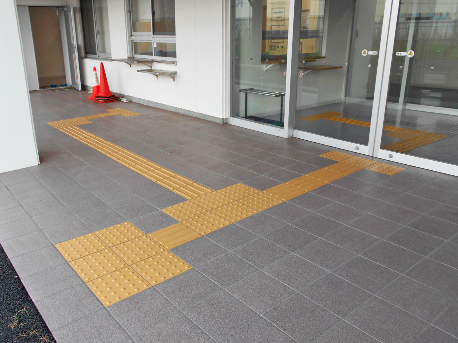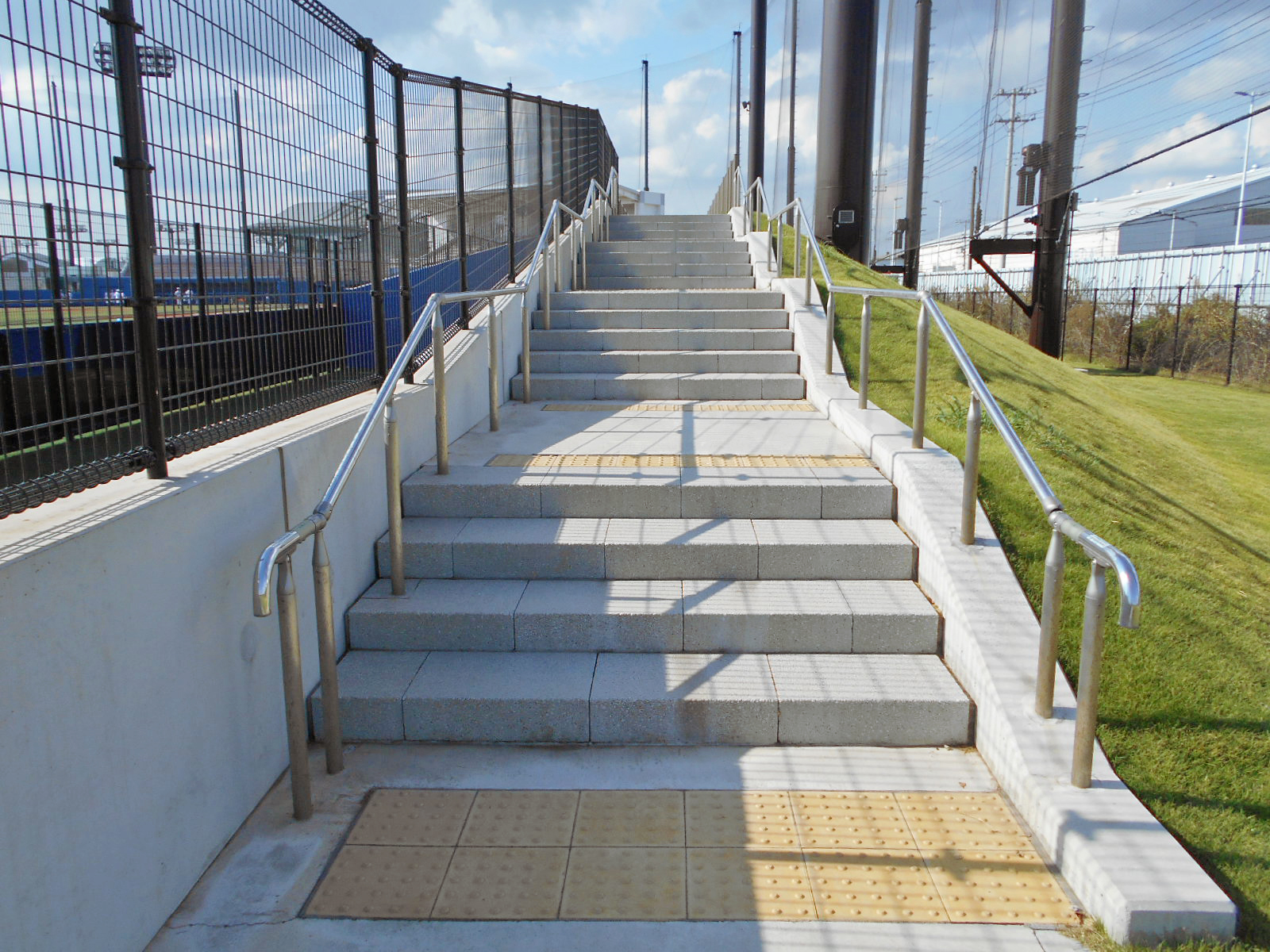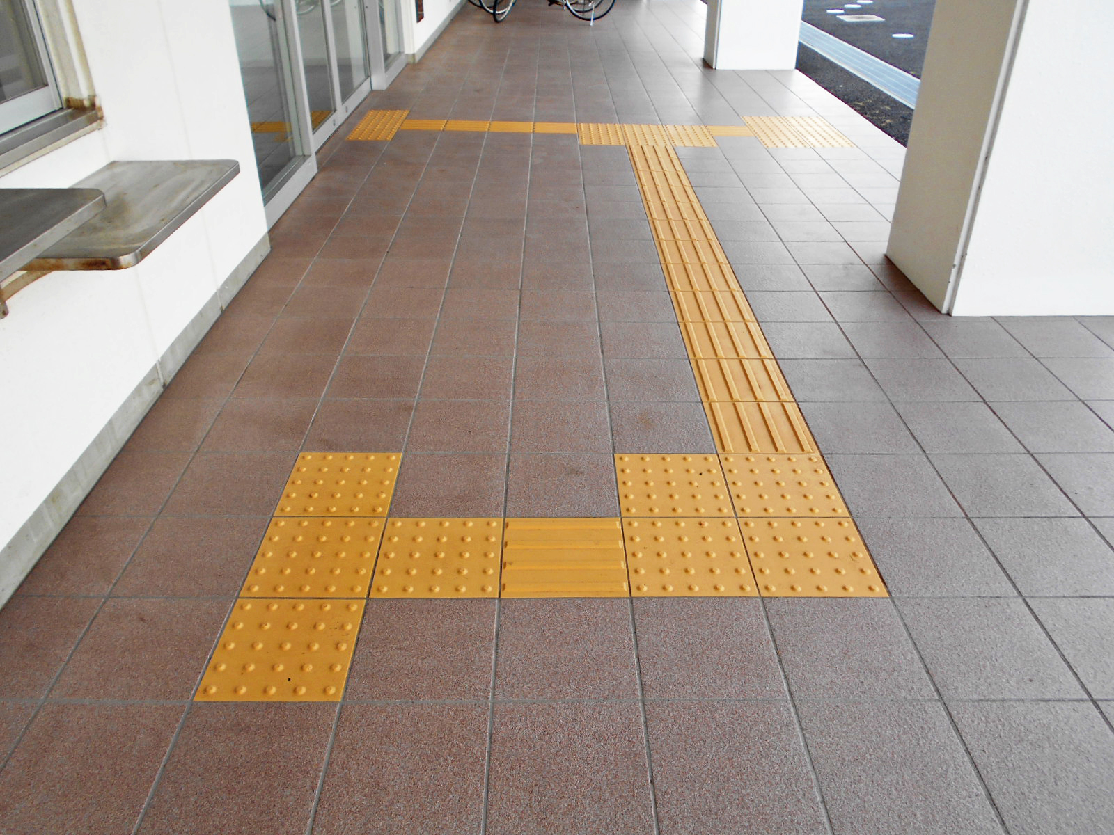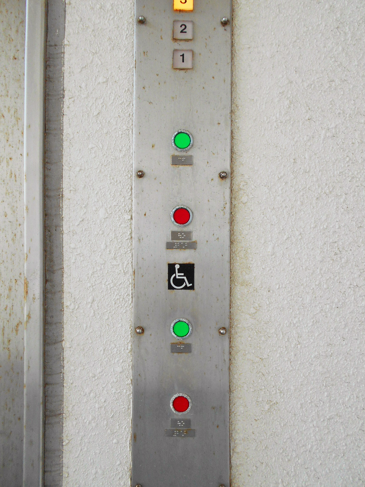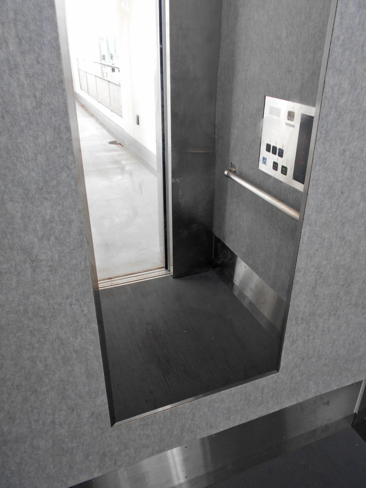 階段の手すりに点字表示がある - 障害者対応エレベーターの詳細