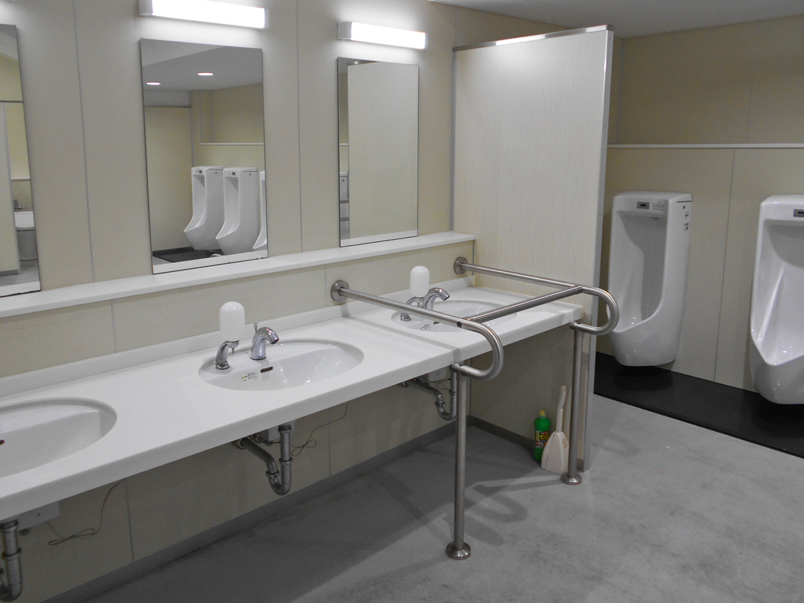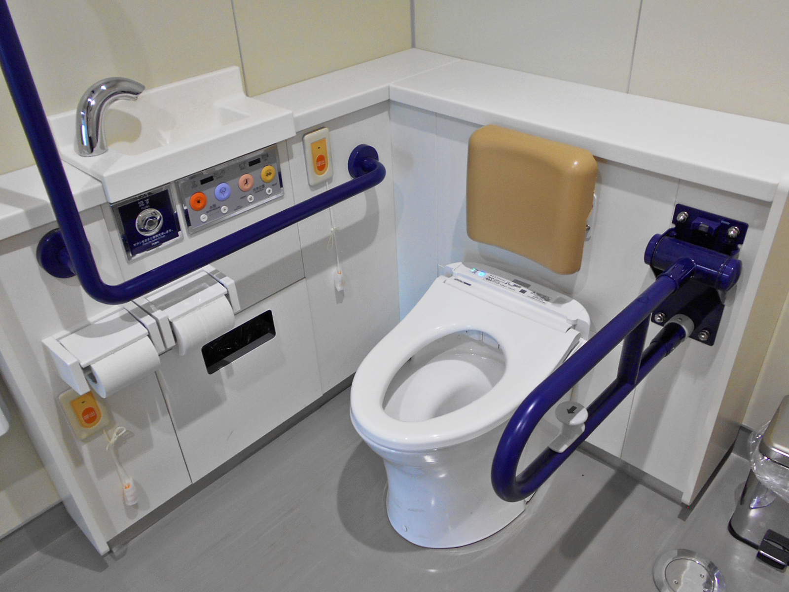 洋式便器(両手すり付き)があるバリアフリートイレ