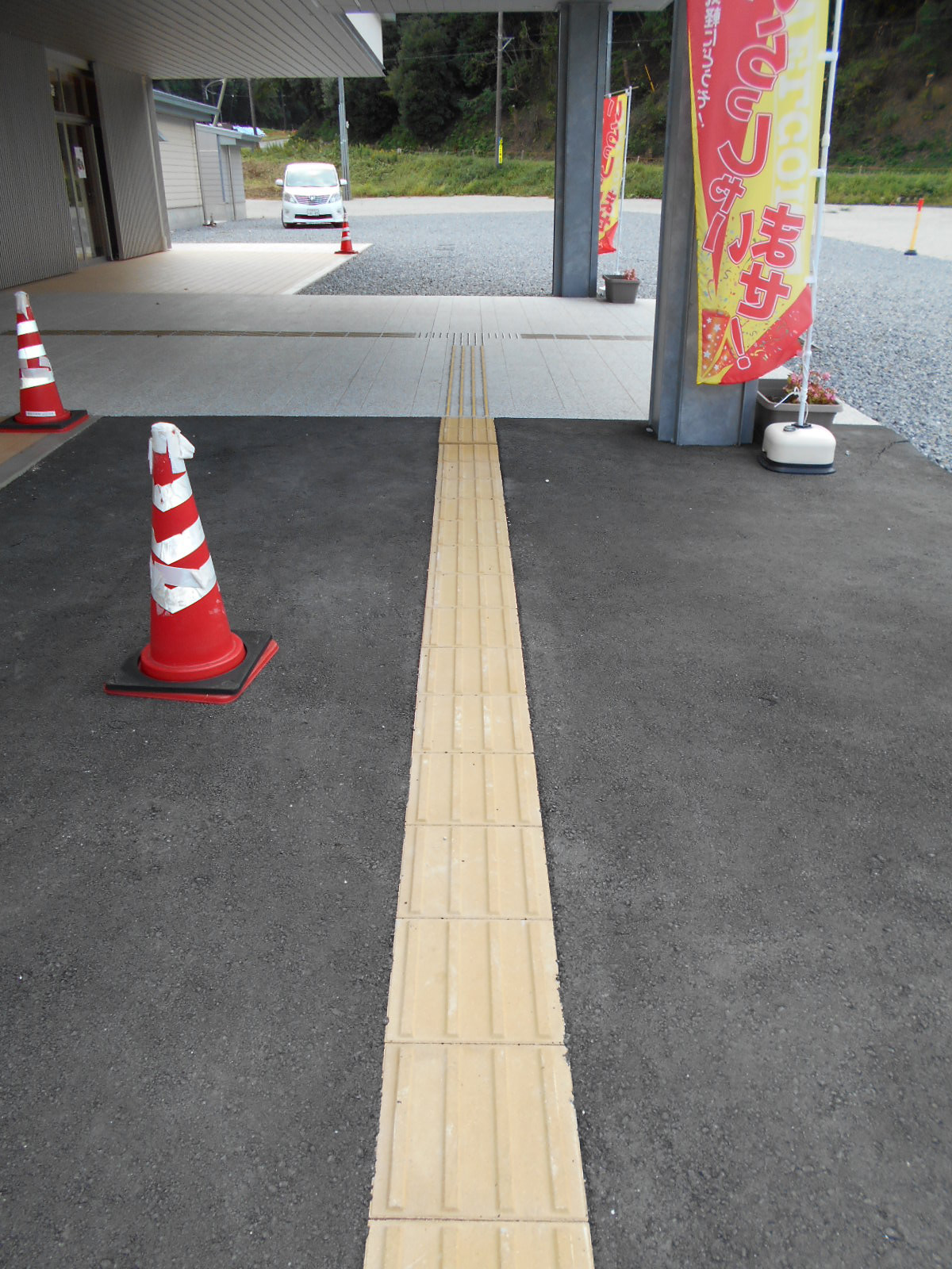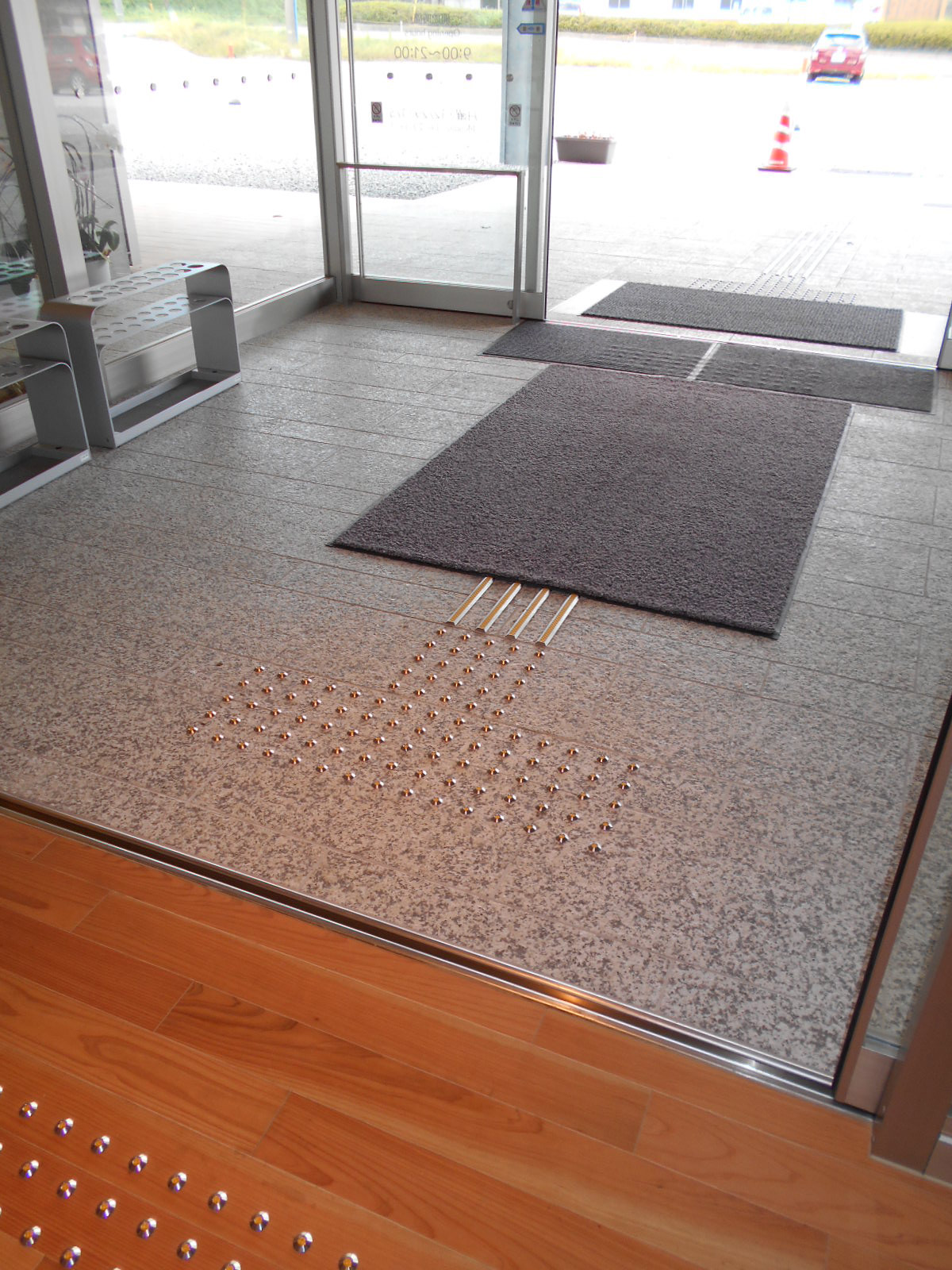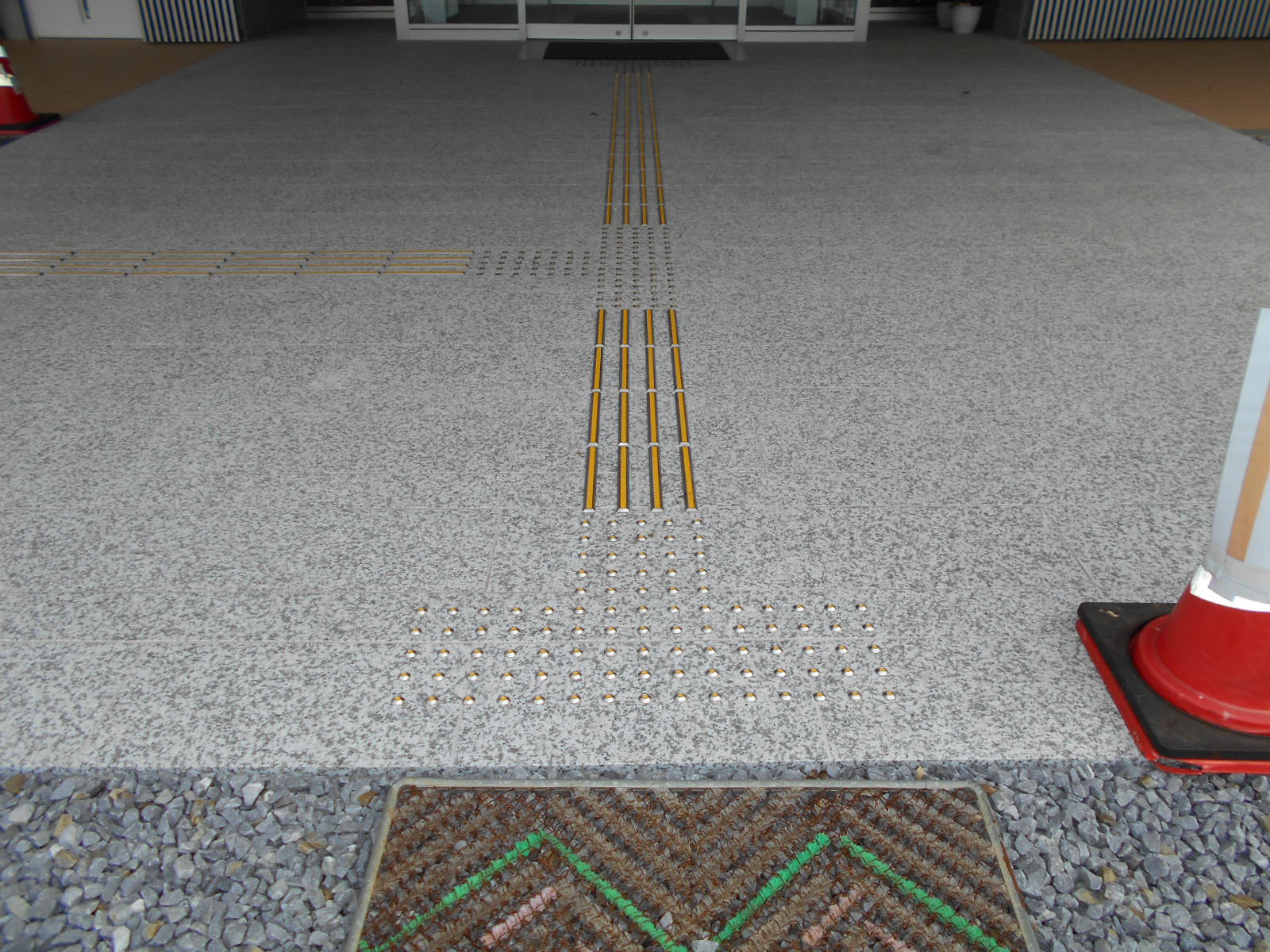 歩道から出入口までに視覚障害者誘導用ブロックがある