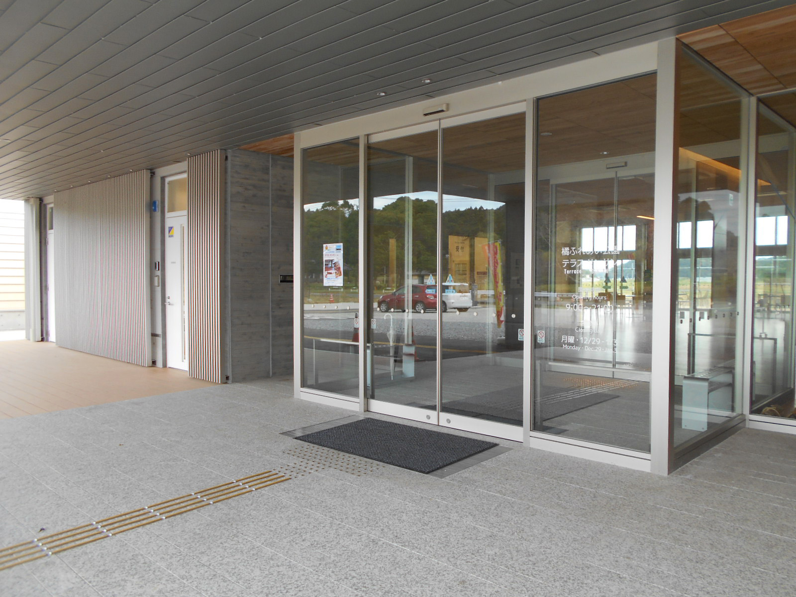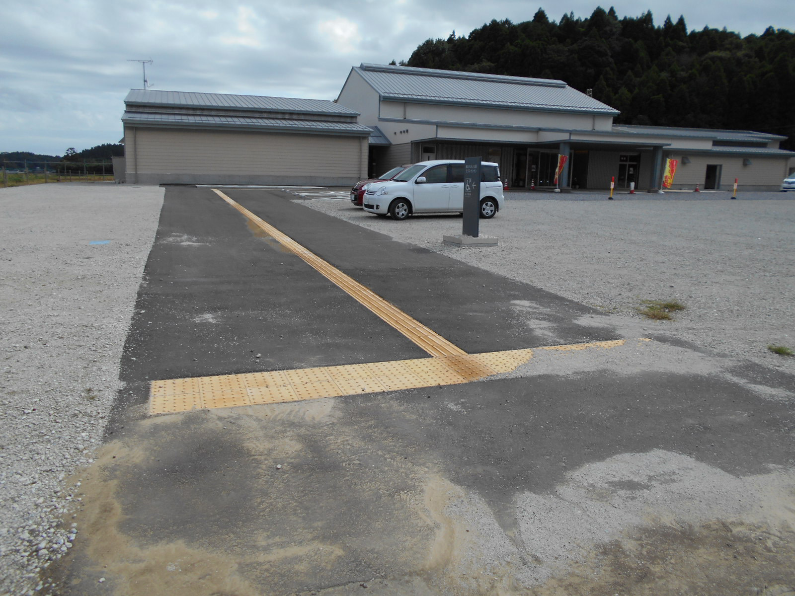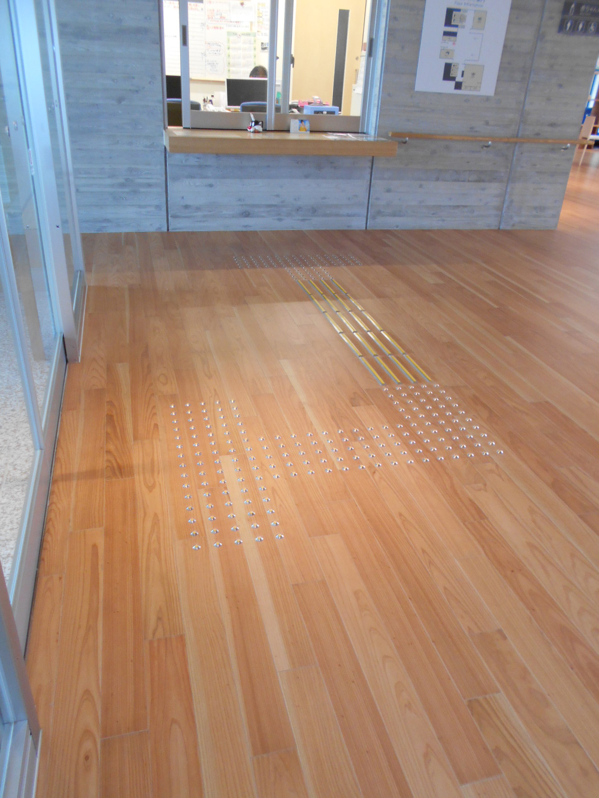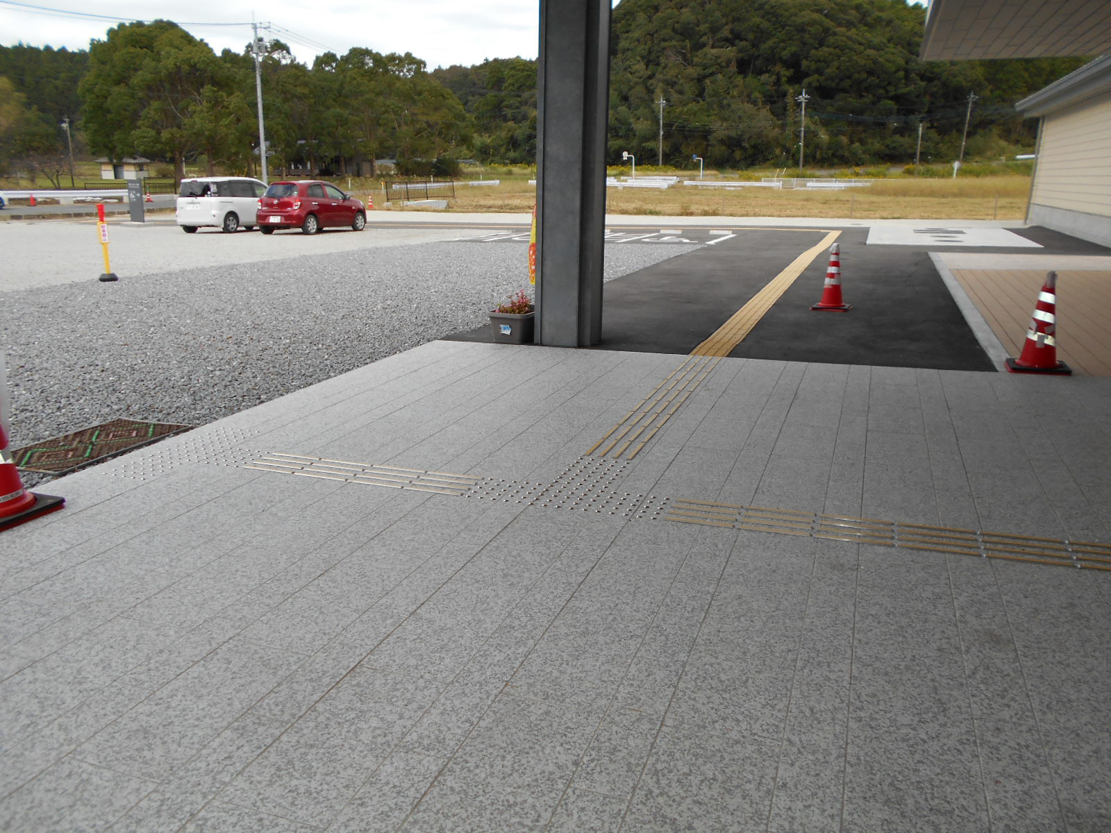 歩道から出入口までに視覚障害者誘導用ブロックがある