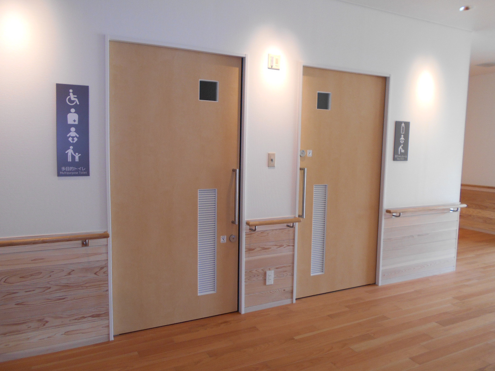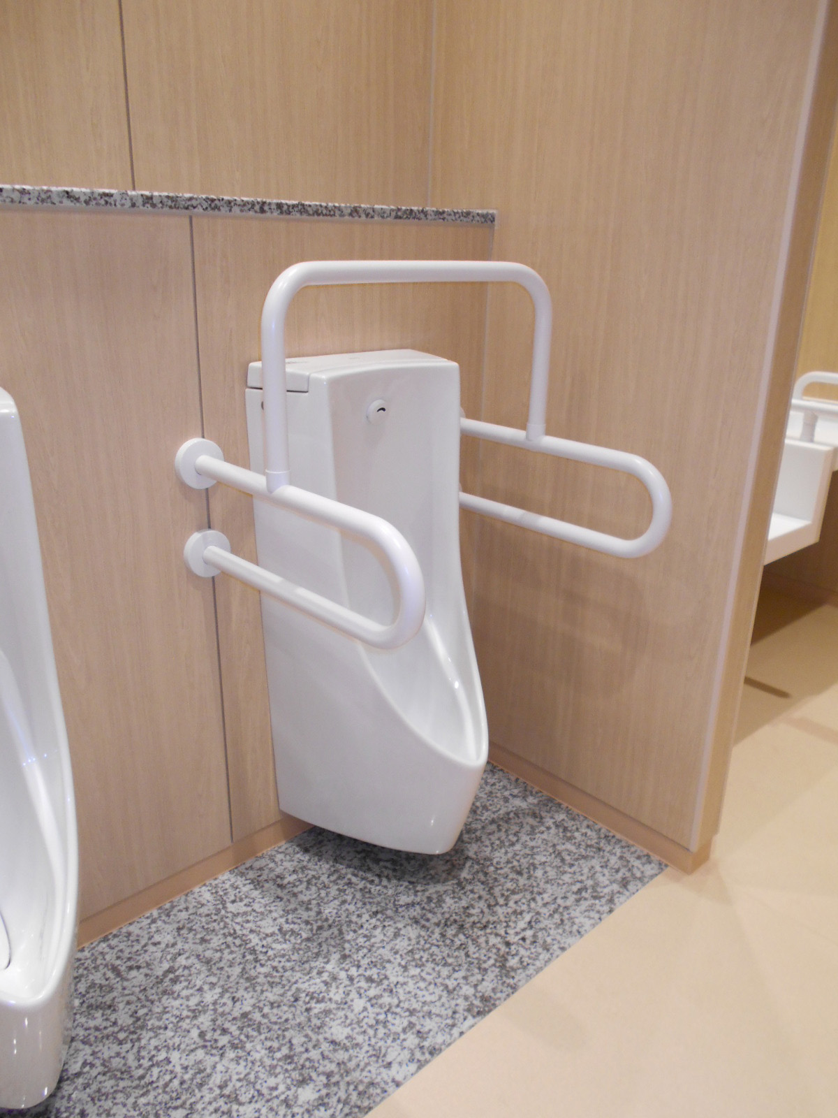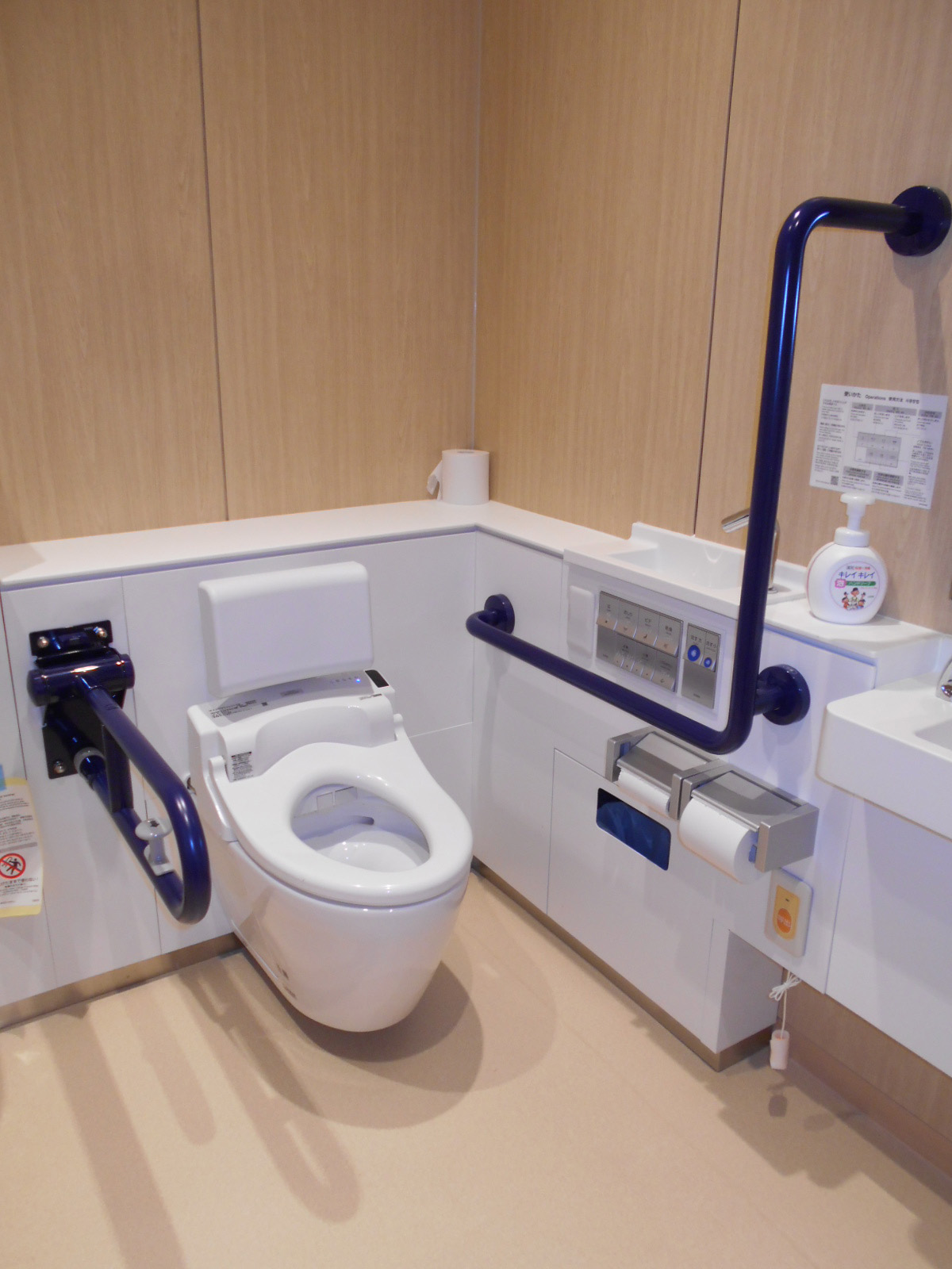 洋式便器(両手すり付き)があるバリアフリートイレ