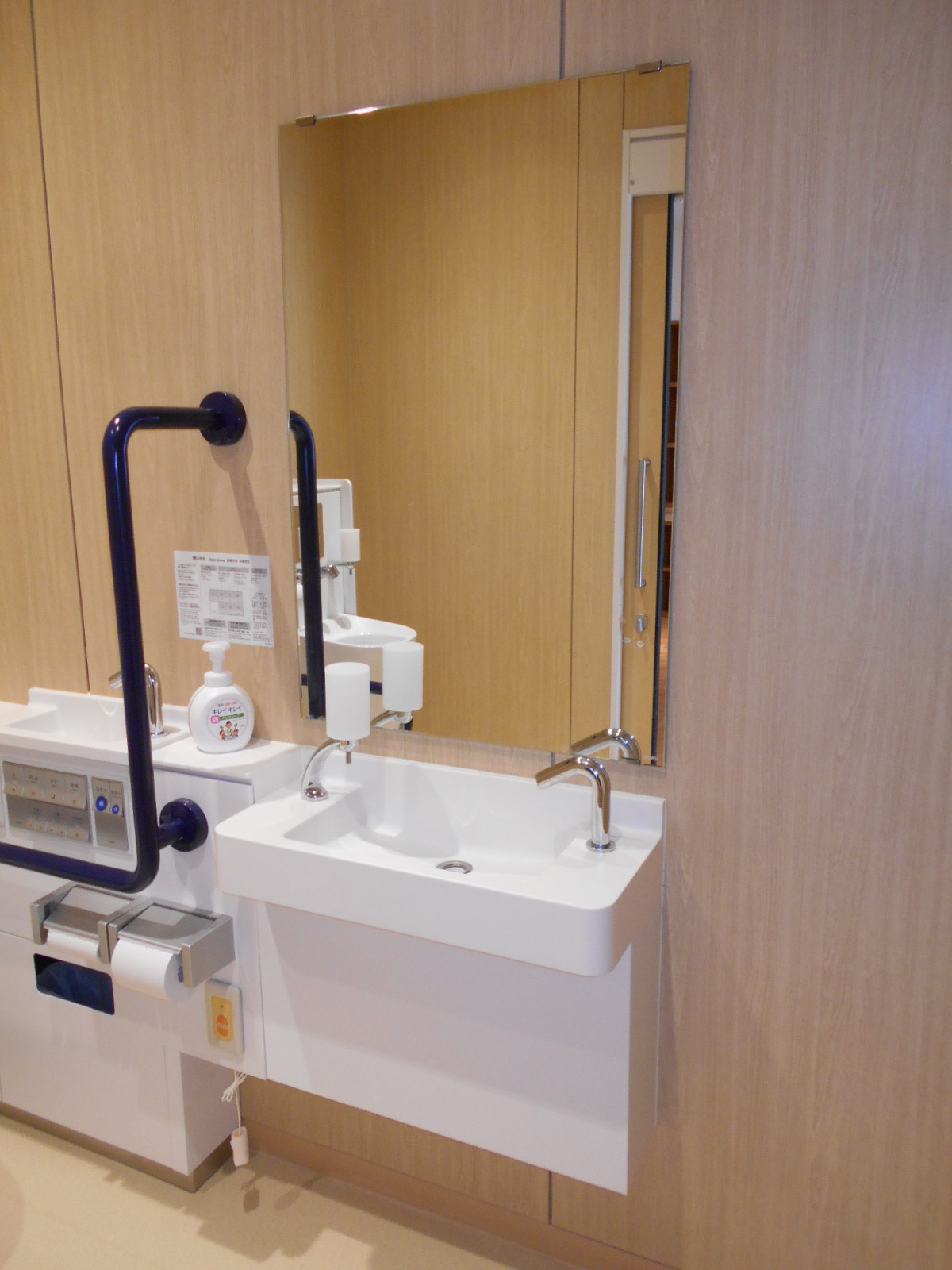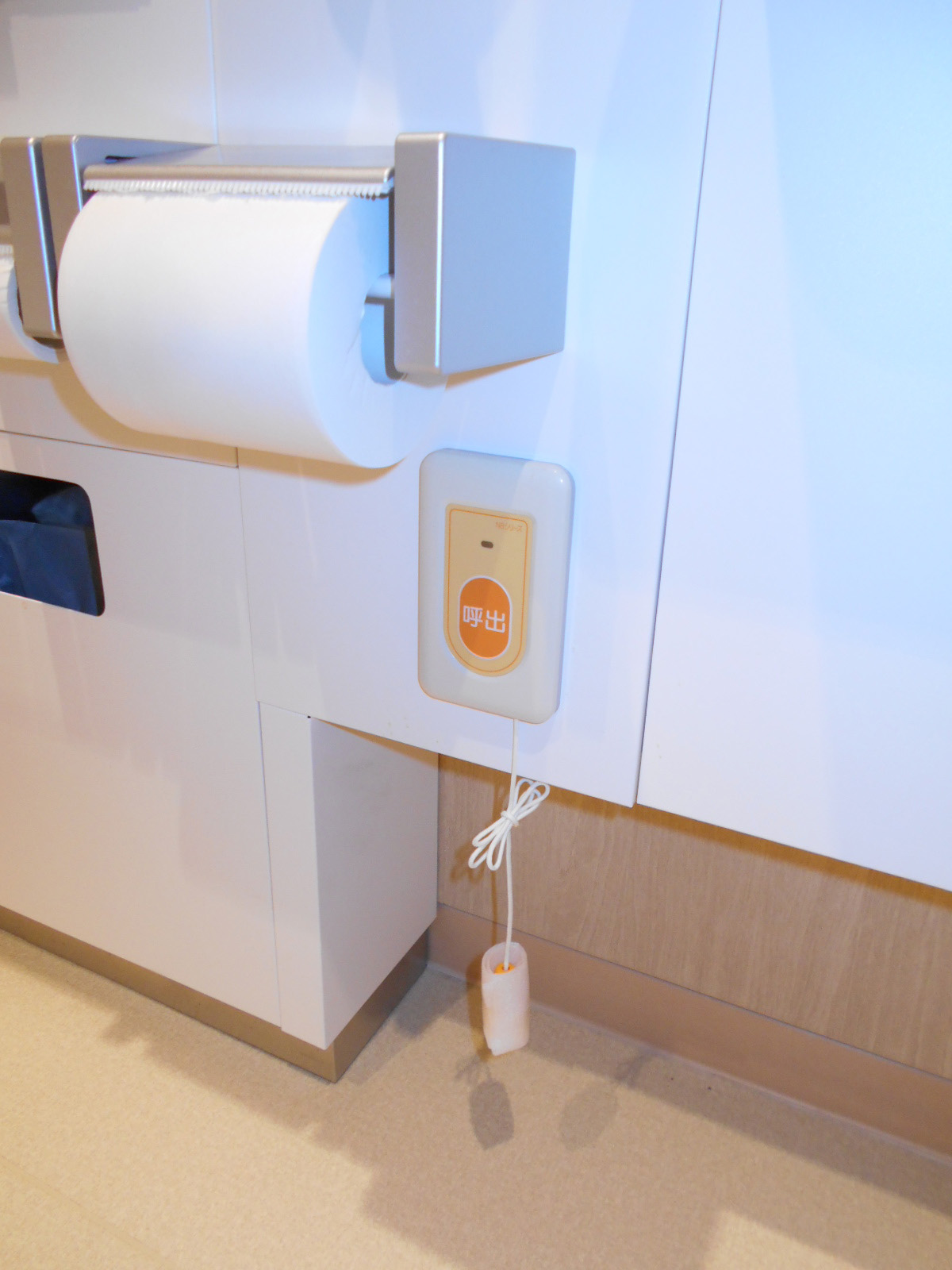 非常ベルが便座から手が届く範囲にある子育て支援設備