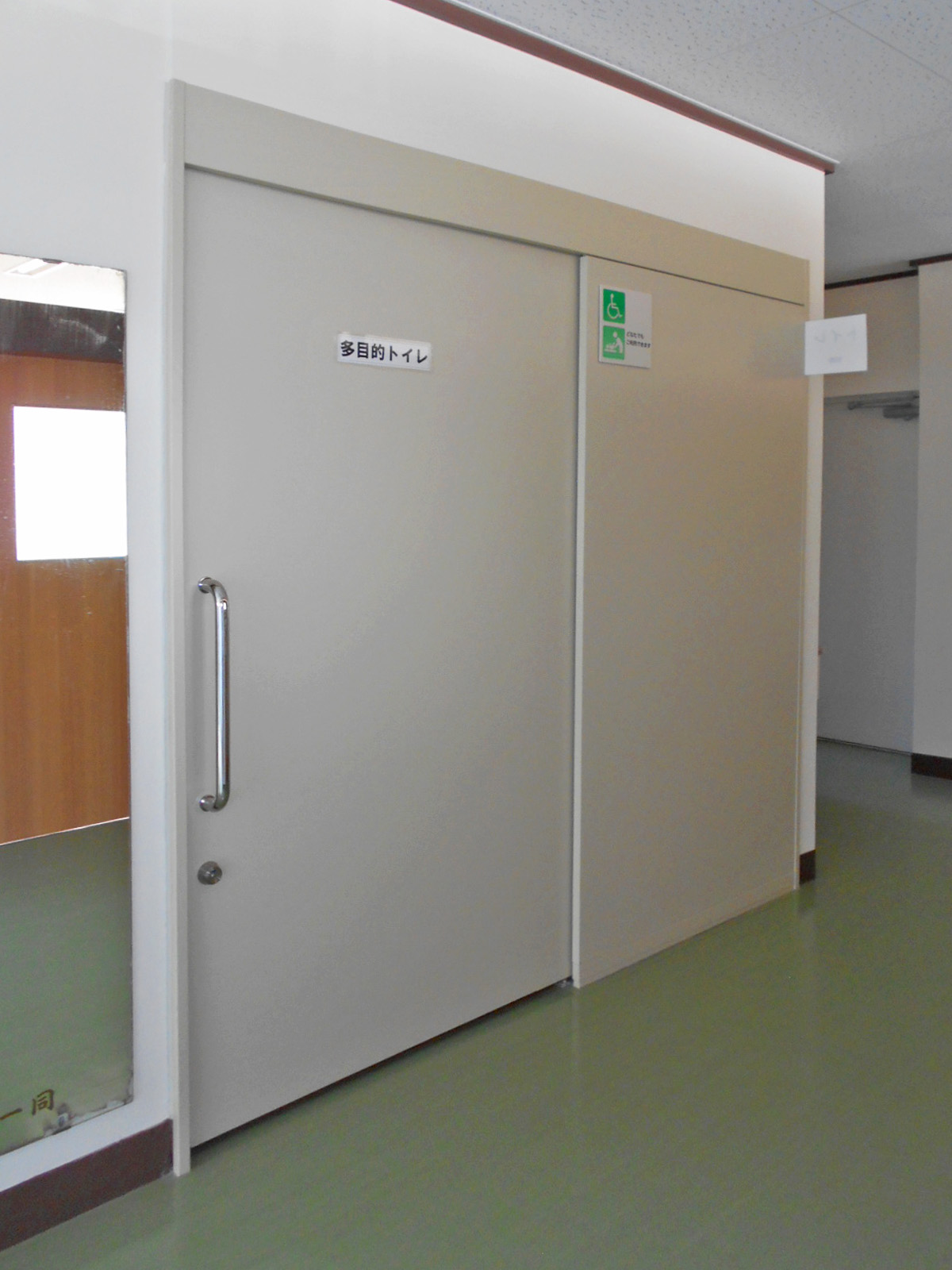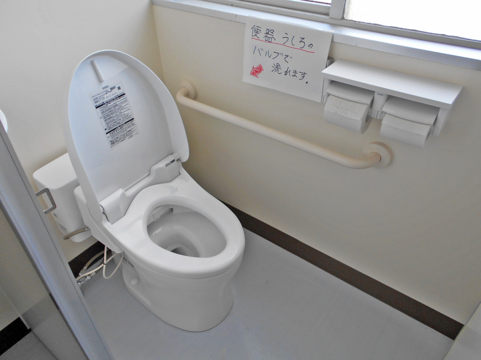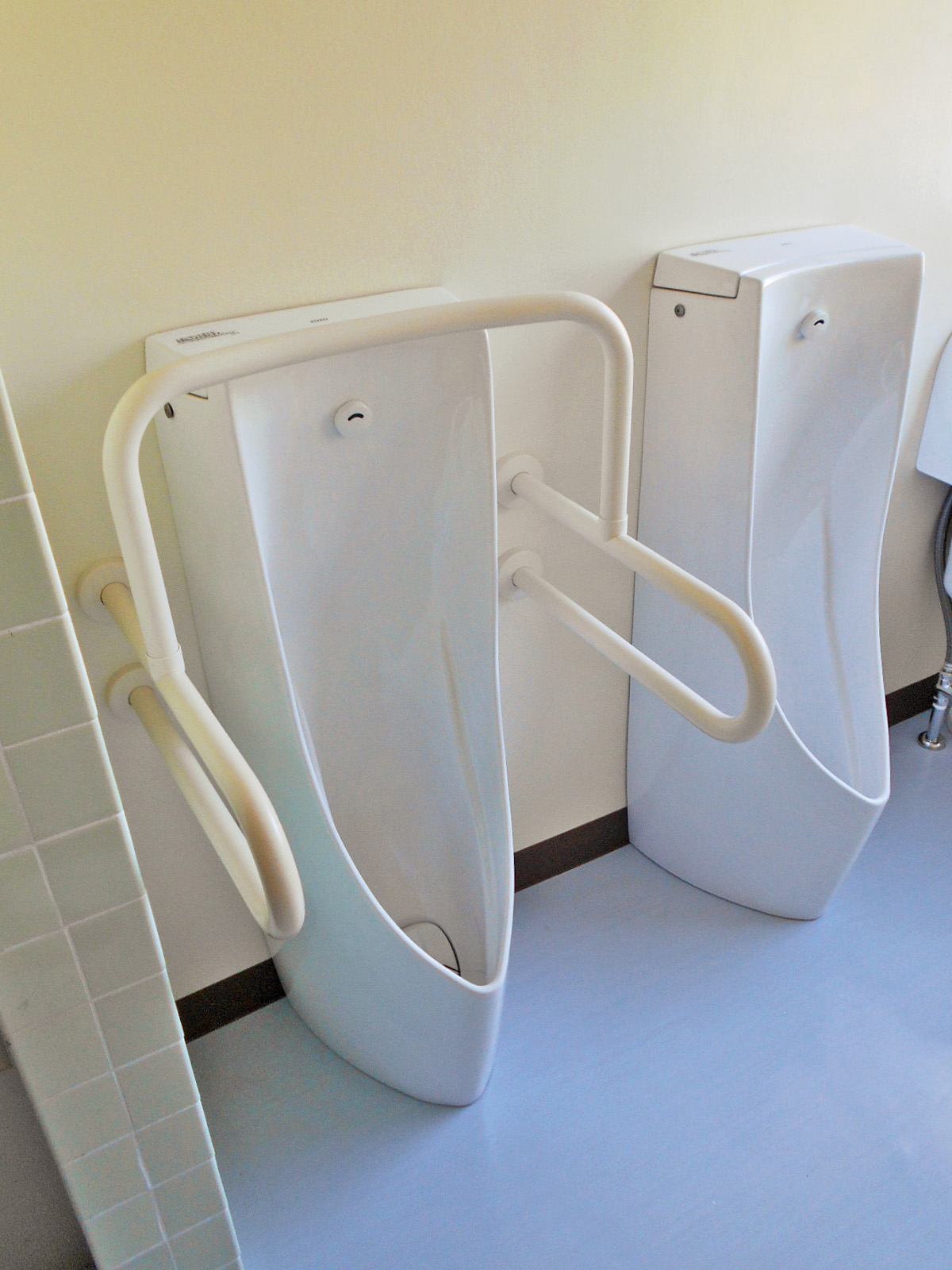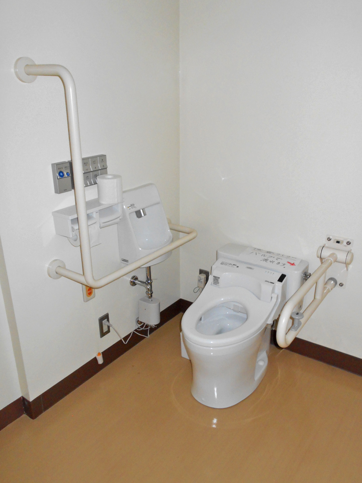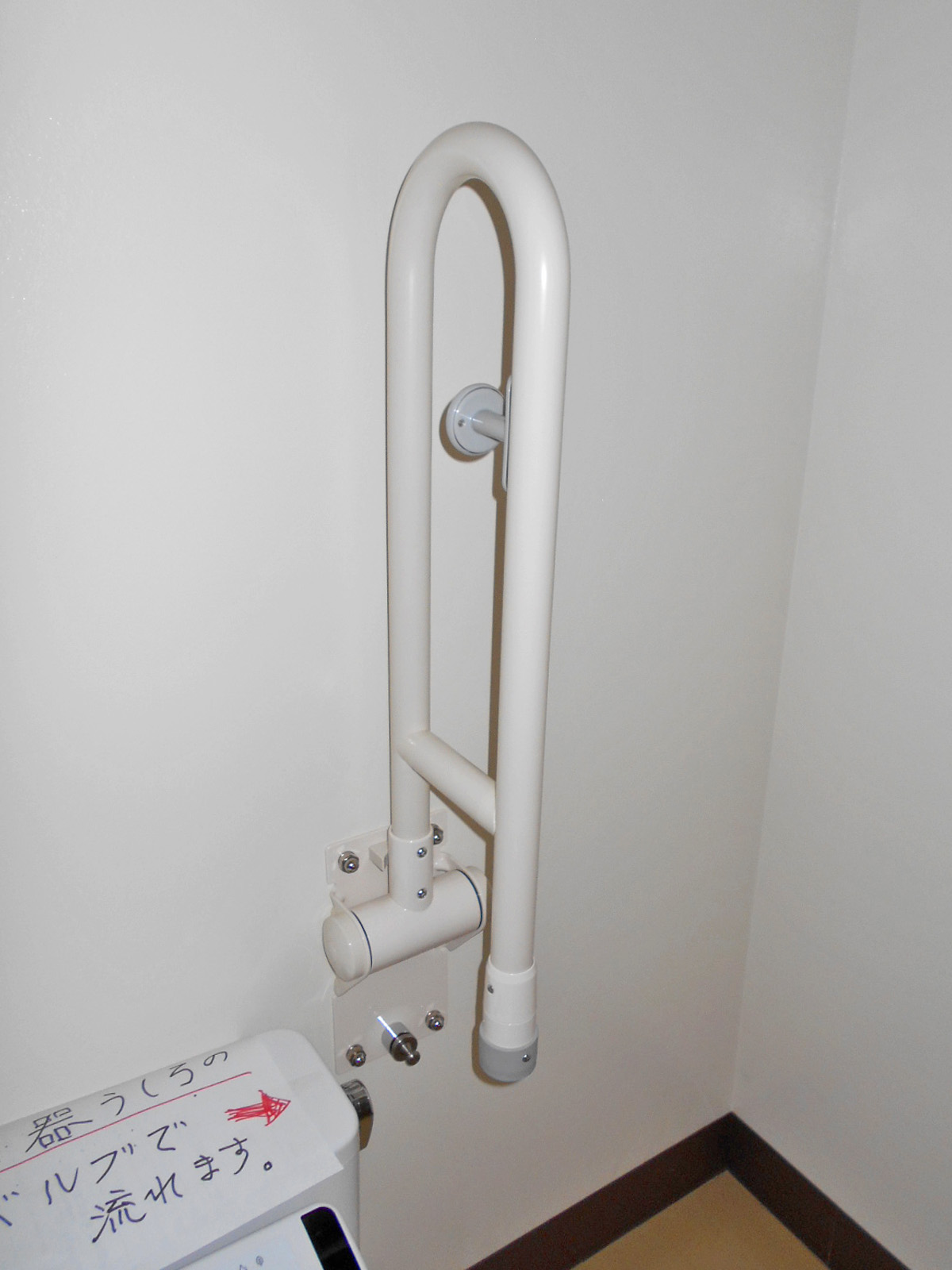 洋式便器(両手すり付き)があるバリアフリートイレ