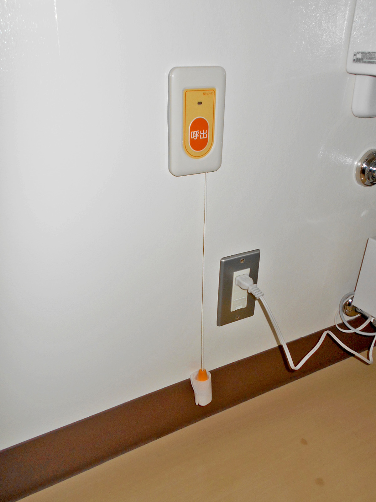 非常ベルが便座から手が届く範囲にある子育て支援設備