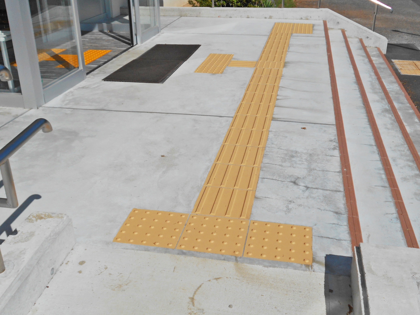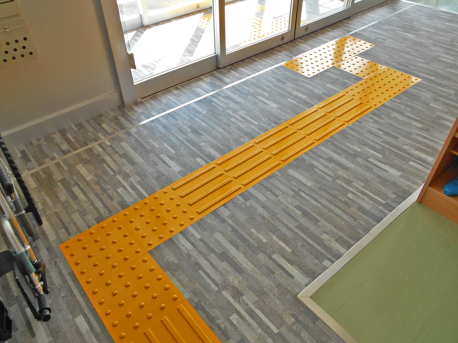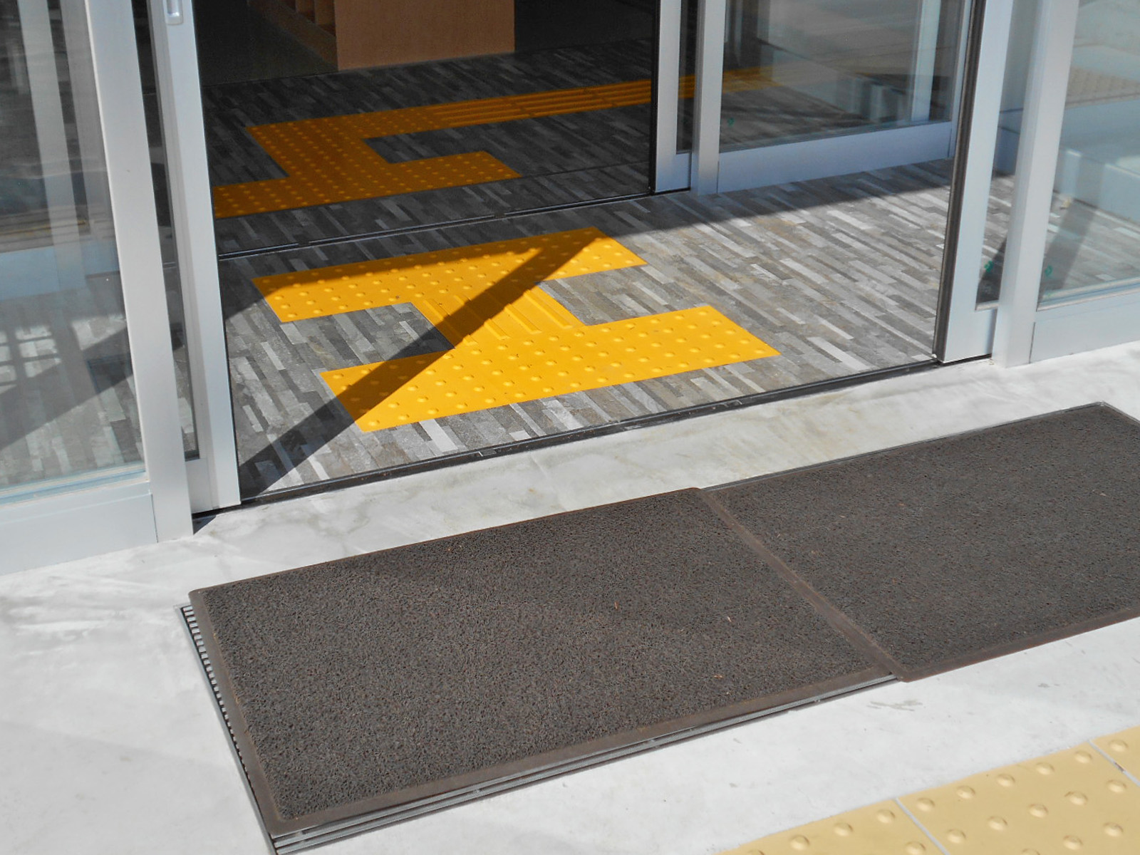 歩道から出入口までに視覚障害者誘導用ブロックがある