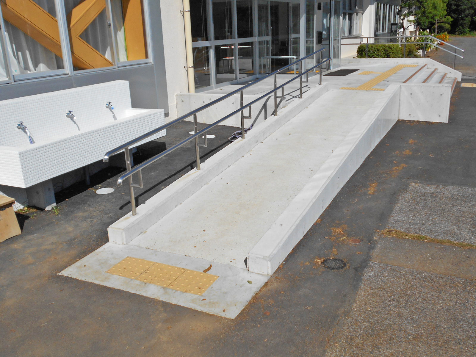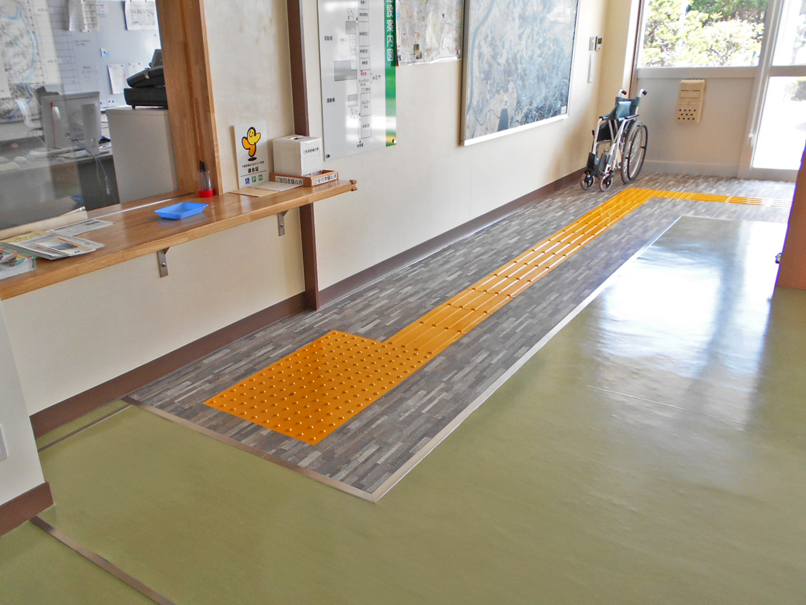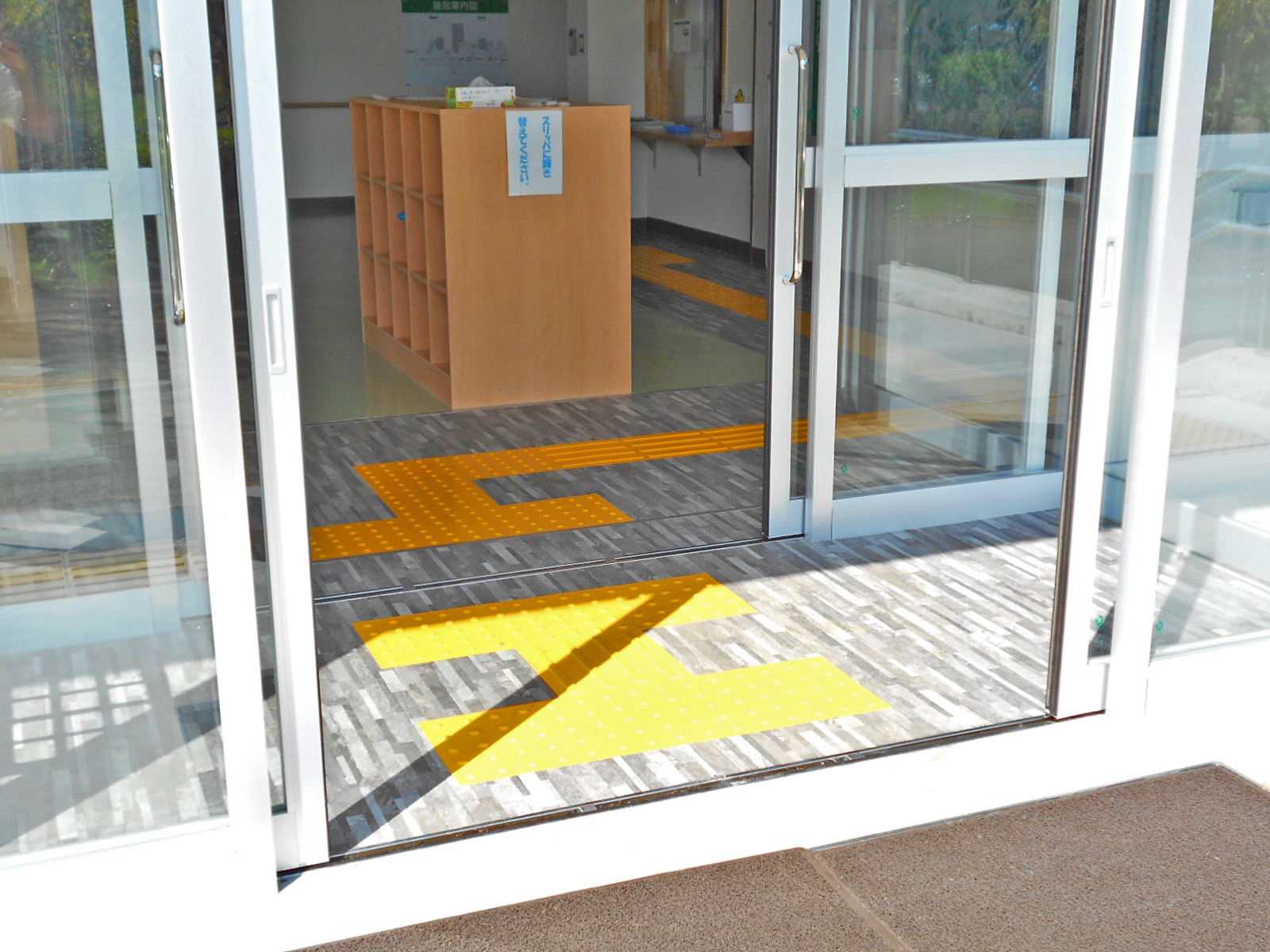 歩道から出入口までに視覚障害者誘導用ブロックがある