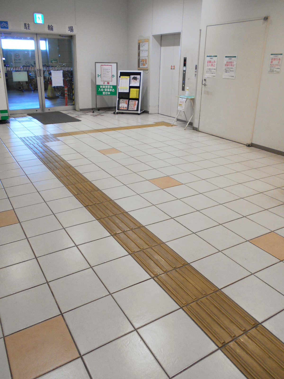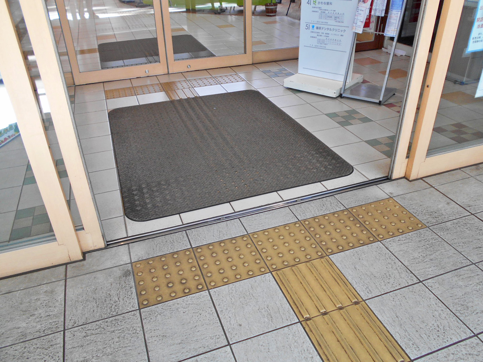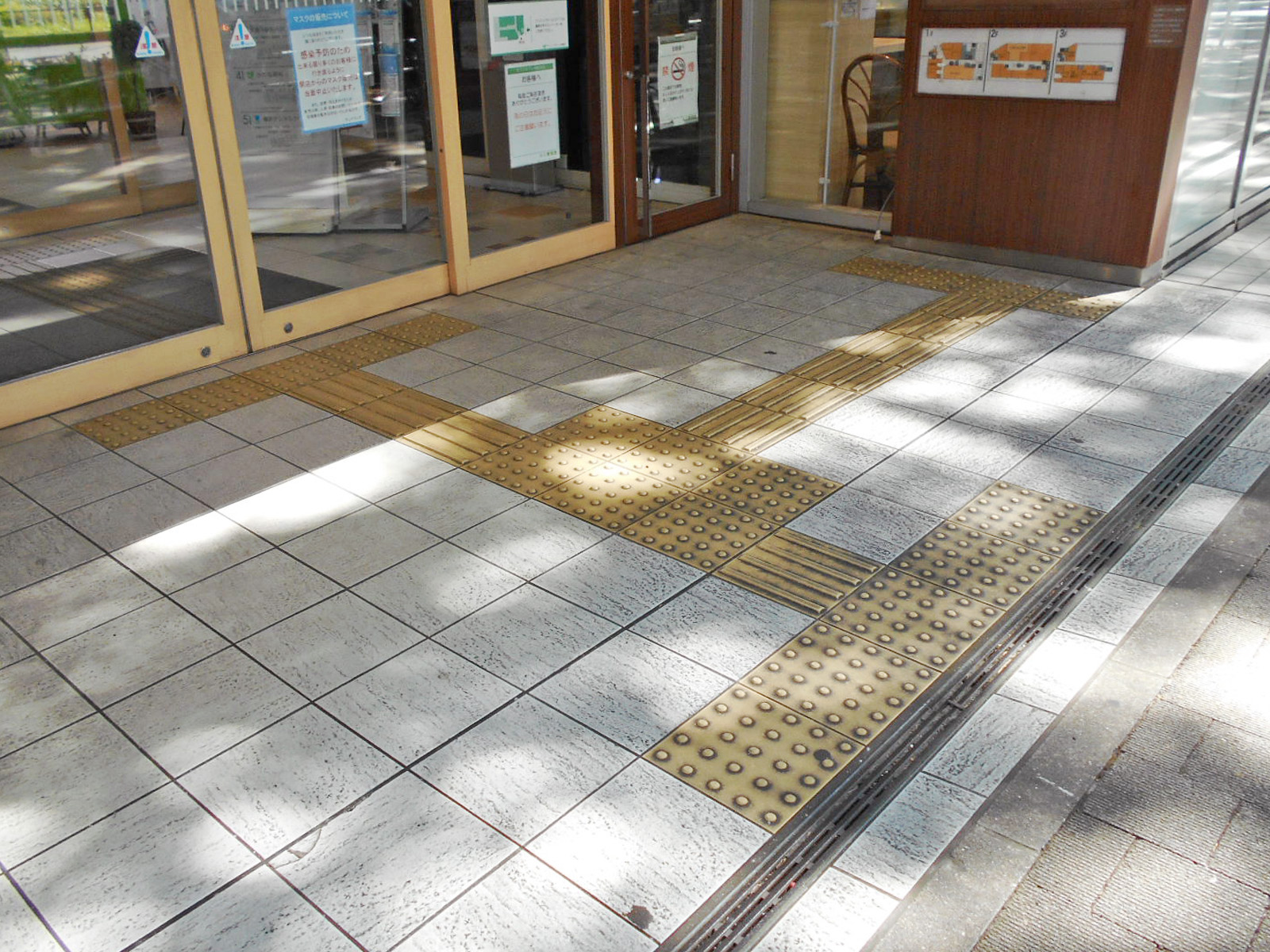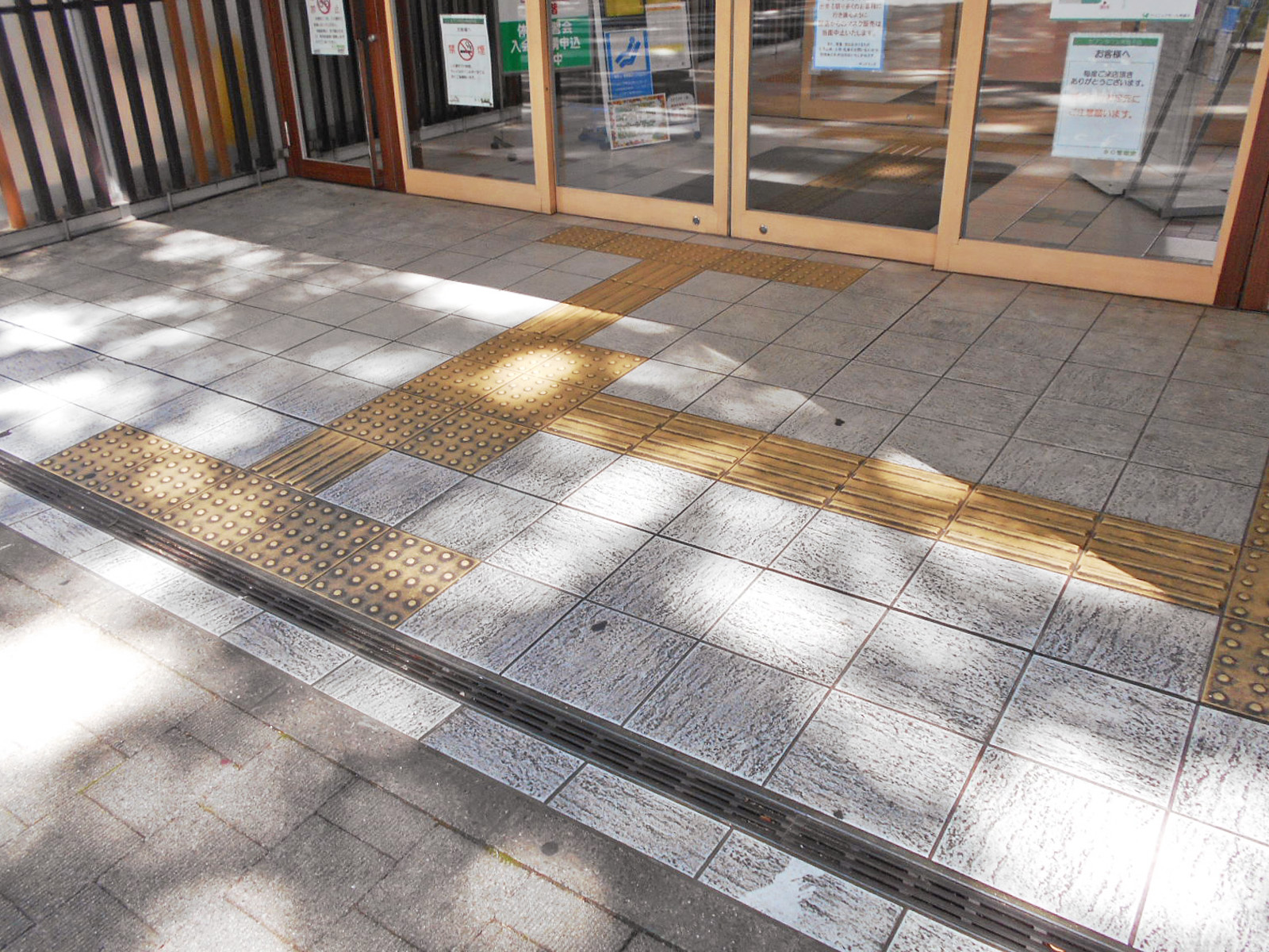 歩道から出入口までに視覚障害者誘導用ブロックがある