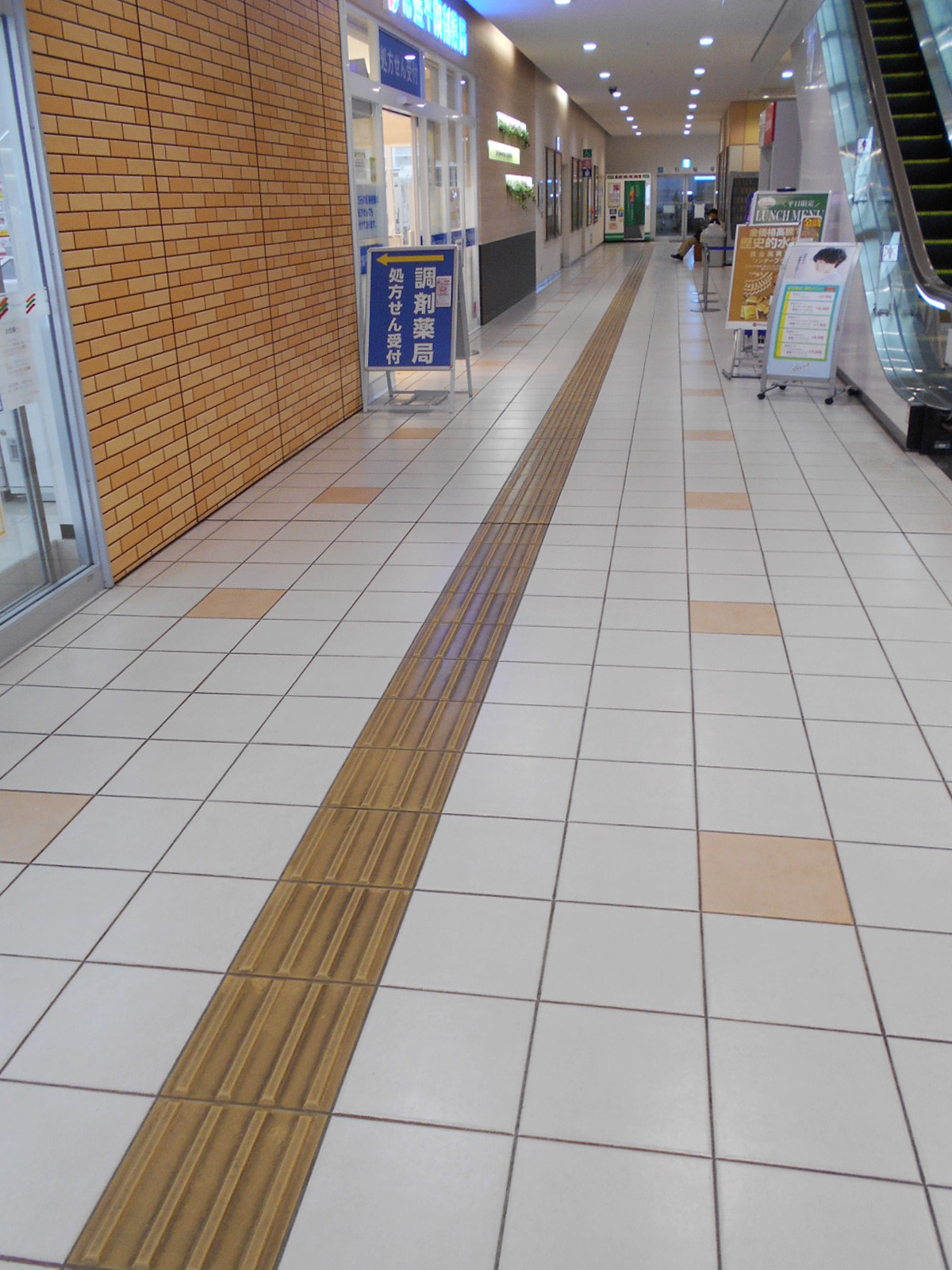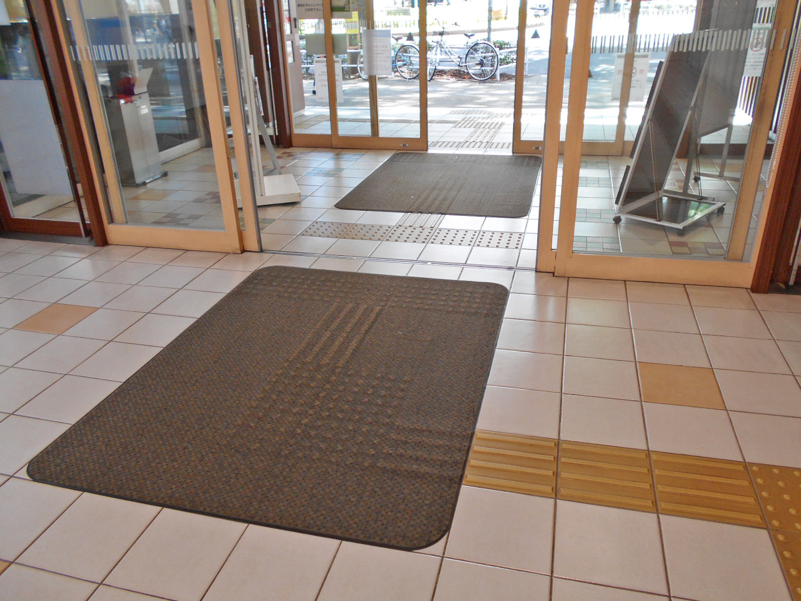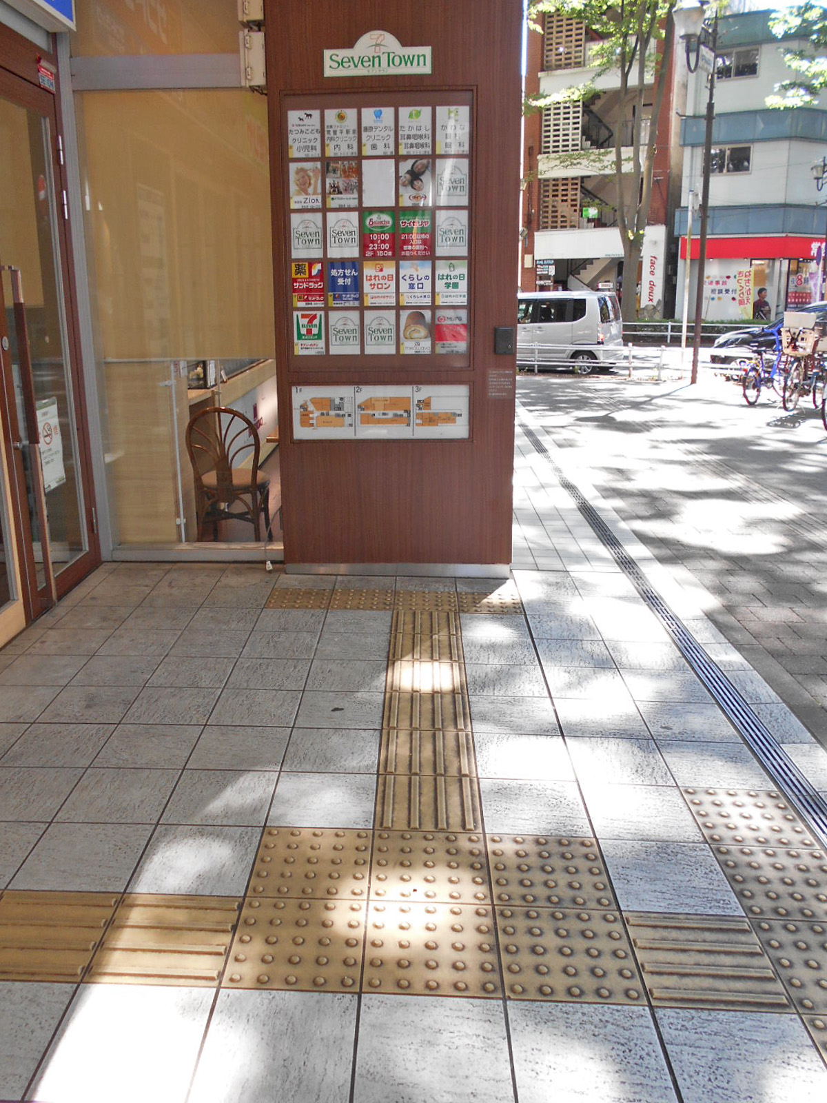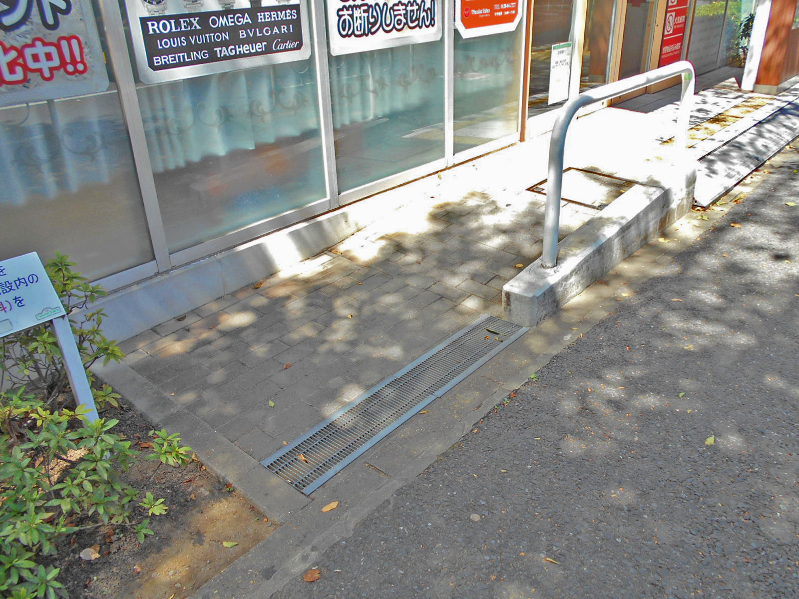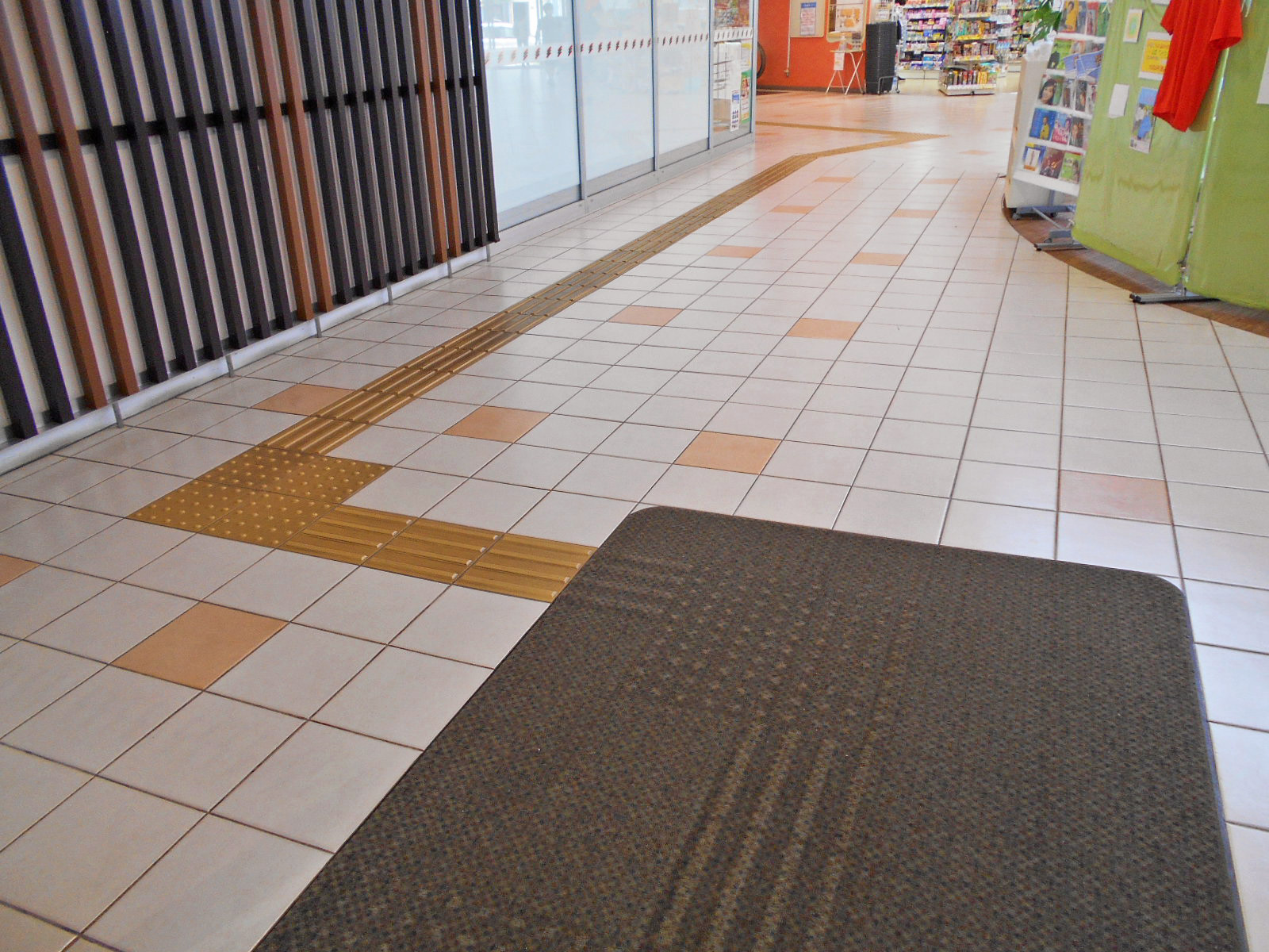 歩道から出入口までに視覚障害者誘導用ブロックがある