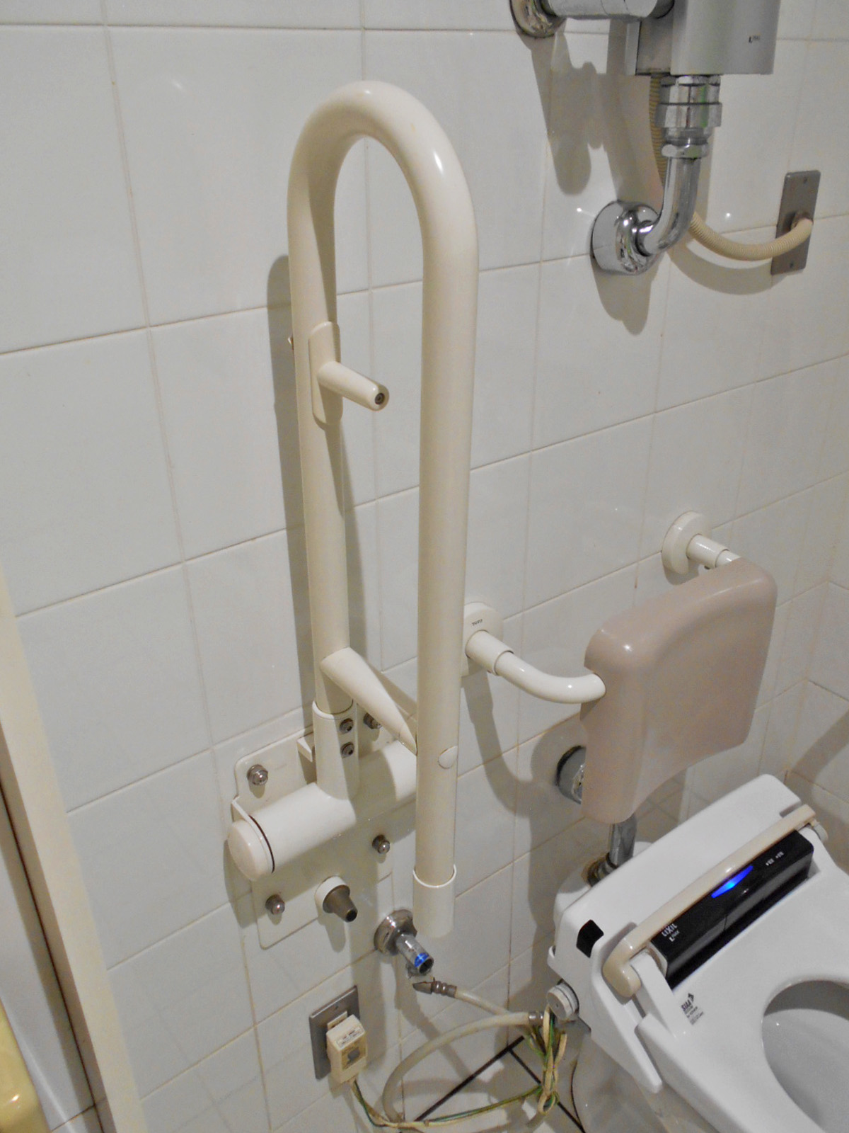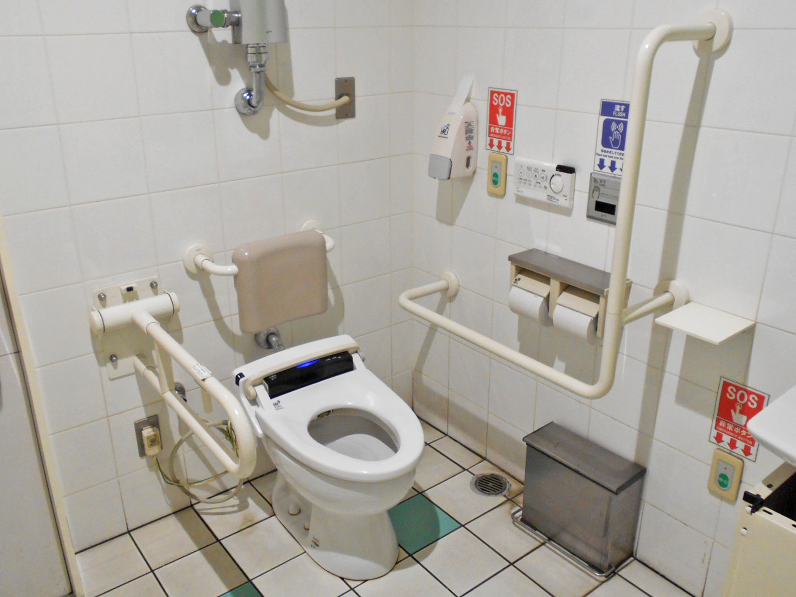 洋式便器(両手すり付き)があるバリアフリートイレ