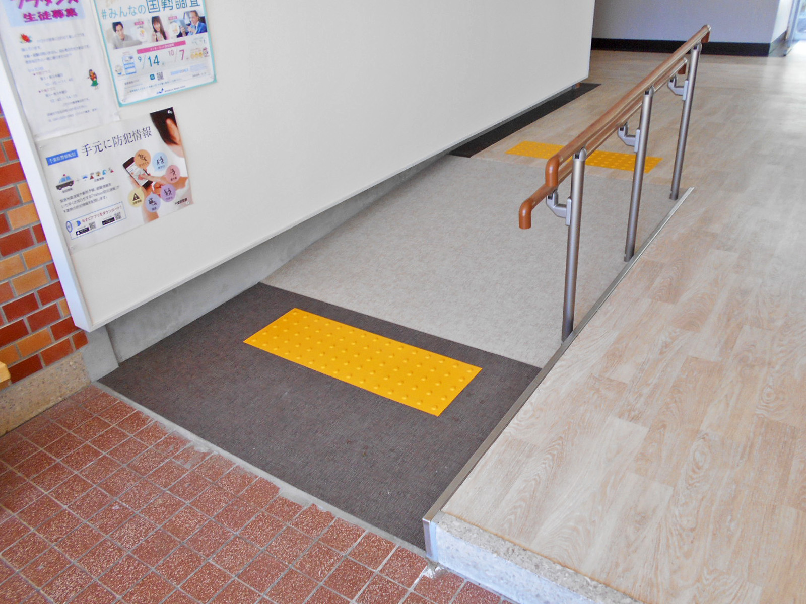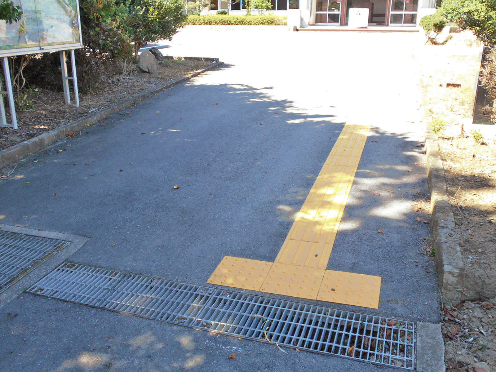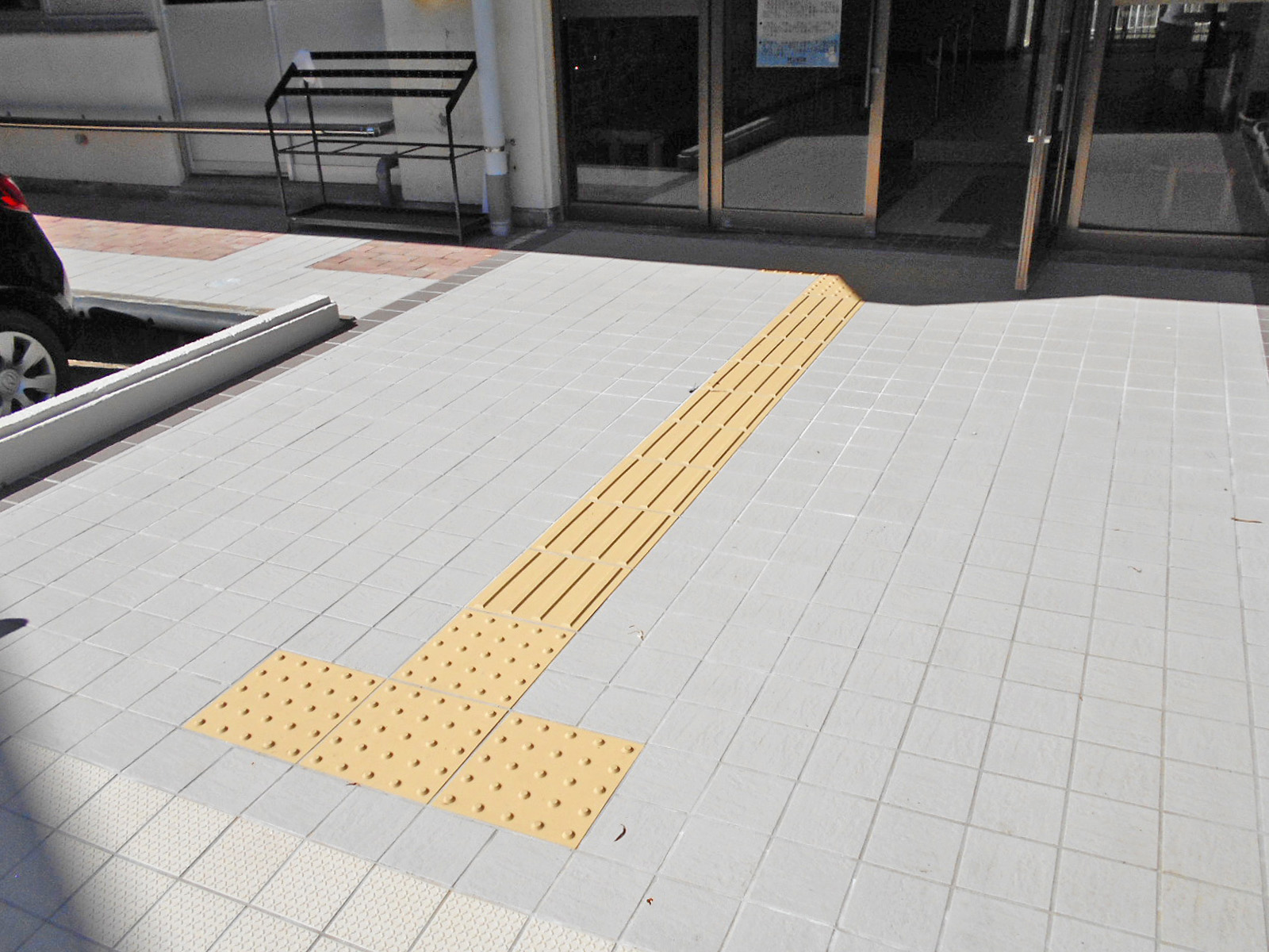 歩道から出入口までに視覚障害者誘導用ブロックがある