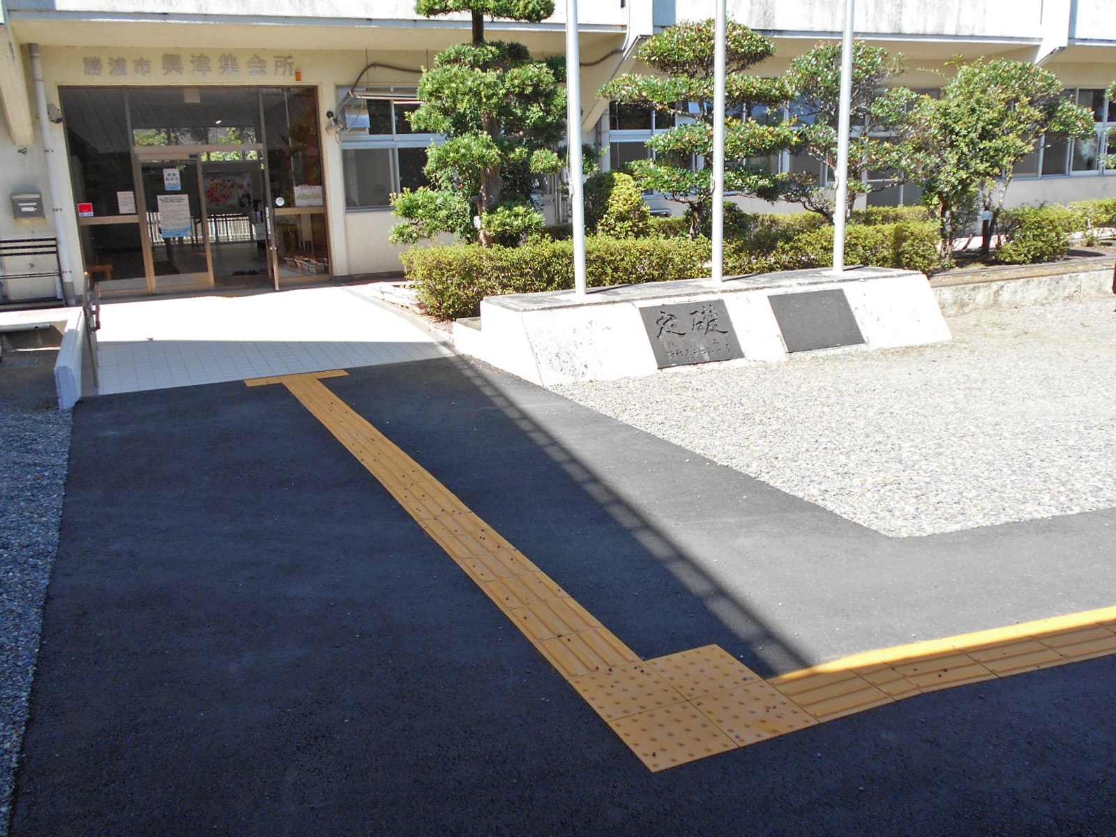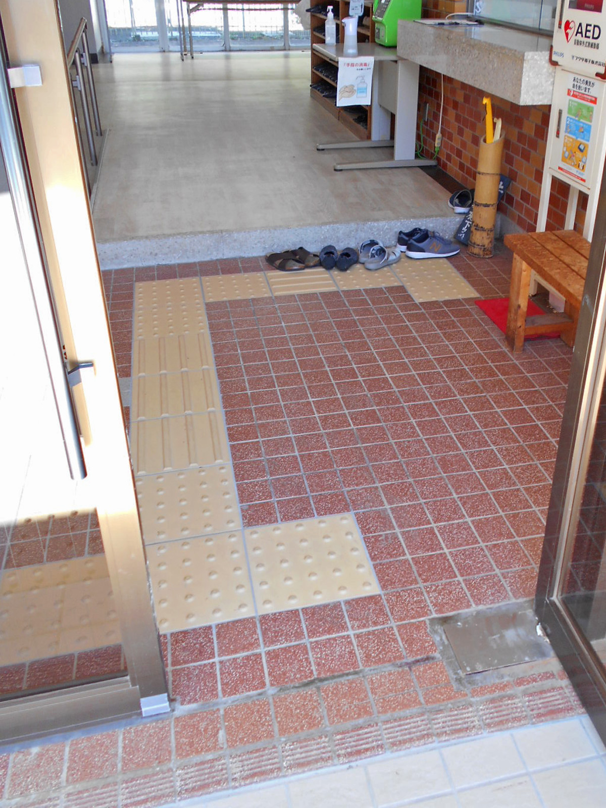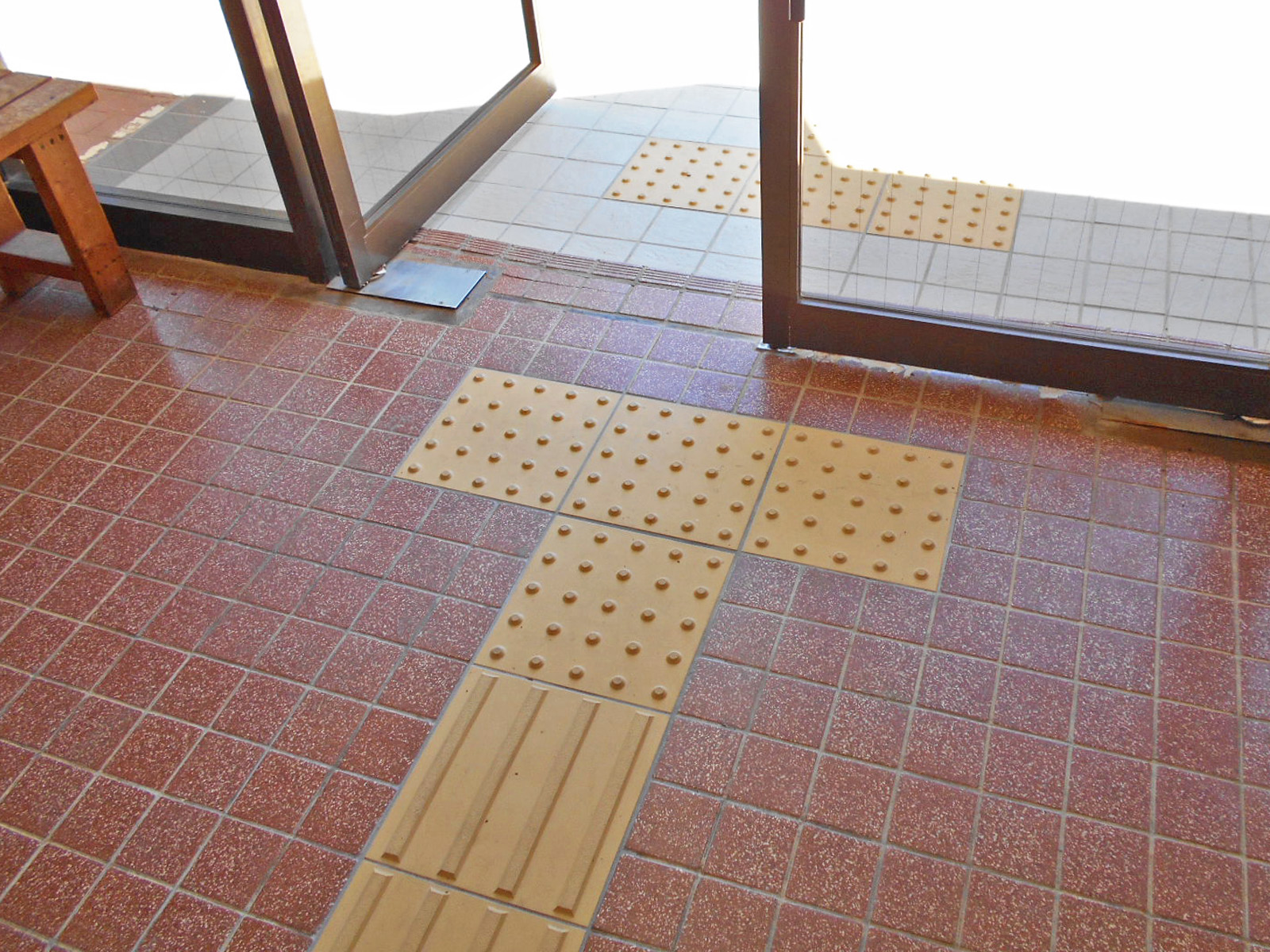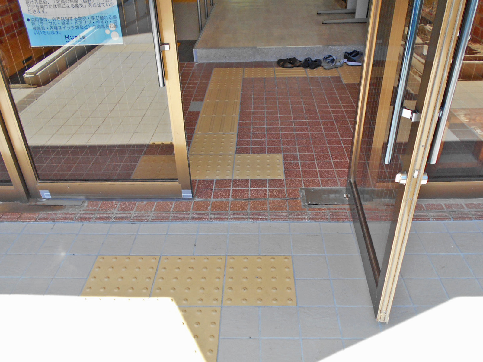 歩道から出入口までに視覚障害者誘導用ブロックがある