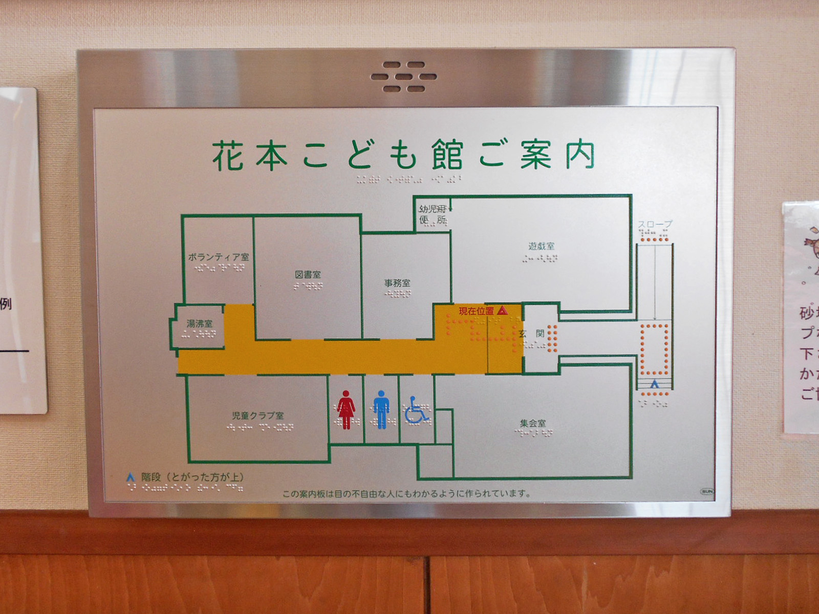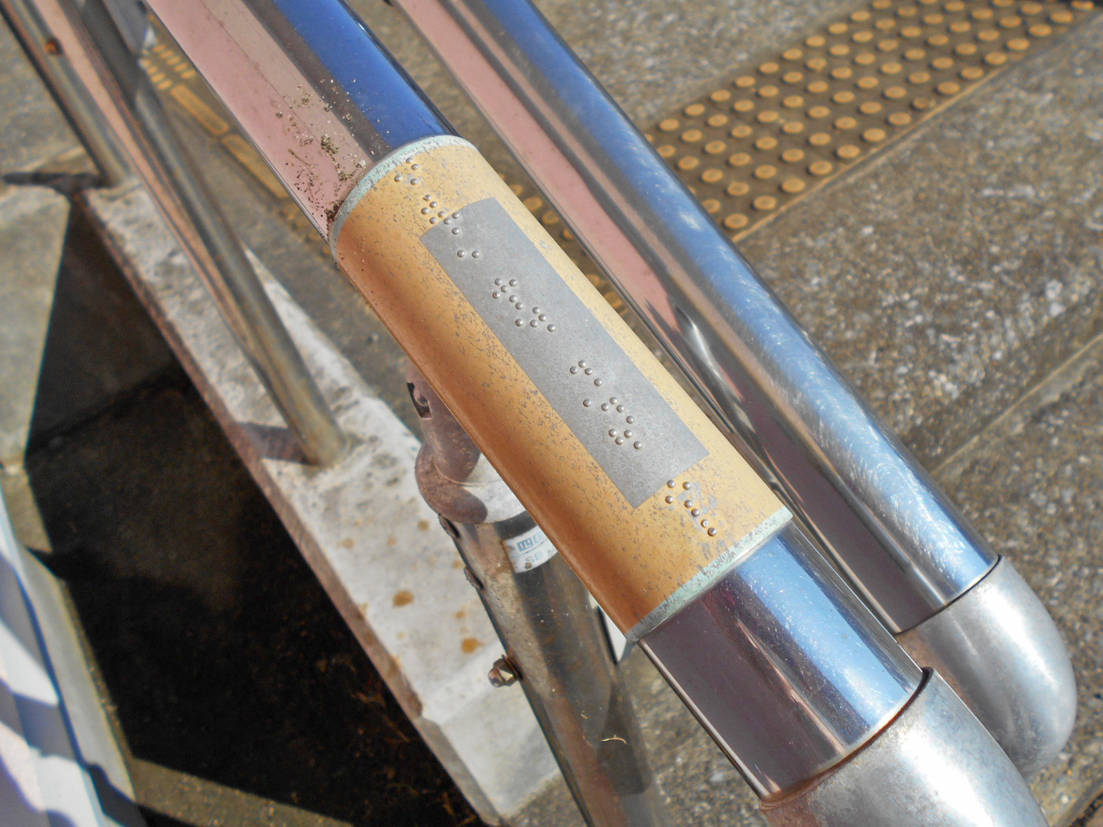 視覚障害者誘導用ブロックがある点字による案内表示がある