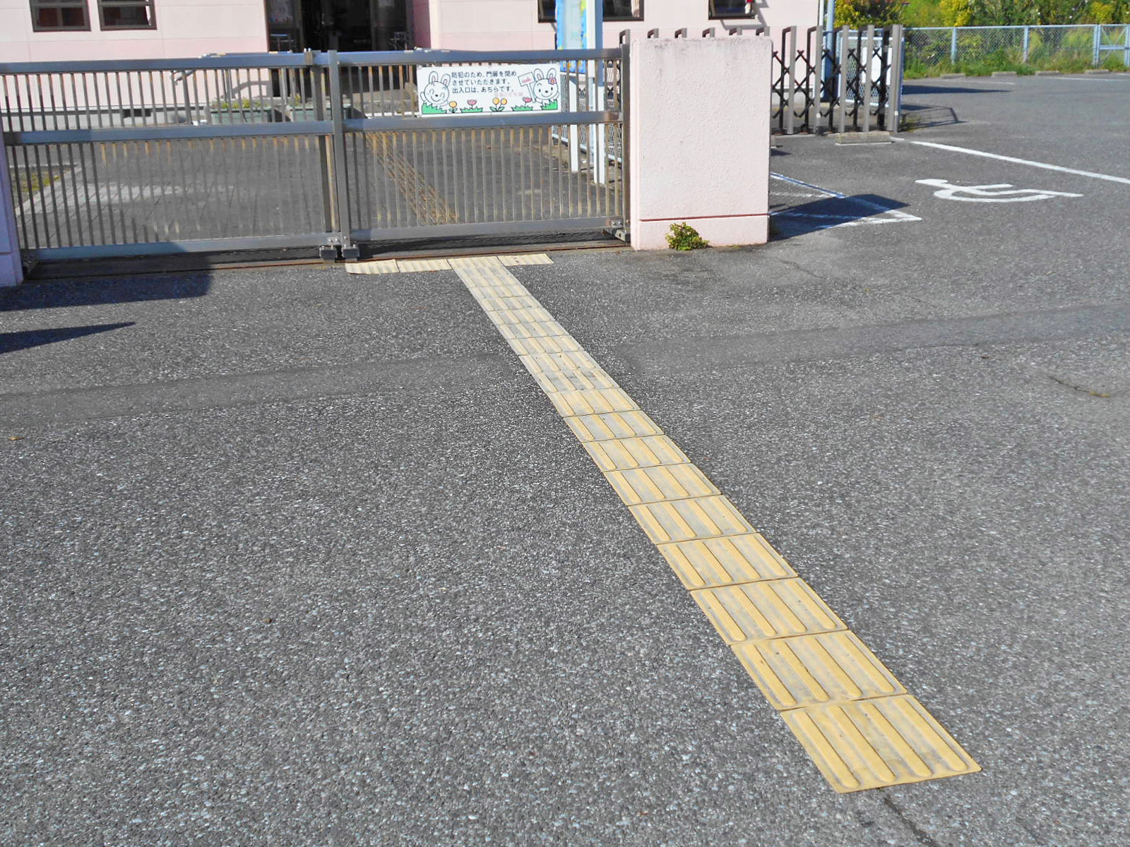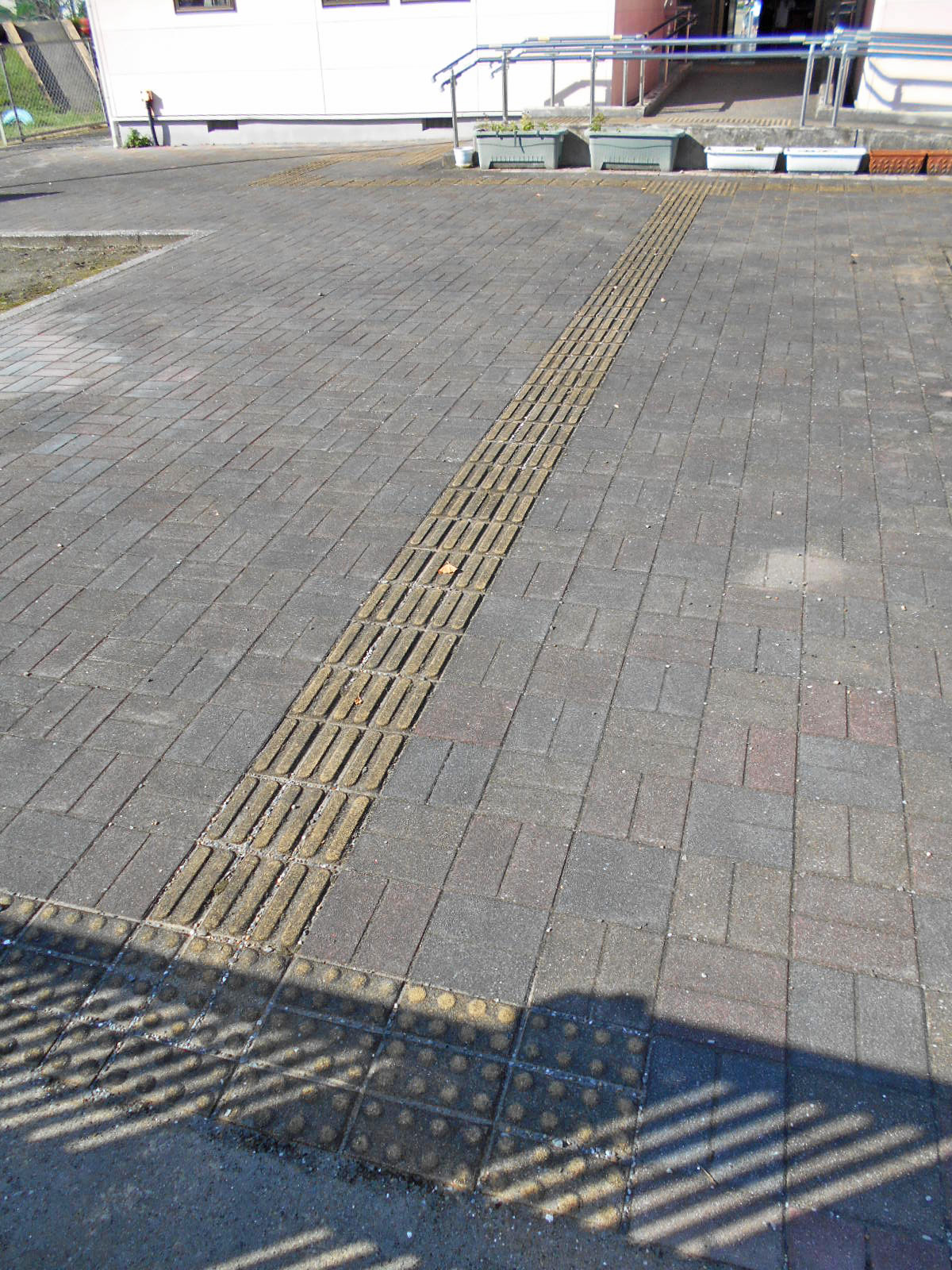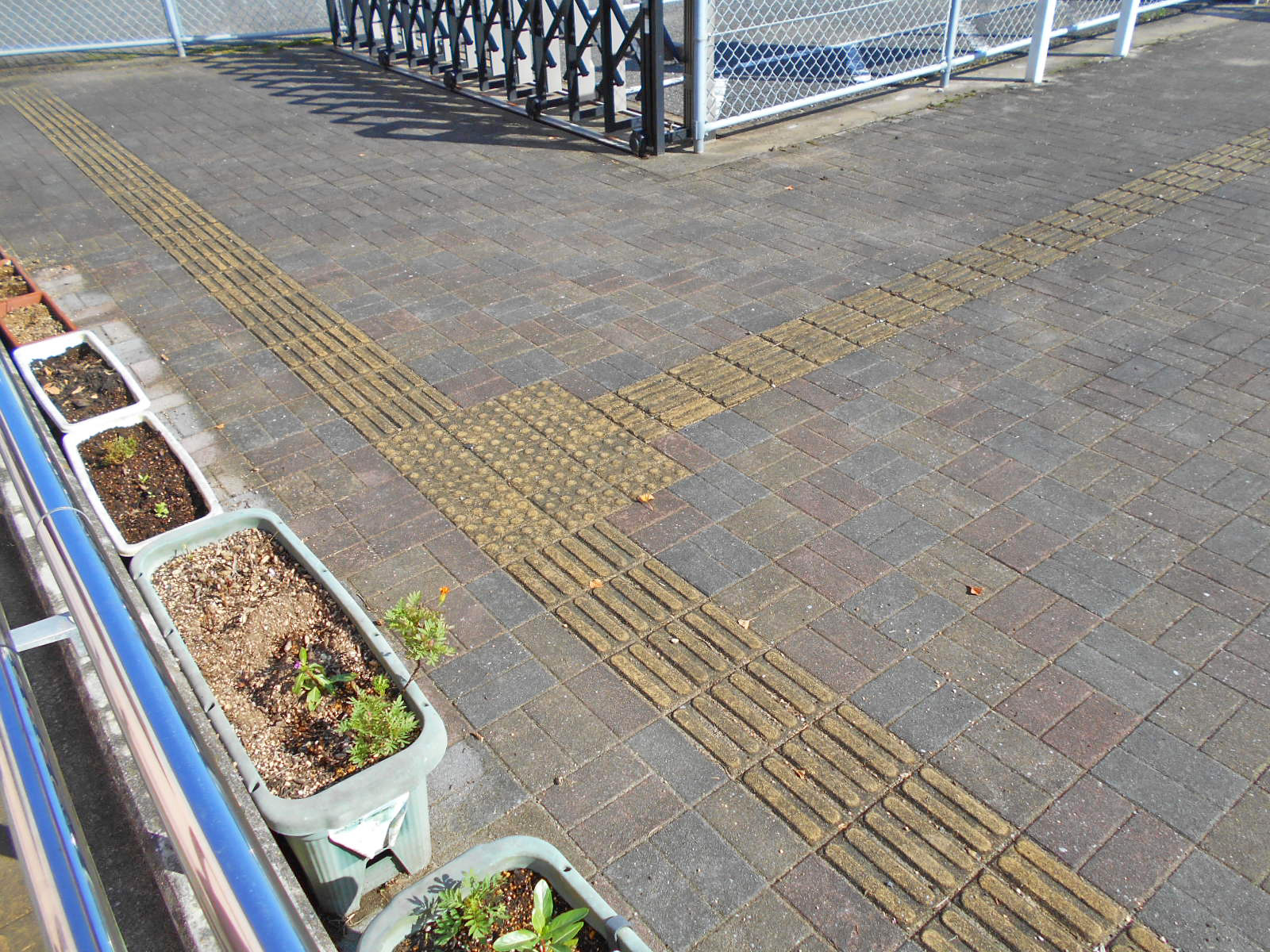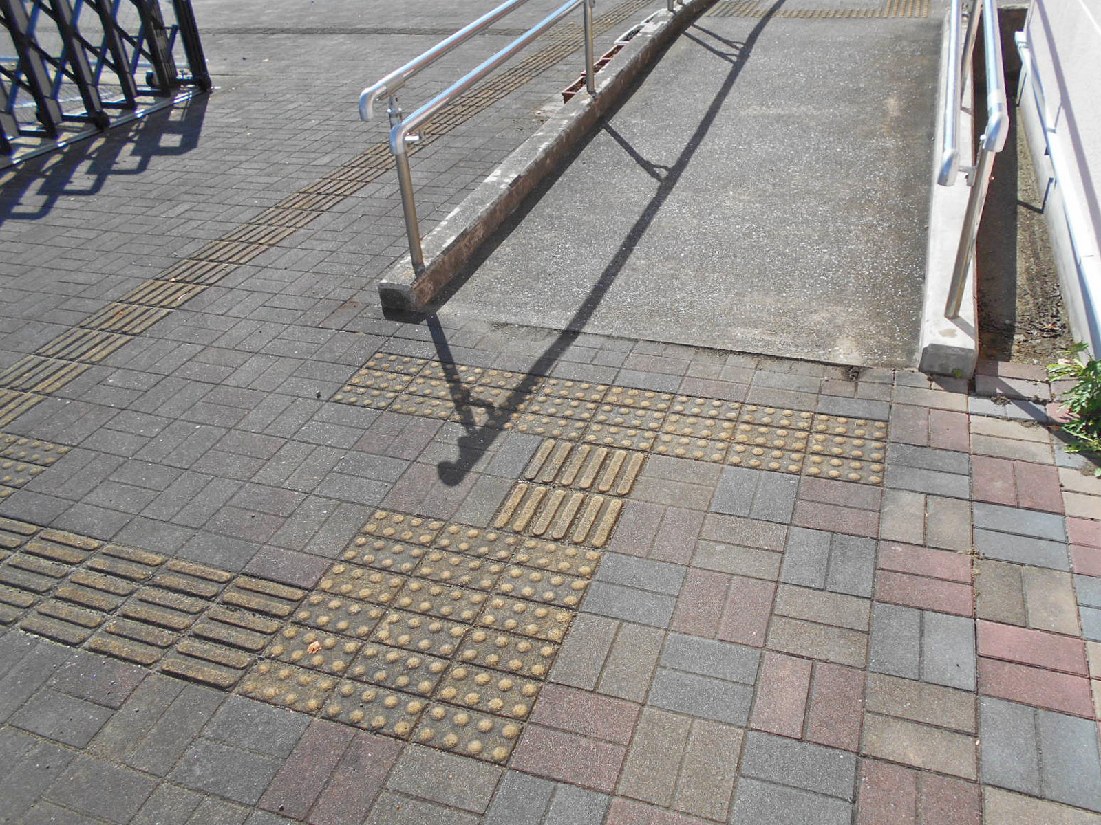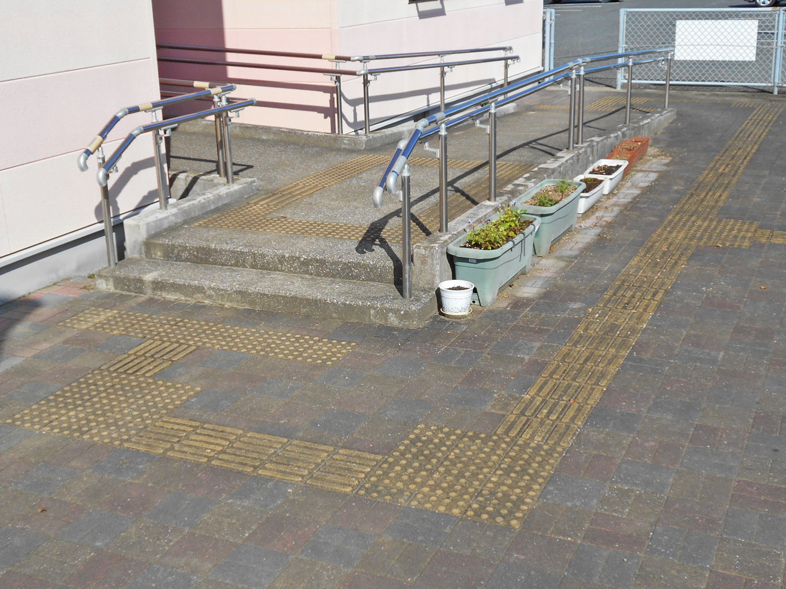 歩道から出入口までに視覚障害者誘導用ブロックがある