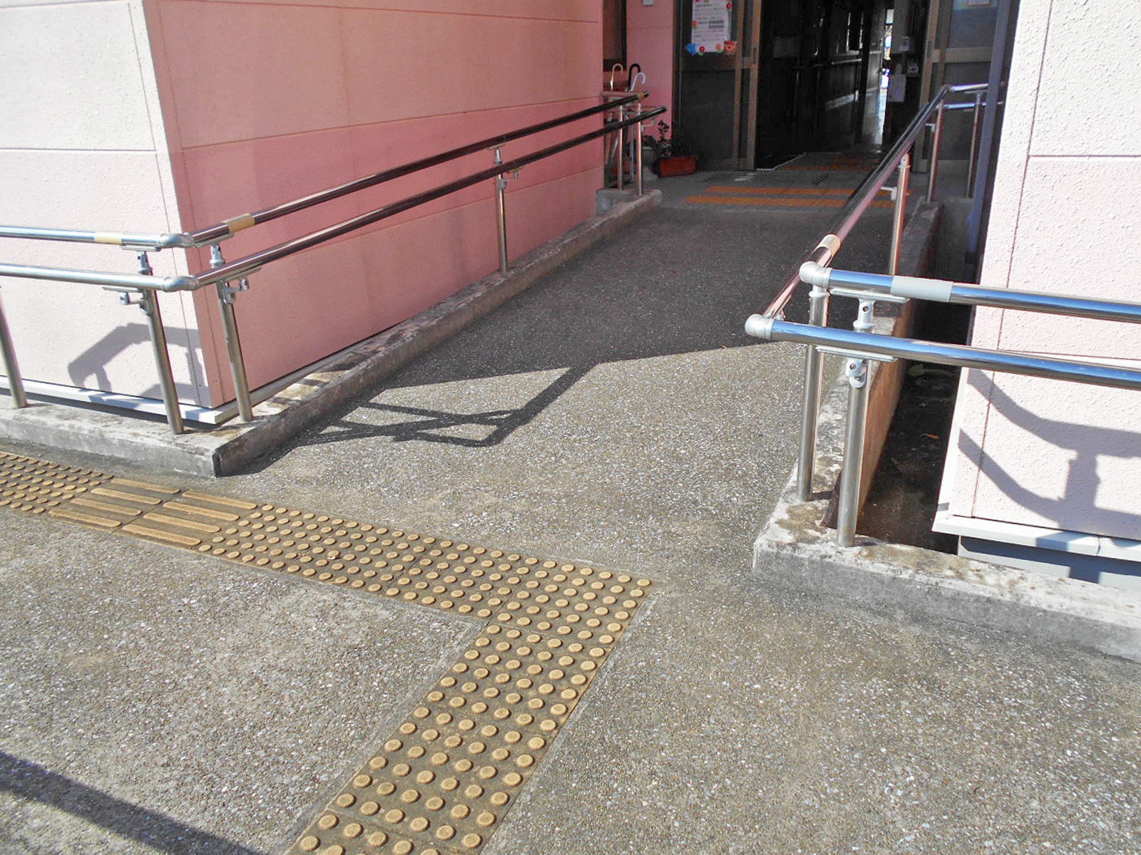 歩道から出入口まで段差がない駐車場から出入口まで段差がない歩道から出入口までに視覚障害者誘導用ブロックがある