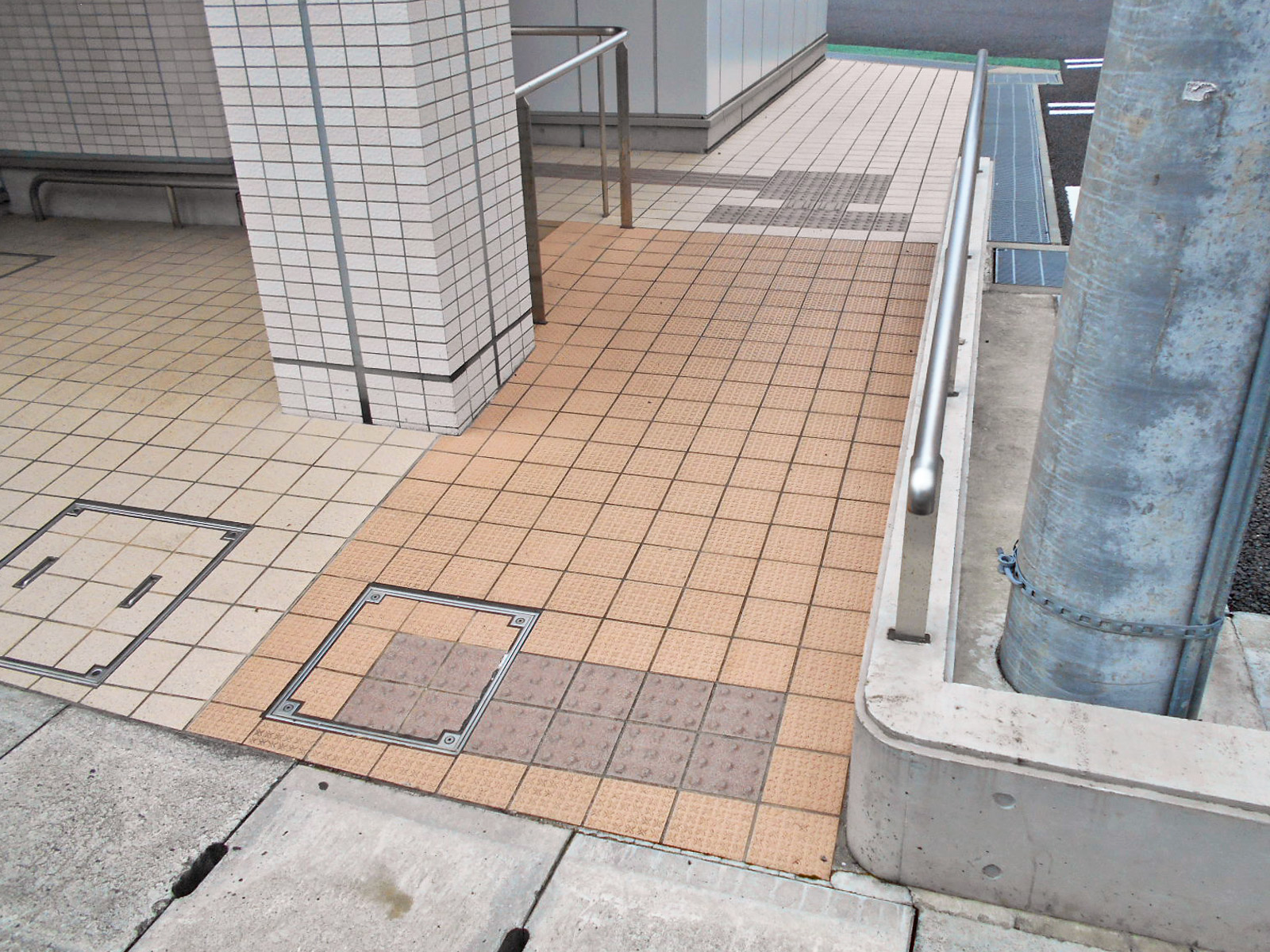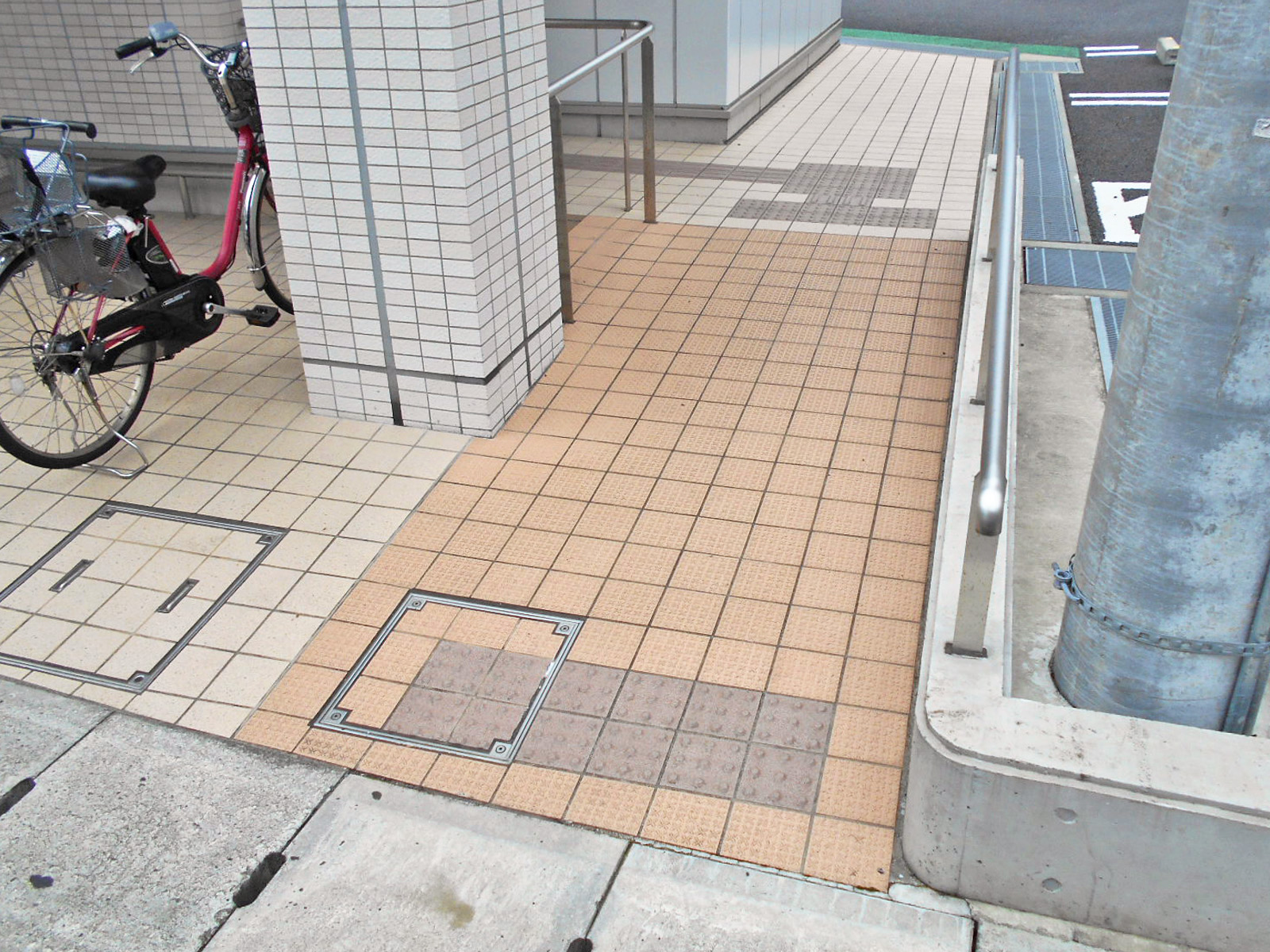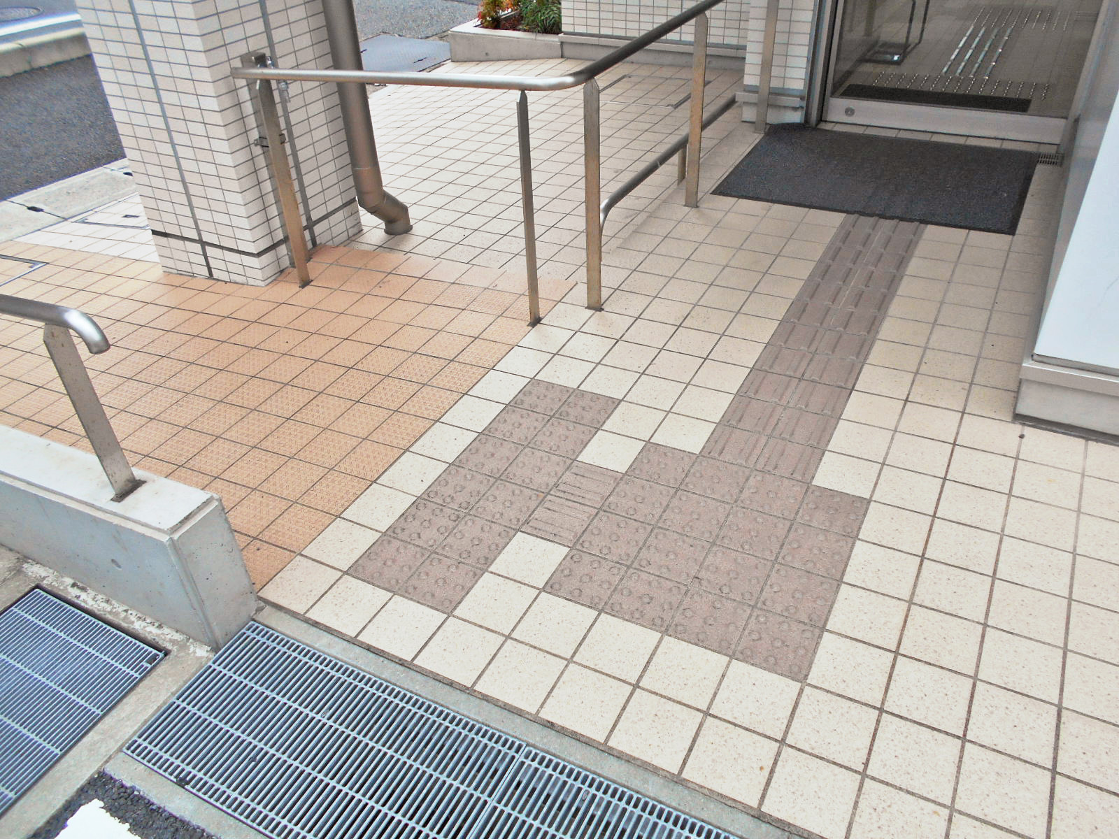 歩道から出入口までに視覚障害者誘導用ブロックがある