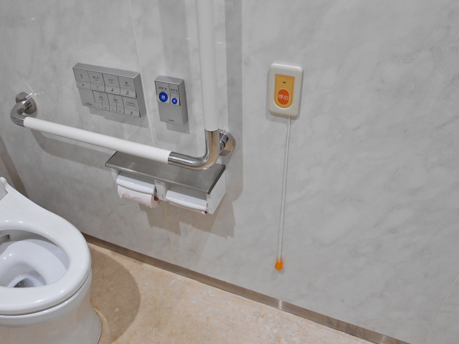 非常ベルが便座から手が届く範囲にある