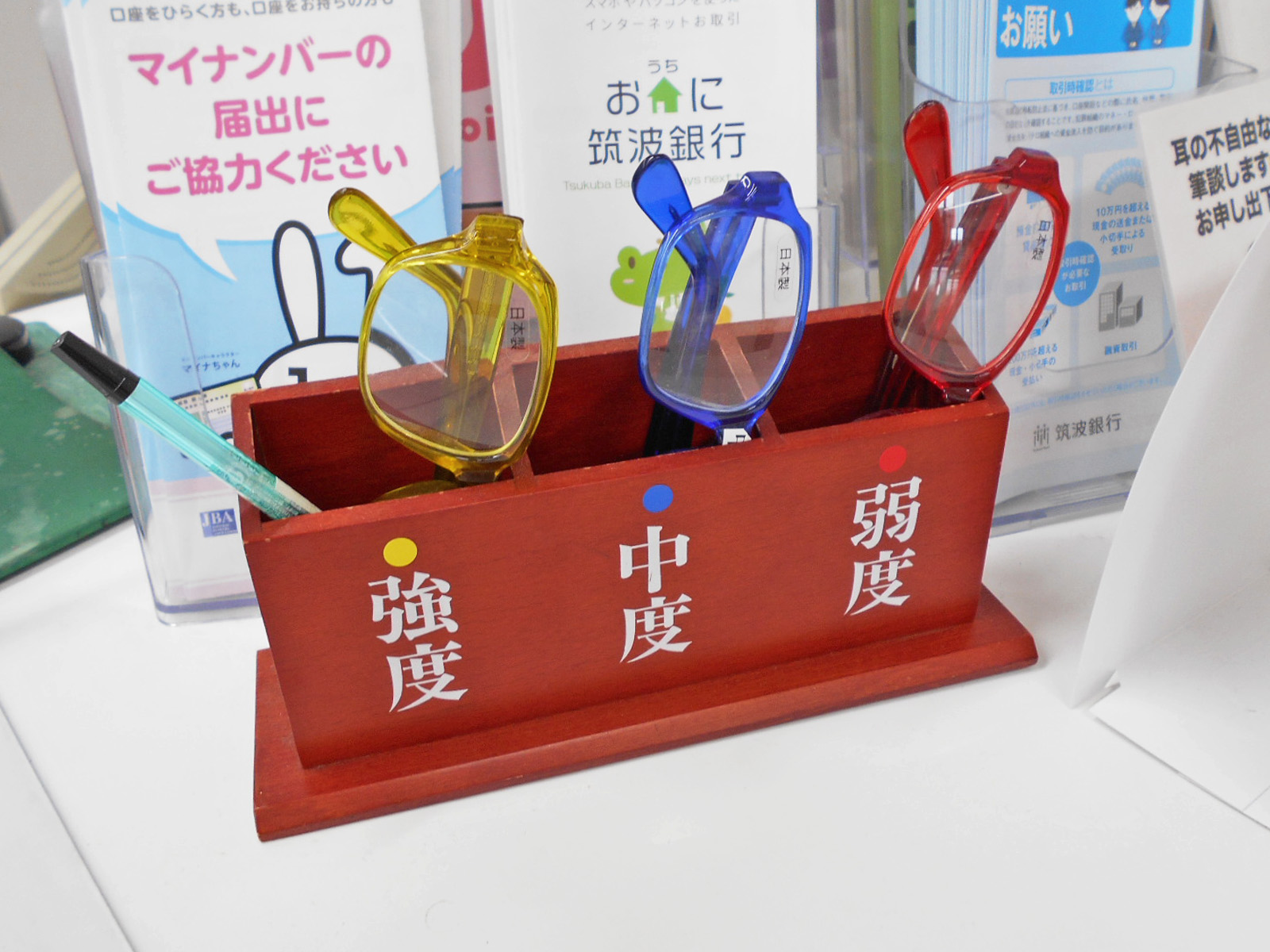 常備車いすがある休憩用いすがある老眼鏡がある筆談具がある