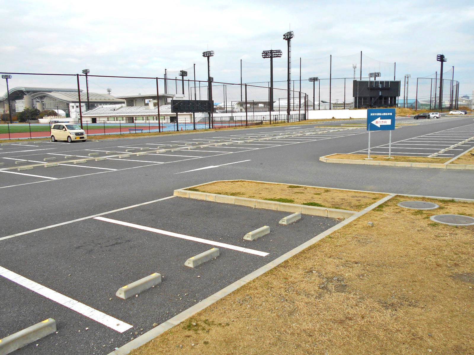 駐車場、敷地内通路は運動公園と共有