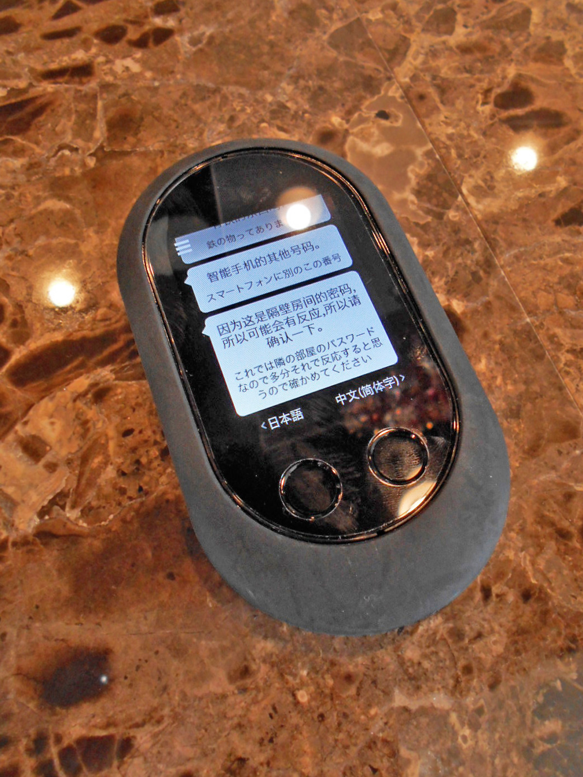 外国語対応は翻訳機を使用します