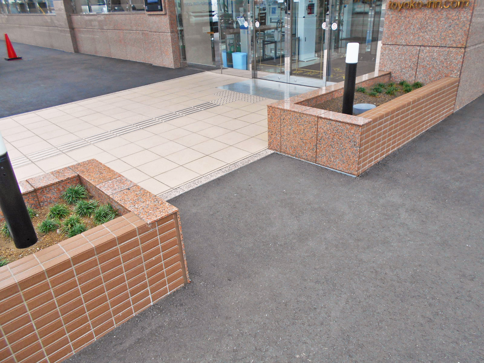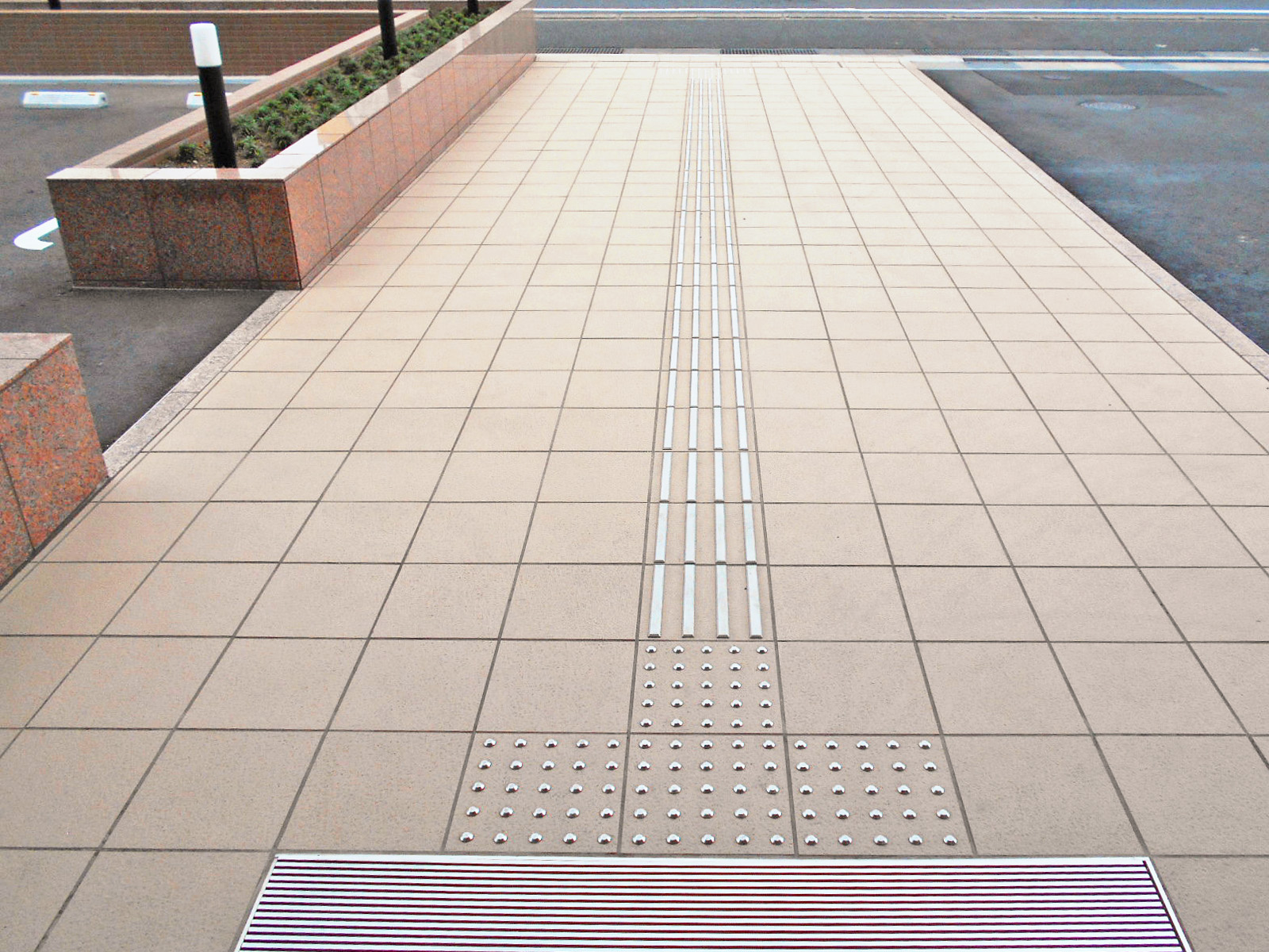 歩道から出入口までに視覚障害者誘導用ブロックがある