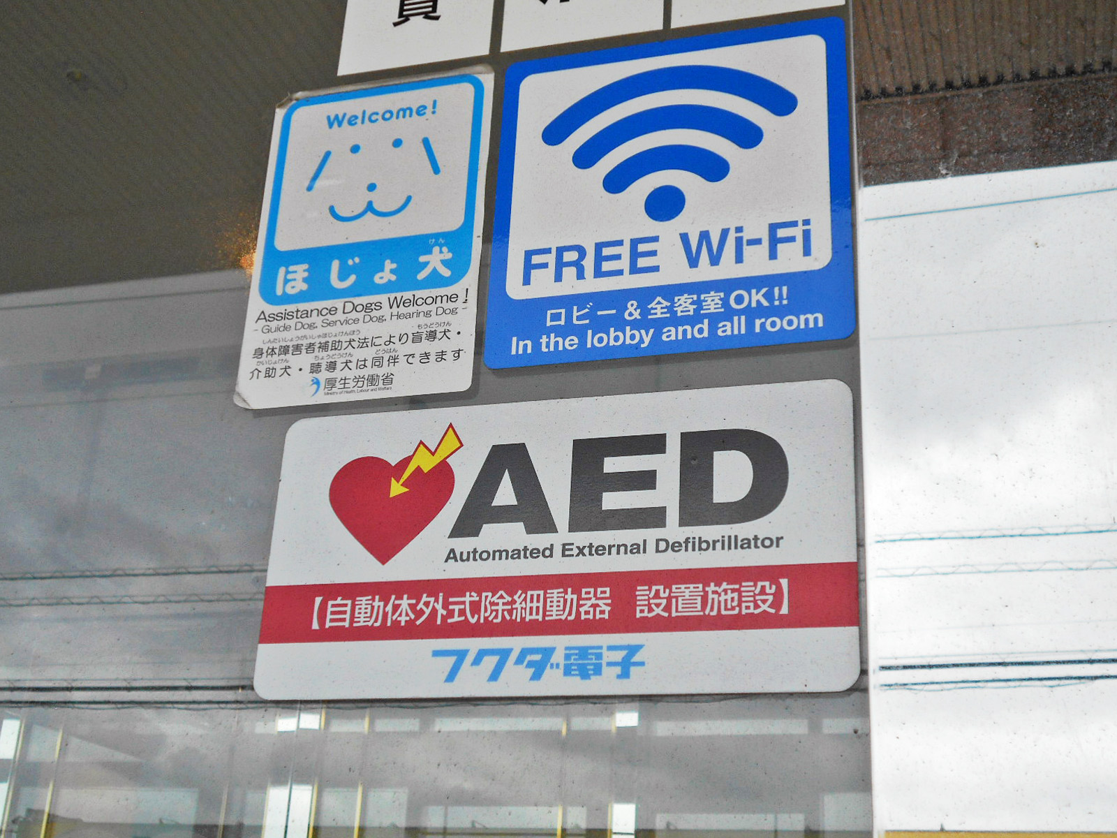 常駐の外国語対応者がいるAEDがある休憩用いすがある点字メニューがある老眼鏡がある筆談具がある