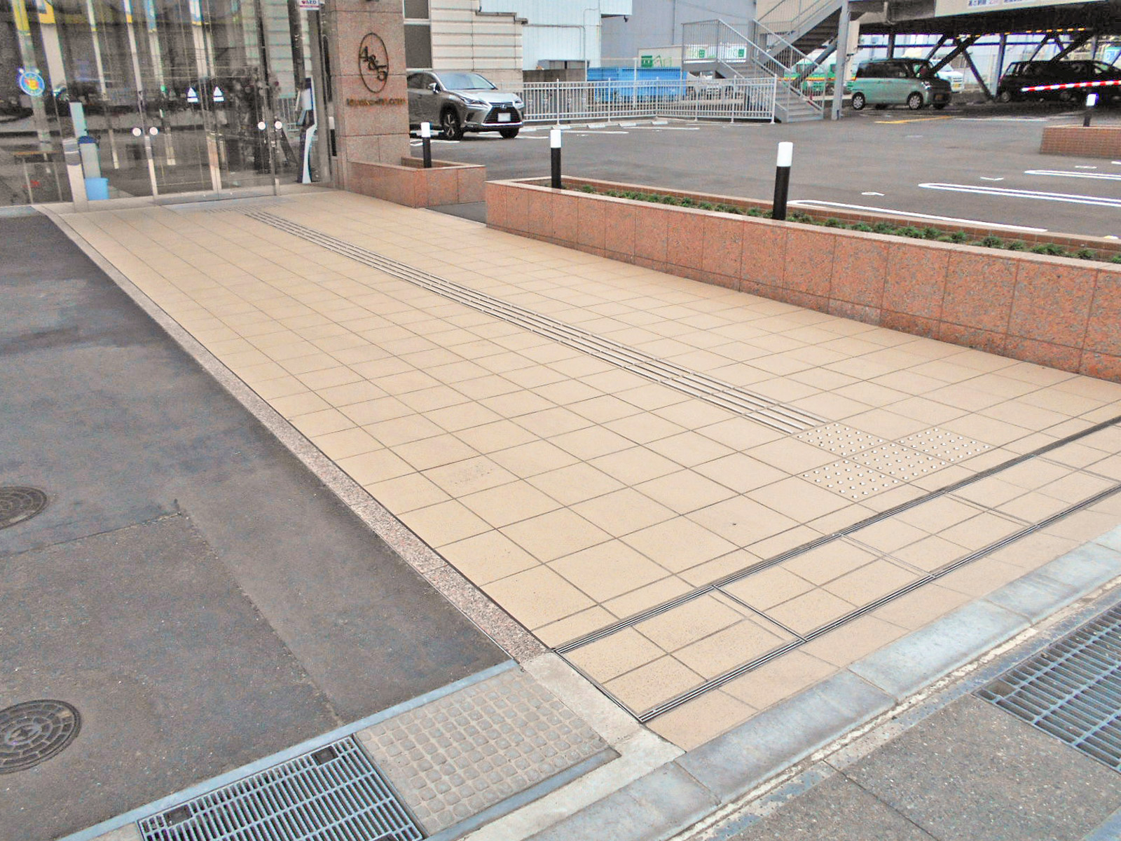 歩道から出入口まで段差がない駐車場から出入口まで段差がない歩道から出入口までに視覚障害者誘導用ブロックがある