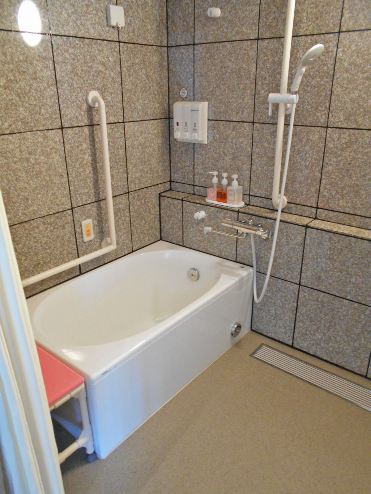 ハートフルルームの浴室です 浴室用チェア、浴槽用チェア・滑り止めマットあり