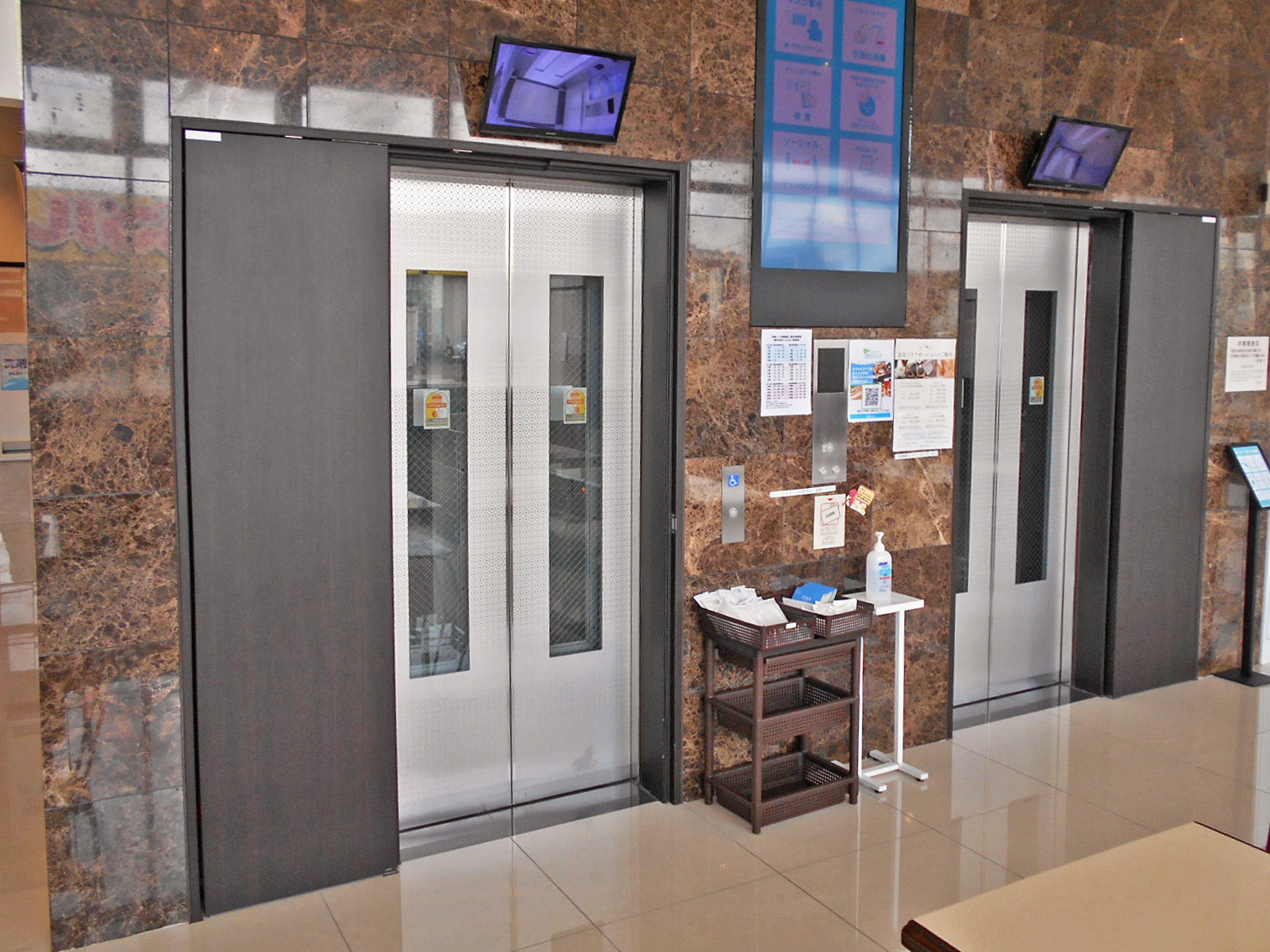 エレベーターがあるエレベーターに音声案内があるエレベーターに点字表示がある障害者対応エレベーターがある障害者対応エレベーターに車いす用表示ボタンがある障害者対応エレベーターに点字表示ボタンがある障害者対応エレベーターに手すりがある障害者対応エレベーターに鏡がある