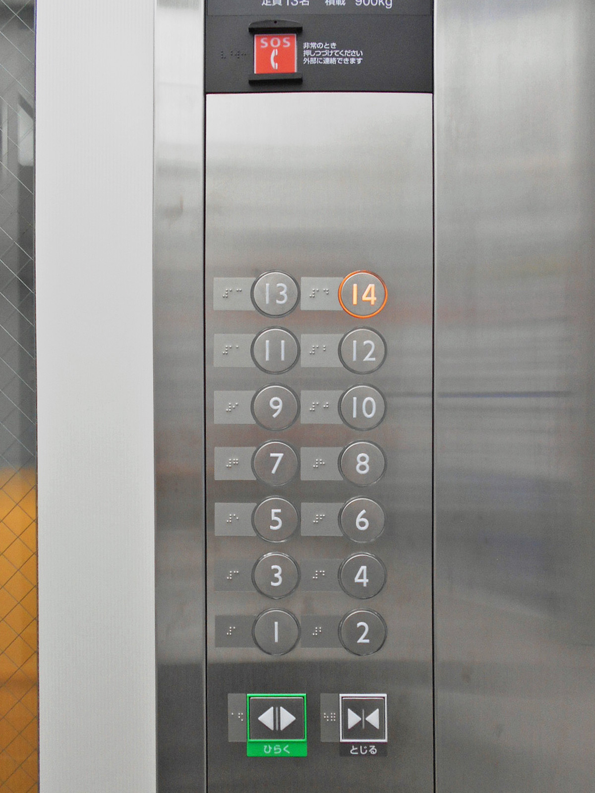 障害者対応エレベーターに点字表示ボタンがある