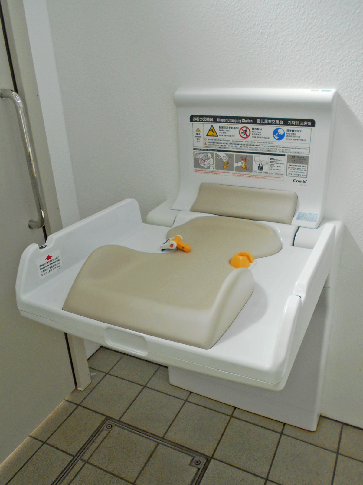 - ベビーベッドはおむつ交換台で対応、多目的トイレと一般女性トイレにベビーチェアあり