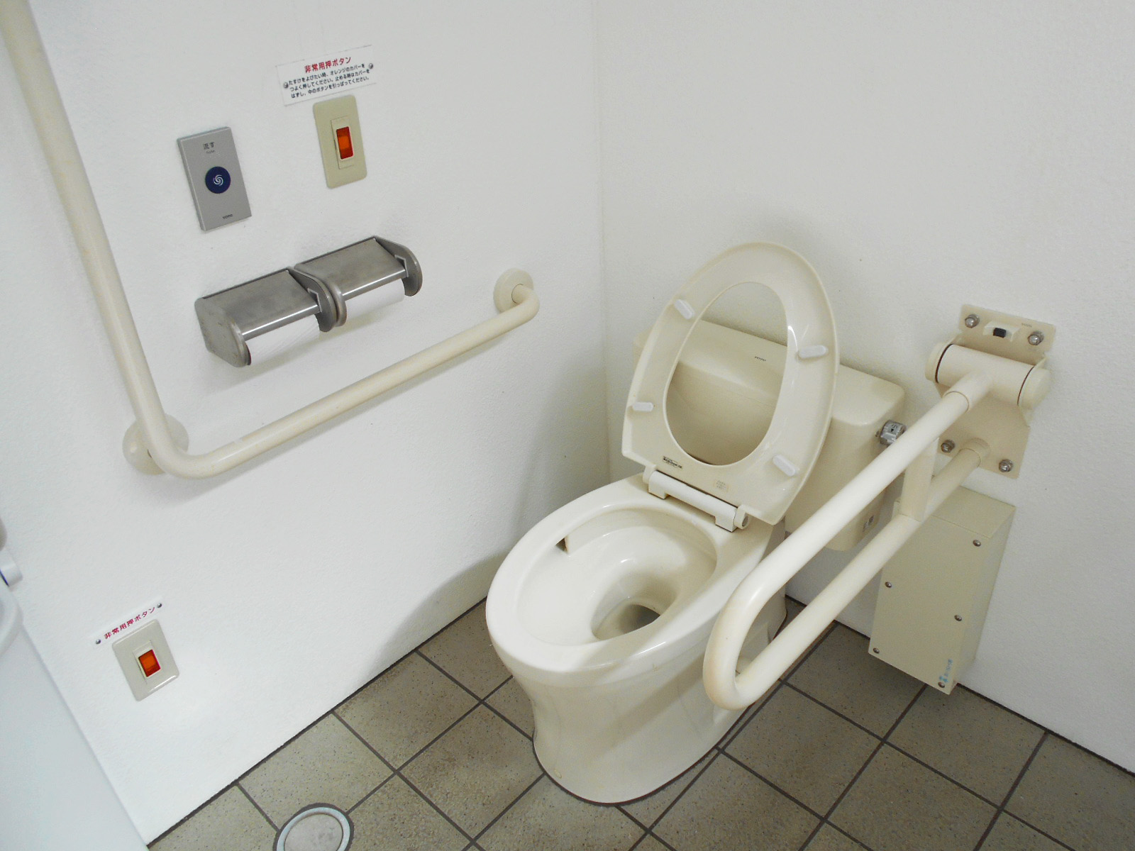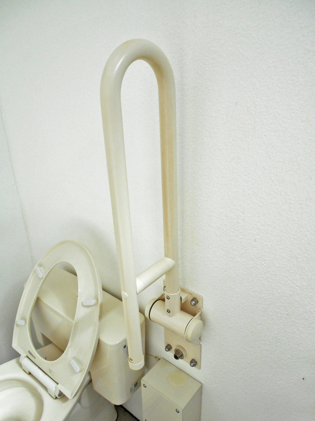 洋式便器(両手すり付き)があるバリアフリートイレ