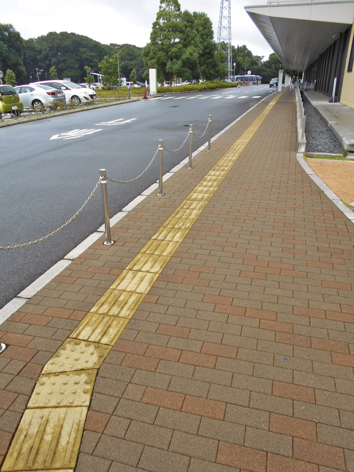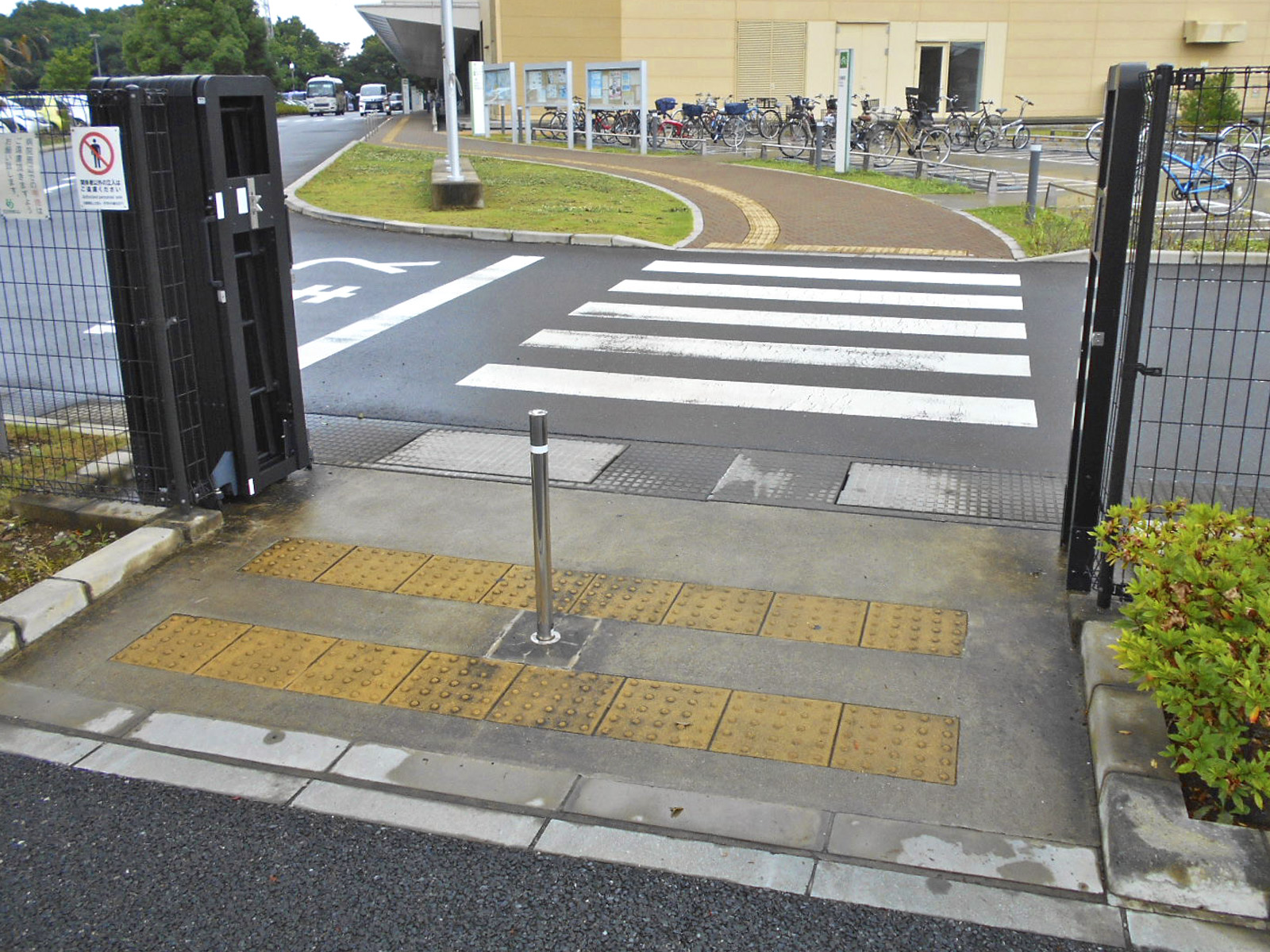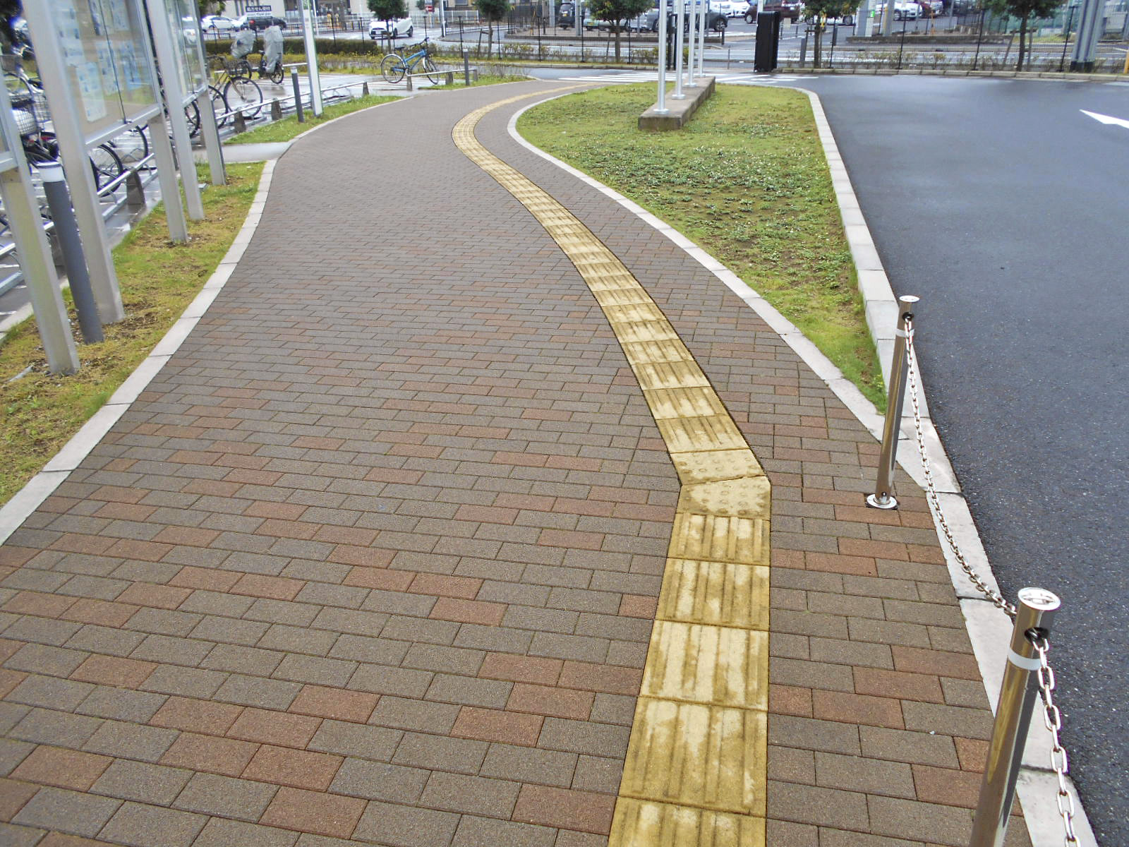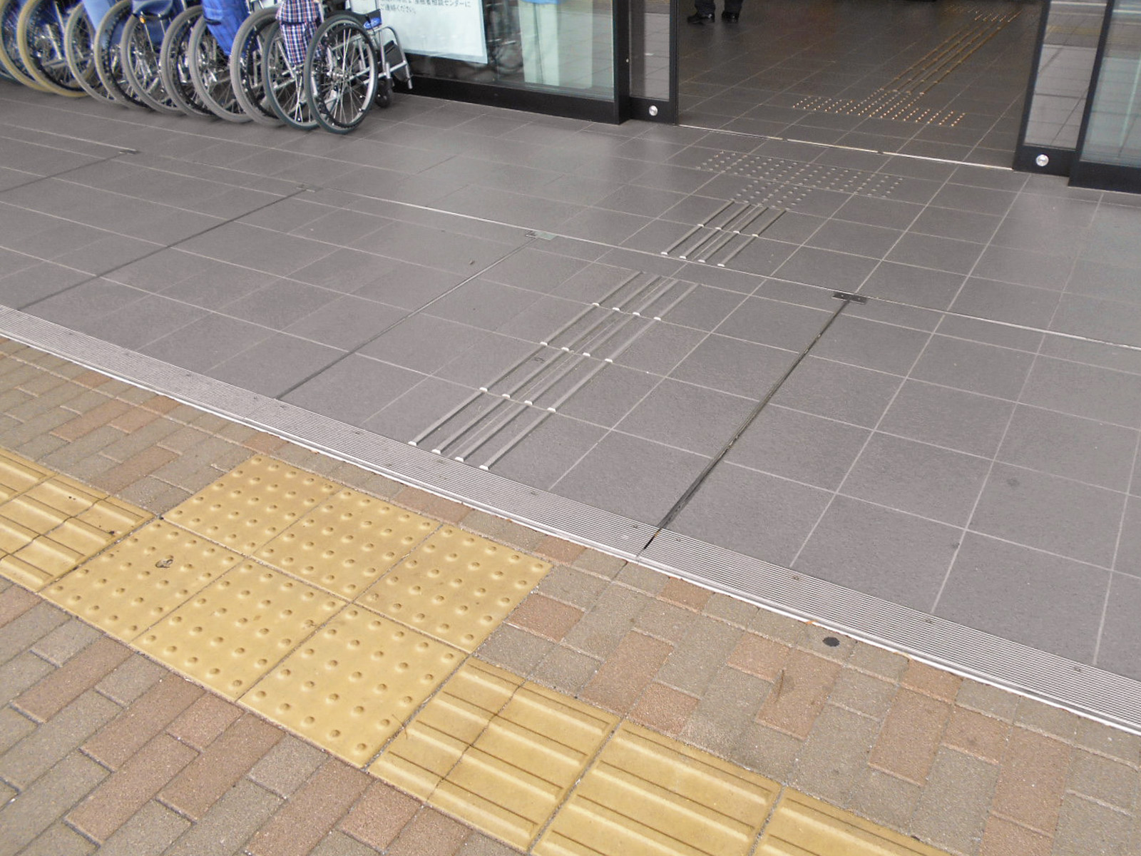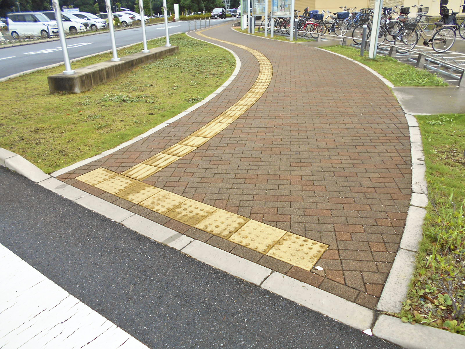 歩道から出入口までに視覚障害者誘導用ブロックがある
