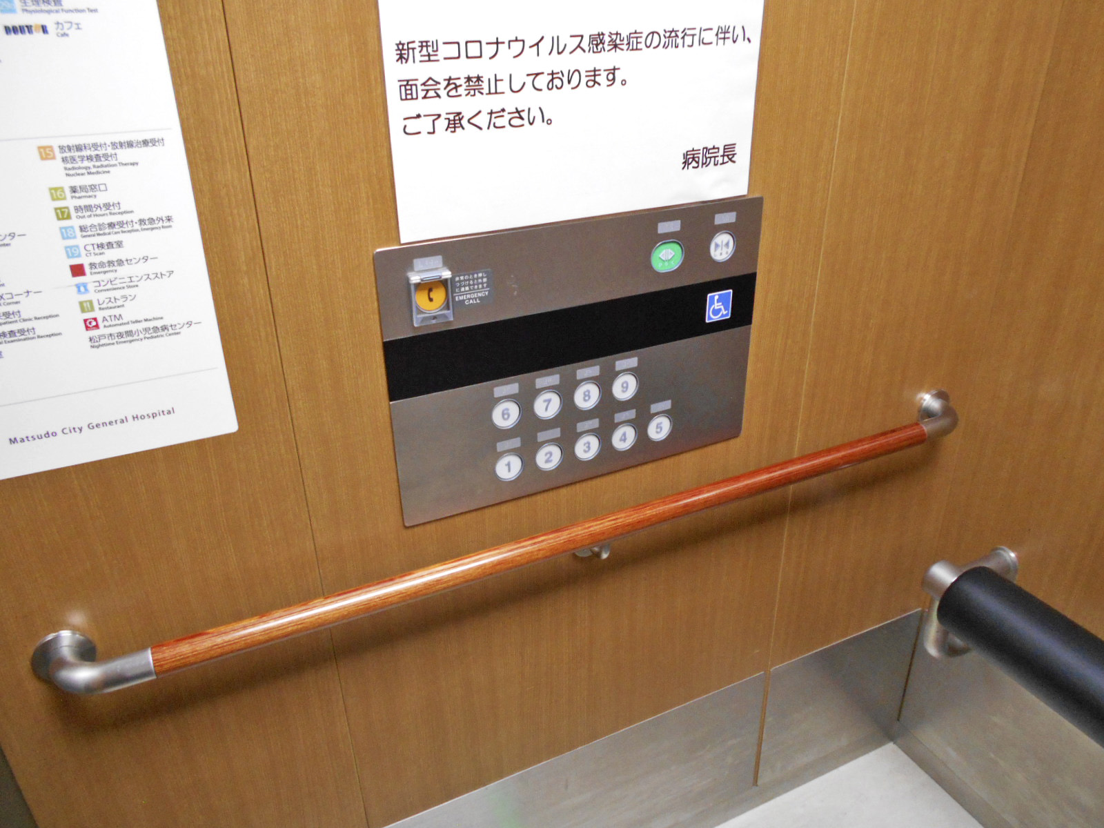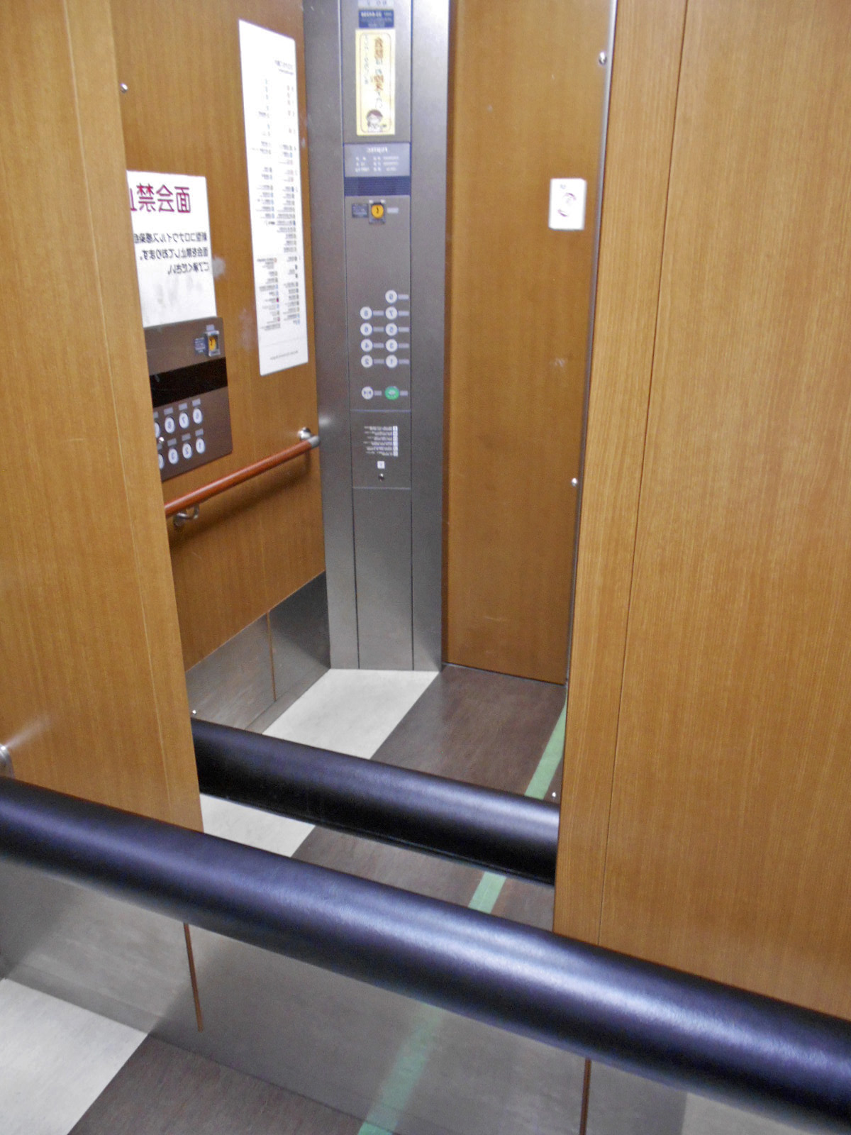 障害者対応エレベーターに手すりがある