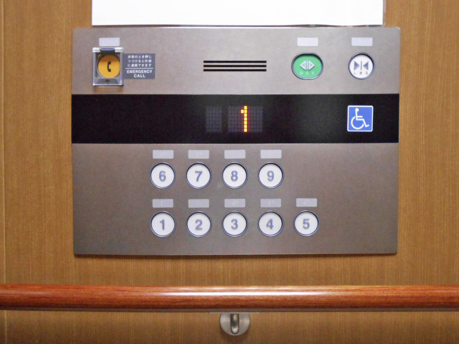 障害者対応エレベーターに点字表示ボタンがある