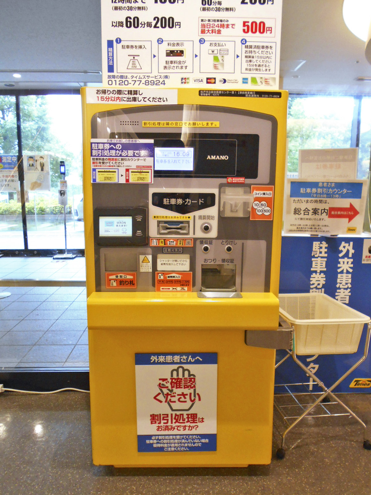- 外国語翻訳機あり、再来受付機あり、低い記載台あり、ローカウンターあり、杖ホルダーあり、駐車場事前精算機あり
