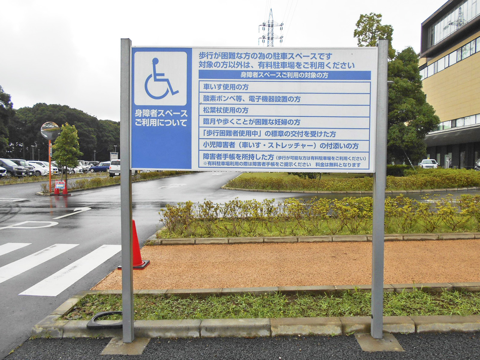 障害者等用駐車スペースの案内表示がある