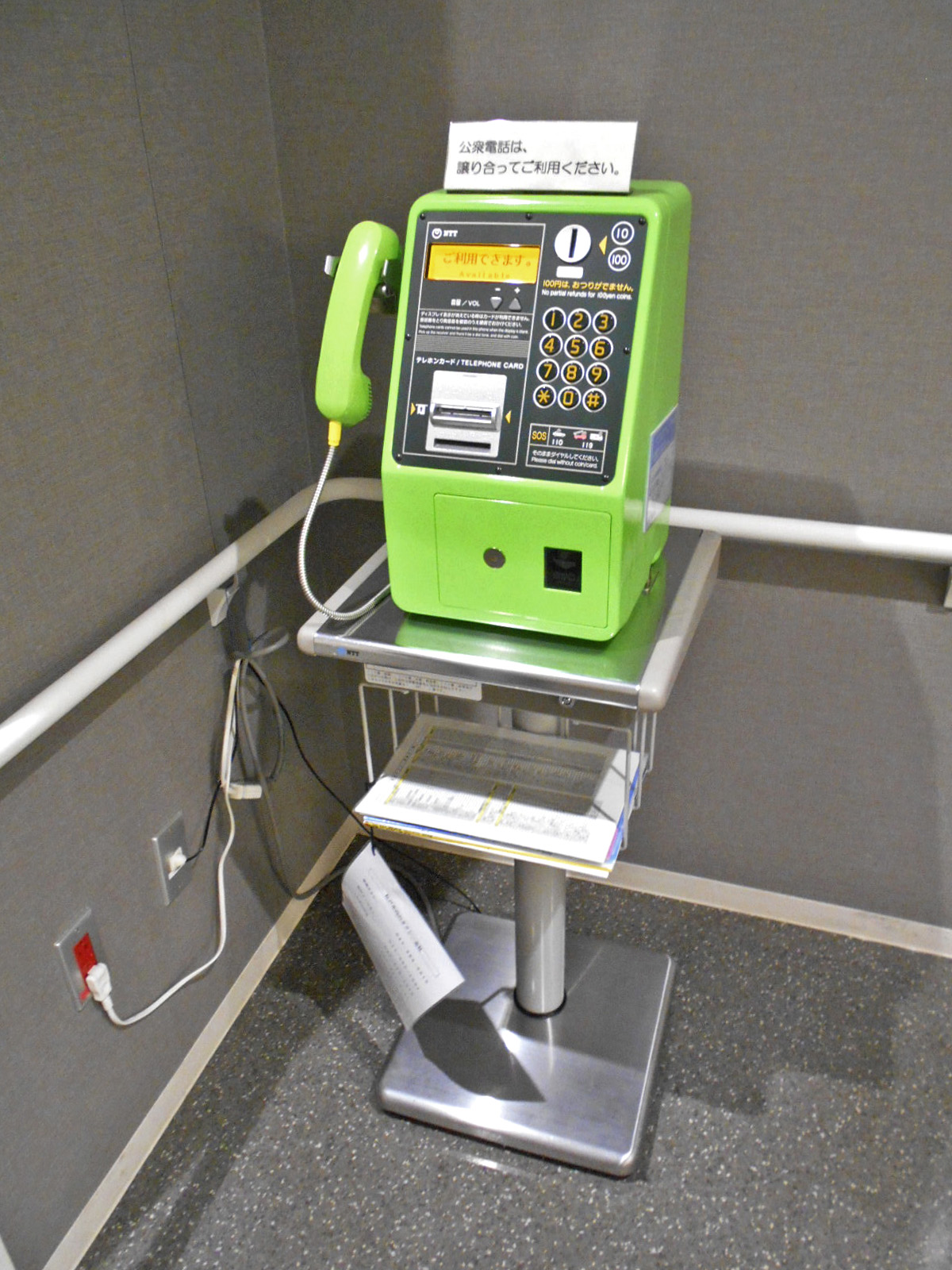 - 車いす対応公衆電話がある