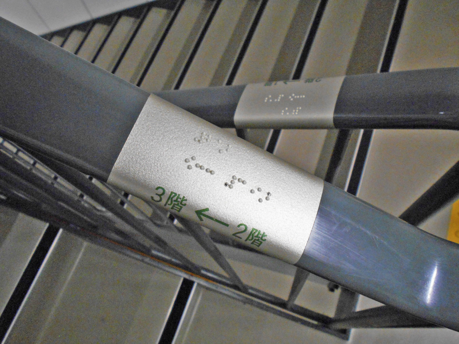 階段の手すりに点字表示がある - 障害者対応エレベーターの詳細