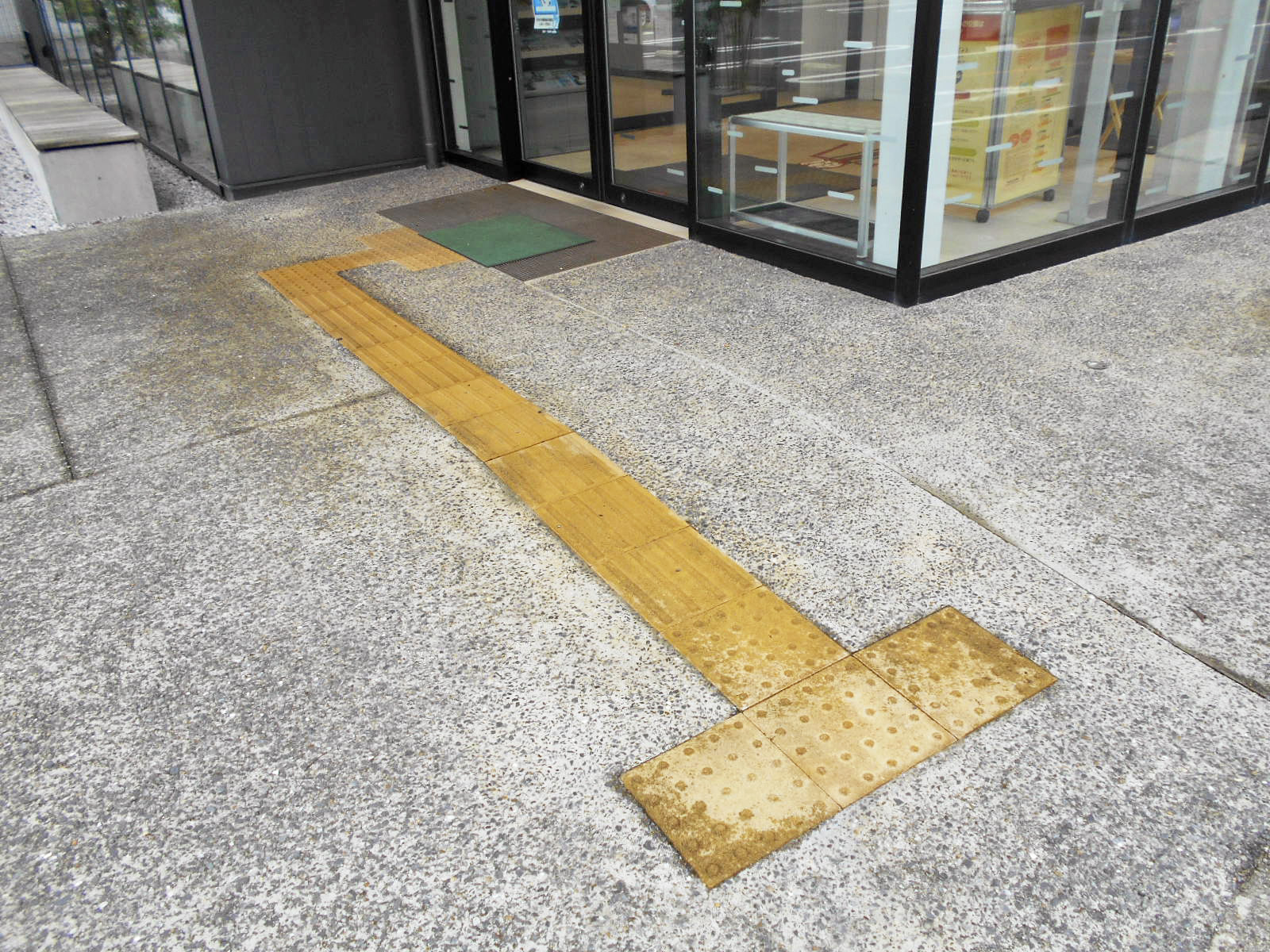 歩道から出入口までに視覚障害者誘導用ブロックがある
