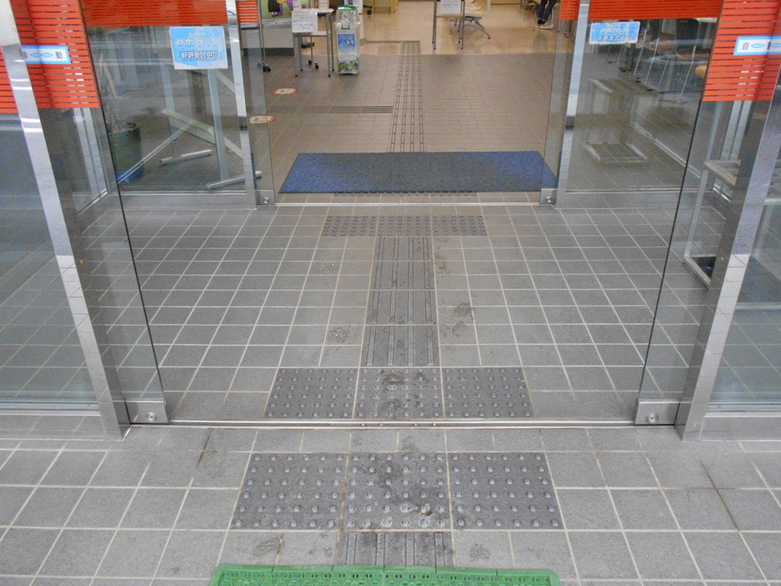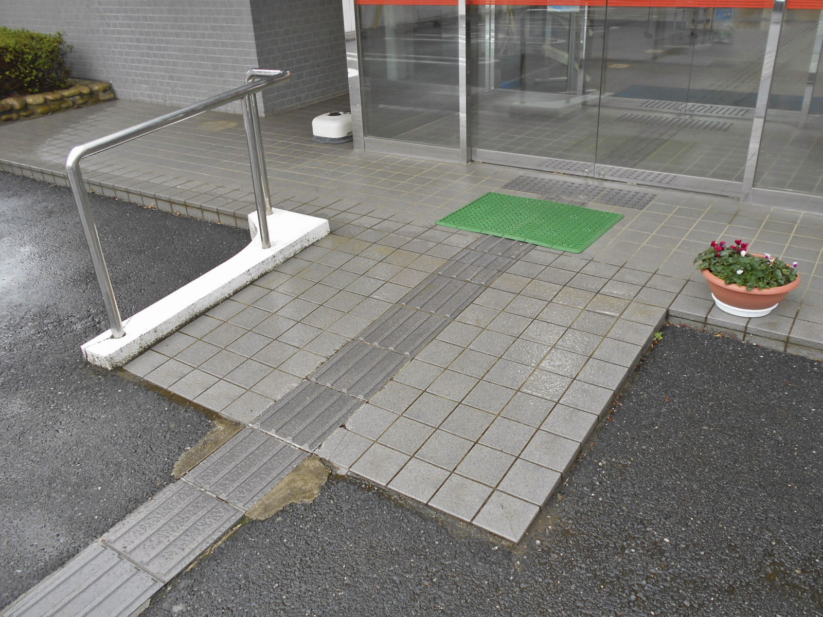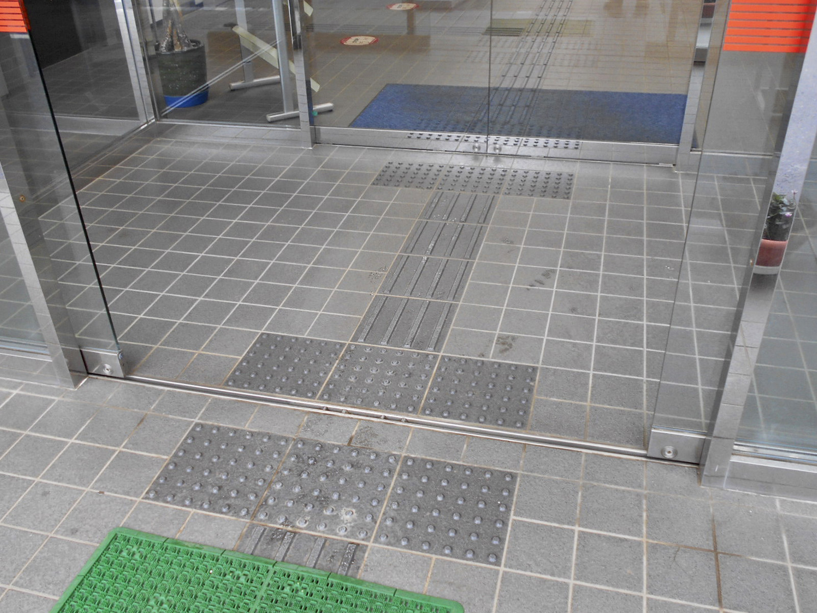 歩道から出入口までに視覚障害者誘導用ブロックがある