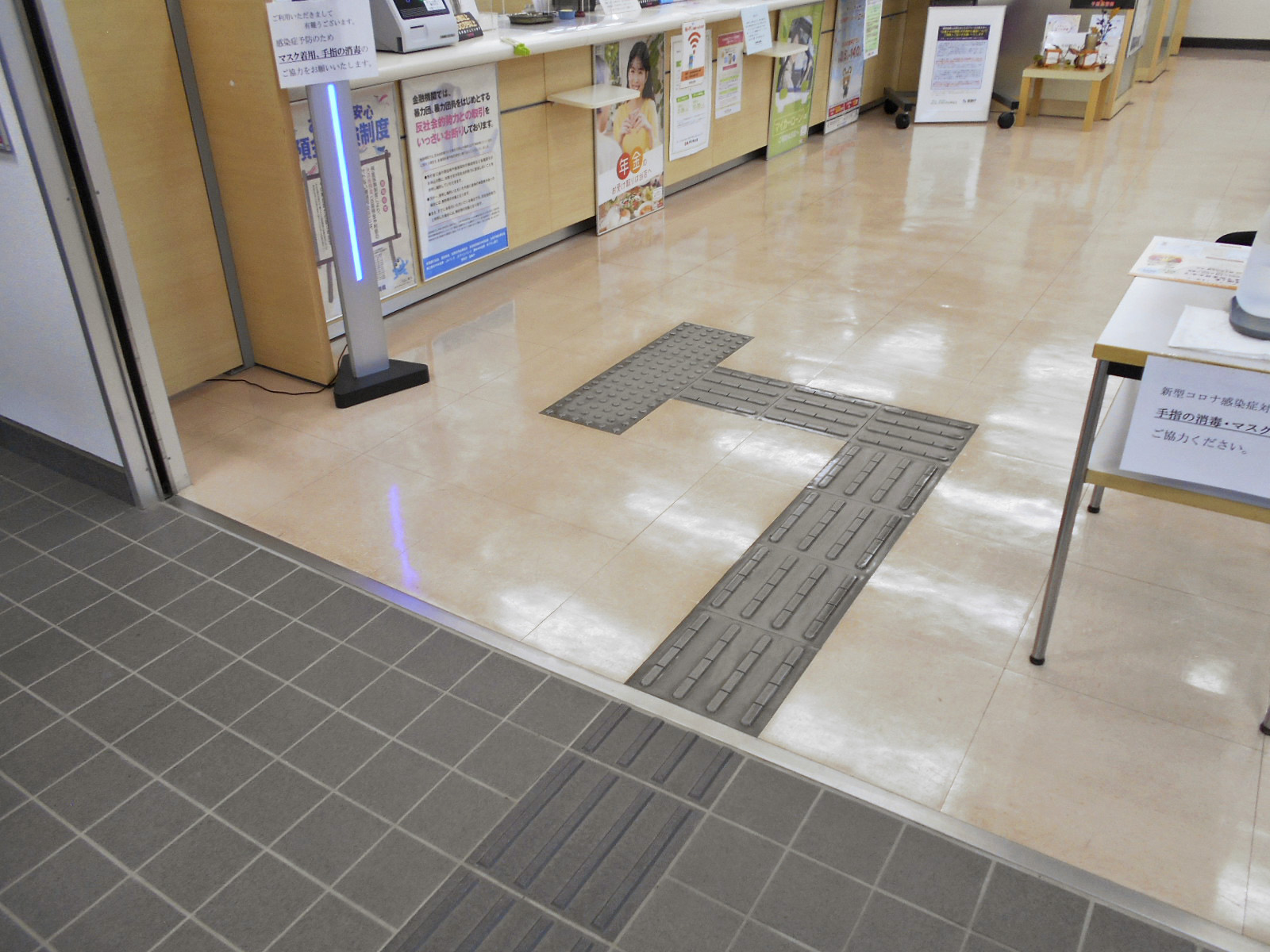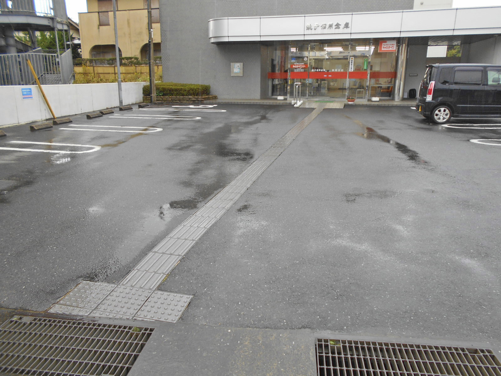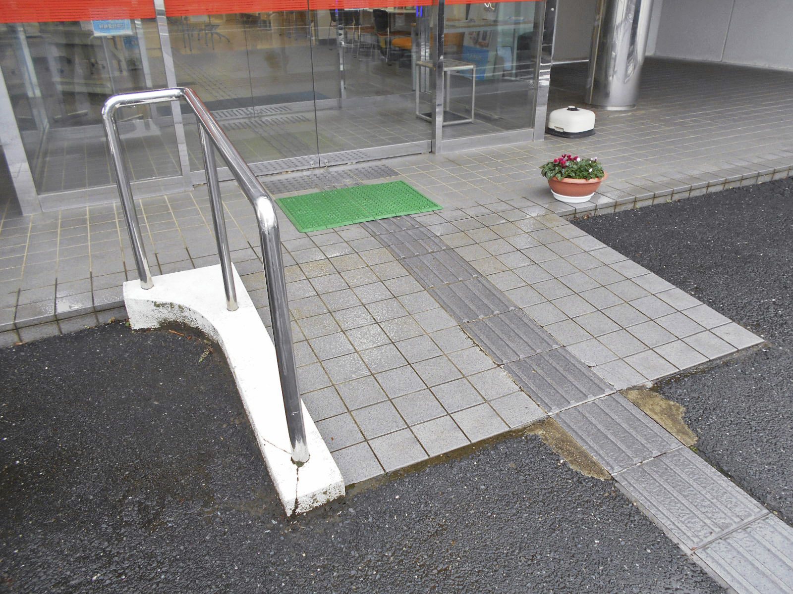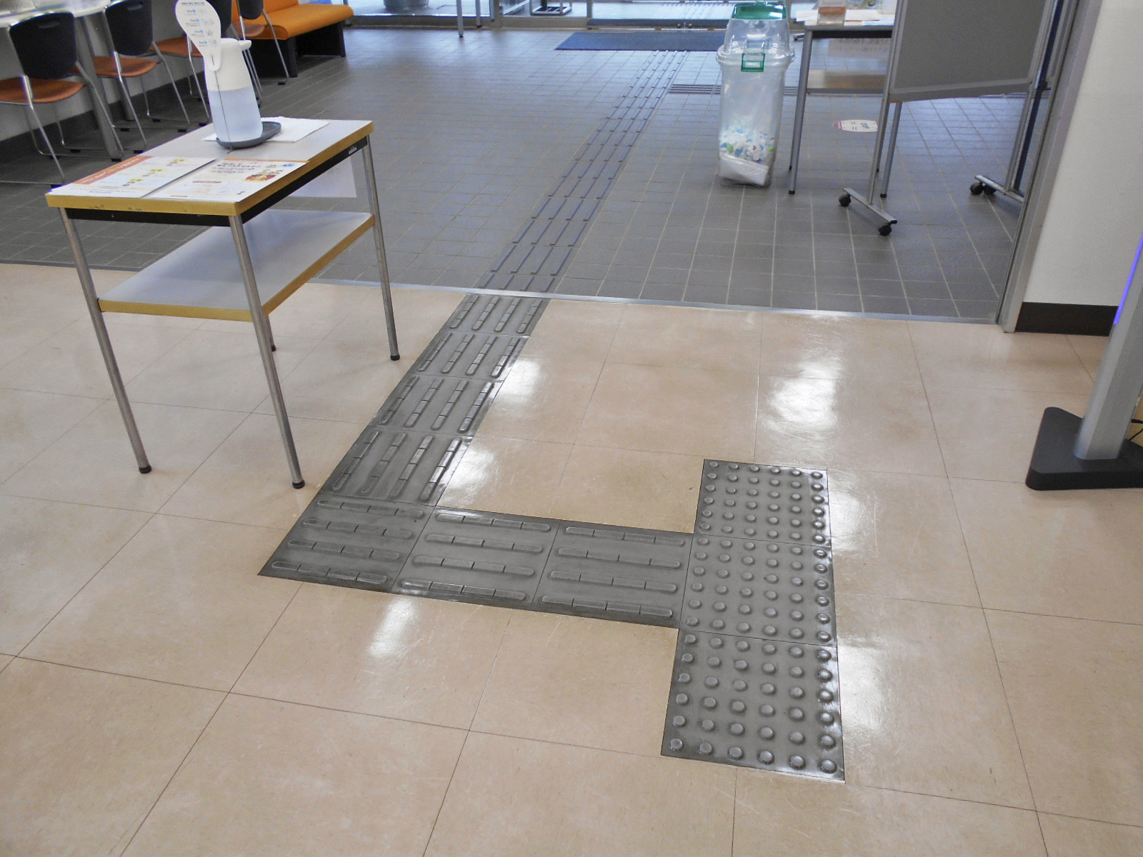 歩道から出入口までに視覚障害者誘導用ブロックがある