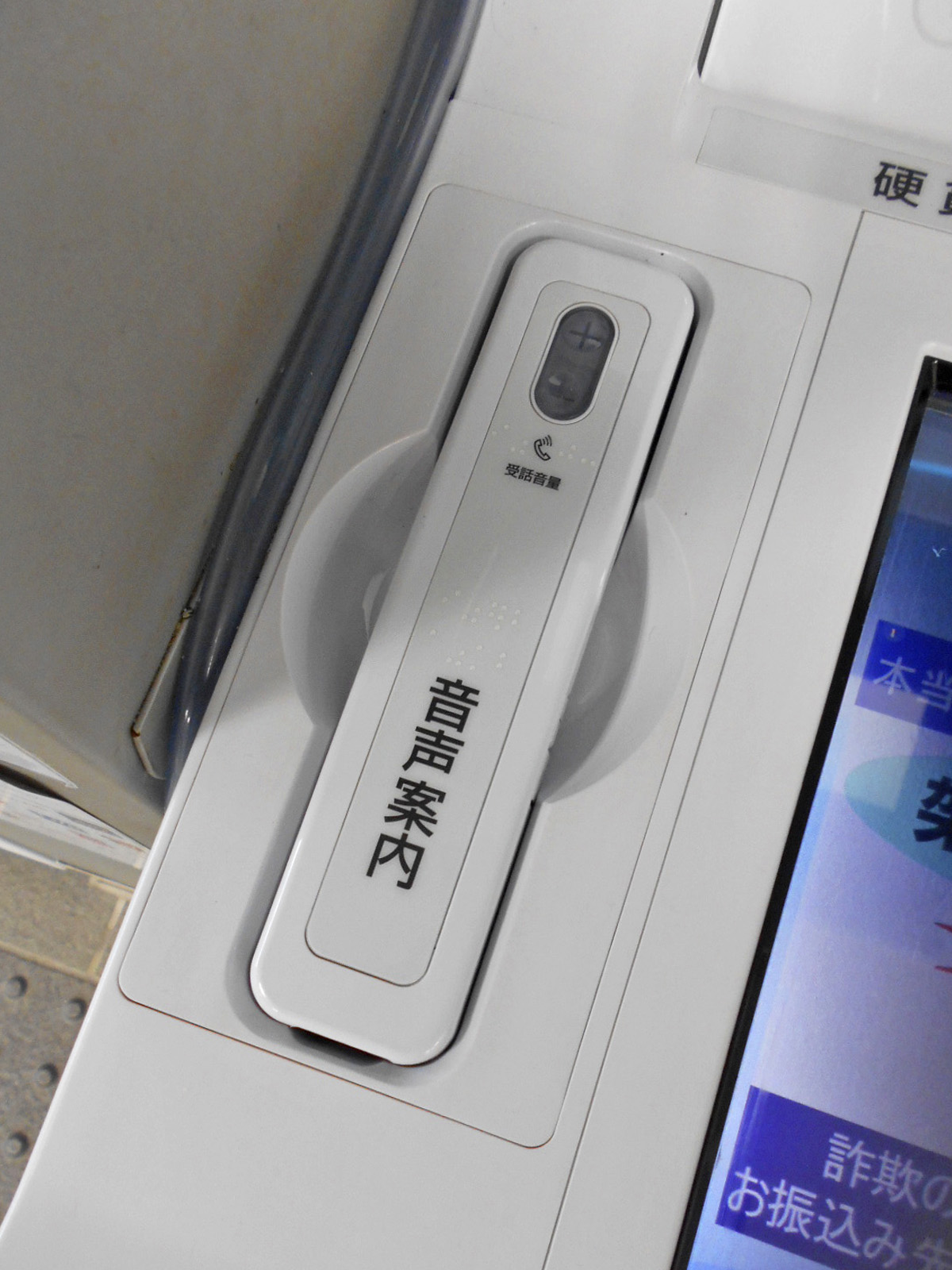 - ローカンター、助聴器、低い記載台、杖ホルダーあり